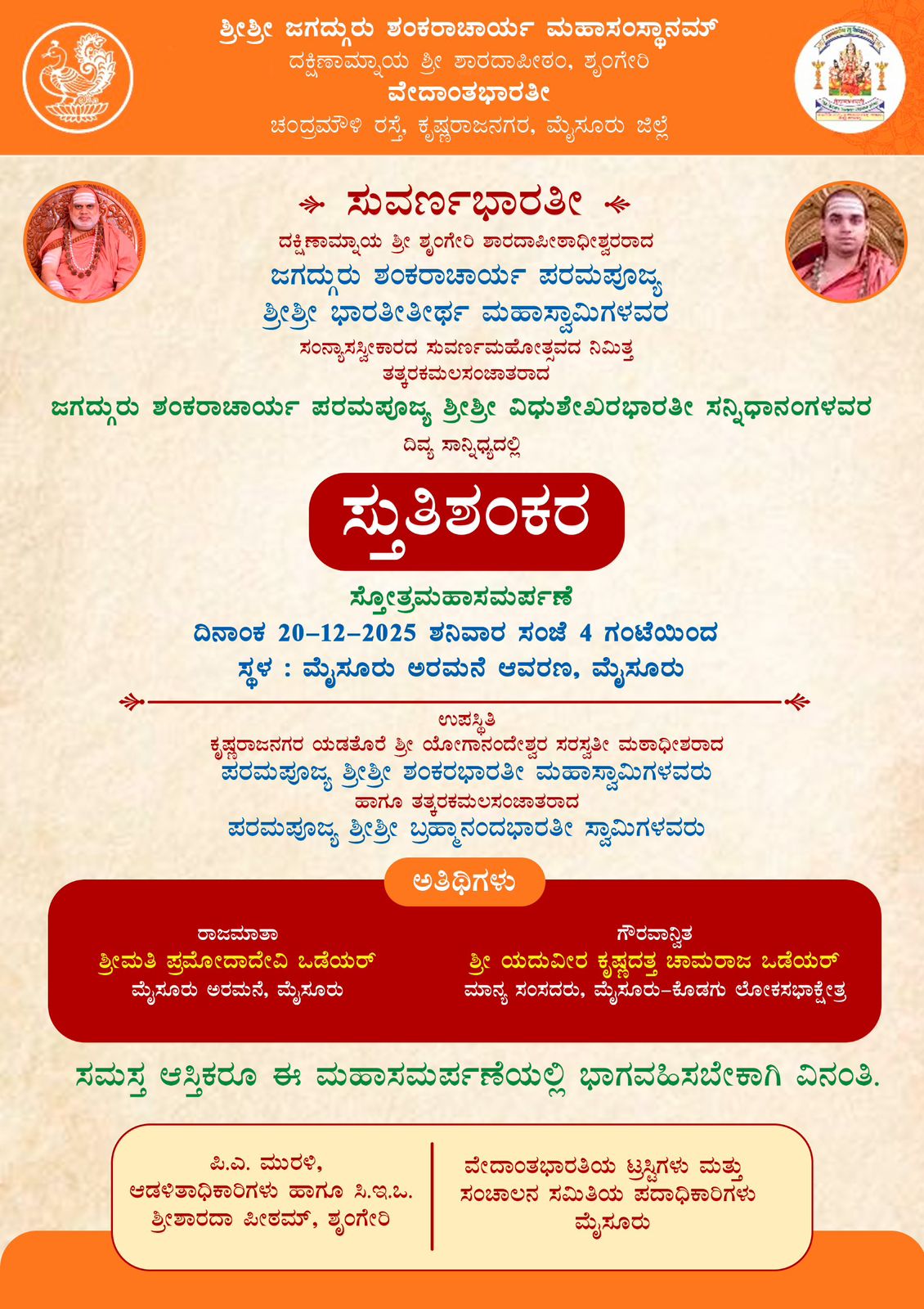 <p>ಪರತತ್ವದ ಕಡೆಯ ’ಅಯನ’ವೇ (ಪ್ರಯಾಣ) 'ಪಾರಾಯಣ’. ಸ್ತೋತ್ರಪಾರಾಯಣವು ನಮ್ಮ ಮನೋಬುದ್ಧಿಗಳನ್ನು ಪರತತ್ವದ ಧ್ಯಾನದಲ್ಲಿ ತೊಡಗಿಸುವಂತಹ ವಾಙ್ಮಯಸಾಧನವಾಗಿದೆ. ಪರಮಾತ್ಮನ ಅಮೂರ್ತತತ್ವಸ್ವರೂಪವನ್ನು ಗ್ರಹಿಸಲಾಗದ ನಮ್ಮ ಮನಸ್ಸನ್ನು ಪಳಗಿಸಿ ಕ್ರಮೇಣ ಪರತತ್ವದತ್ತ ಹರಿಯಿಸಲು, ಪರಮಾತ್ಮನೇ ಕರುಣೆತಾಳಿ ಸಾಕಾರಮೂರ್ತಿಗಳಲ್ಲಿ ಆವಿರ್ಭವಿಸುತ್ತಾನೆ. ನಮ್ಮ ಧ್ಯಾನೋಪಾಸನೆಗೆ ಒದಗುತ್ತಾನೆ. ಅಂತಹ ಪ್ರಶಸ್ತವಾದ ವೇದಾಗಮೋಕ್ತ ದೇವತಾರೂಪಗಳೂ, ತತ್ಸಂಬಂಧಿಯಾದ ಮಂತ್ರ-ತಂತ್ರ-ಯಂತ್ರಗಳೂ ಋಷಿಸಂಸ್ಕೃತಿಯಲ್ಲಿ ಉಳಿದು ಬಂದಿವೆ. ಅನ್ನಗತಪ್ರಾಣರಾದ ಕಲಿಯುಗದ ಮನುಜರಲ್ಲಿ ಶ್ರದ್ಧೆ ಸಹನೆಗಳು ಕುಗ್ಗಿವೆ. ದೀಕ್ಷೆ-ತರಬೇತಿಗಳ ಆನುಕೂಲ್ಯವೂ ಕಡಿಮೆ ಆಗಿದೆ. ಹಾಗಾಗಿ ಉಪವಾಸ, ಜಾಗರಣೆ, ಆಹಾರನಿಯಮಗಳೂ, ಗಾಢಧ್ಯಾನ ಮುಂತಾದ ಕಷ್ಟಸಾಧನೆಗಳಿಗಿಂತ ಸ್ತೋತ್ರಪಾರಾಯಣ ಮತ್ತು ನಾಮಸಂಕೀರ್ತನೆಗಳ ಮಾರ್ಗವೇ ಸುಲಭಶಕ್ಯ ಎನ್ನುವುದು ಪ್ರಾಜ್ಞರ ನಿರ್ದೇಶ. ಆಧುನಿಕತೆಯ ನೆವದಲ್ಲಿ ವಿಕೃತಭೋಗಗಳು ನಮ್ಮ ಕಣ್ಮನಗಳ ಶಕ್ತಿಯನ್ನೂ ಸ್ತವವನ್ನೂ ಬಿಗಿಯನ್ನೂ ಹಾಳುಗೆಡವುತ್ತಿವೆ. ಓದಲು ಕೇಳಲು ಧ್ಯಾನಿಸಲು ಅಲೋಚಿಸಲೂ ನಿರ್ಧರಿಸಲೂ ಬೇಕಾದ ಮನೋಬಲವೂ ಹ್ರಾಸವಾಗುತ್ತಿದೆ. ಈ ಮನೋಬಲದ ಸಂಚಯವಾಗಲು ಇರುವ ವಿಶಿಷ್ಟವಿಧಾನಗಳ ಪೈಕಿ ಸ್ತೋತ್ರಪಾರಾಯಣವು ಸುಲಭಶಕ್ಯ, ಶ್ರವಣಸುಭಗ, ಆನಂದದಾಯಕ.</p><p>ಪುರಾಣ-ರಾಮಾಯಣ-ಮಹಾಭಾರತ ಸಾಹಿತ್ಯದಲ್ಲೇ ಆದಿತ್ಯಹೃದಯ, ವಿಷ್ಣುಸಹಸ್ರನಾಮ, ಶಿವಸಹಸ್ರನಾಮ, ಲಲಿತಾಸಹಸ್ರನಾಮ ಮುಂತಾದ ಪಾರಾಯಣಯೋಗ್ಯವಾದ ಪ್ರಶಸ್ತಸ್ತೋತ್ರಗಳಿವೆ. ಇದಲ್ಲದೆ ಕಾಲಕಾಲಕ್ಕೆ ಉಗಮಿಸಿದ ಮಹಾಯೋಗಿವರ್ಯರುಗಳು ಮಂತ್ರಗರ್ಭಿತ ಸುಭಗಸ್ತೋತ್ರಗಳನ್ನು ರಚಿಸಿಕೊಟ್ಟಿದ್ದಾರೆ. ಶ್ರೀಶಂಕರಭಗವತ್ಪಾದರು ತಮಗೆ ಧ್ಯಾನಸಿದ್ಧವಾದ ದೇವತಾ ನಾಮರೂಪಗಳನ್ನು ದೇವಭಾಷೆಯ ಪ್ರಶಸ್ತಸ್ತೋತ್ರಗಳಲ್ಲಿ ರಚಿಸಿಟ್ಟು, ಪಾಮರಜನಕ್ಕೂ ಆ ಪುಣ್ಯವು ಹರಿದುಬರುವಂತೆ ಮಾಡಿ ಲೋಕಕಾರುಣ್ಯವನ್ನು ಮೆರೆದಿದ್ದಾರೆ.</p><p>ಶಂಕರಾಚಾರ್ಯರ ಹಲವು ಸ್ತೋತ್ರಗಳನ್ನು ಜನಮಾನಸವು ಶತಮಾನಗಳಿಂದಲೂ ನಿತ್ಯಪಠನಕ್ಕೆ ಬಳಸುತ್ತಬಂದಿದೆ. ಸಕಲ ಸನ್ಮಂಗಲವನ್ನುಂಟುಮಾಡುವಂತಹ ಈ ಸ್ತೋತ್ರಗಳನ್ನು ಒಂದೇ ರಾಗ-ವಿನ್ಯಾಸದಲ್ಲಿ ಒಮ್ಮೆಲೆ ಲಕ್ಷೋಪಲಕ್ಷಜನರು ಕಲಿತು, ಕುಳಿತು ಹಾಡಿ ಭಗವದರ್ಪಣೆ ಮಾಡುವಂತಹ ಹಲವಾರು ಮಂಗಲಕರ ಅಭಿಯಾನಗಳನ್ನು ಈಗಾಗಲೇ ಕರ್ನಾಟಕದ ಯಡತೊರೆ ಯೋಗಾನಂದೇಶ್ವರ ಸರಸ್ವತೀ ಮಠದ ಪೀಠಾಧೀಶರಾದಂತಹ ಪರಮಪೂಜ್ಯರಾದ ಶ್ರೀಶ್ರೀ ಶಂಕರಭಾರತೀ ಮಹಾಸ್ವಾಮಿಗಳು ಯಶಸ್ವಿಯಾಗಿ ಕೈಗೊಂಡಿದ್ದಾರೆ. ಶ್ರೀಮಠವು ಶಾಂಕರಸಂದೇಶಪ್ರಸಾರ ಕಾರ್ಯದ ಮೂಲಕ ಸನಾತನಧರ್ಮ, ಸಾಹಿತ್ಯವನ್ನು,ವಿಶೇಷವಾಗಿ ದೇವತಾನುಗ್ರಹಕಾರಿಯಾದಂತಹ ಆಚಾರ್ಯರ ಸ್ತೋತ್ರರತ್ನಗಳನ್ನು ಮನೆಮನೆಗೂ ಮನಮನಕ್ಕೂ ತಲುಪಿಸುವಂತಹ ಕಾರ್ಯವನ್ನು ವೇದಾಂತಭಾರತೀ ಸಂಸ್ಥೆಯು ದಶಕಗಳಿಂದ ದೇಶಾದ್ಯಂತ ಭರದಿಂದ ನಡೆಸುತ್ತಬಂದಿದೆ. ಇದರಿಂದಾಗಿ ಈಗಾಗಲೆ ಲಕ್ಷೋಪಜನರು ದೈನಂದಿನ ಪಾರಾಯಣಕ್ಕೆ ಸ್ತೋತ್ರಸಾಮಗ್ರಿಯನ್ನು ಪಡೆದು ಧನ್ಯರೆನಿಸಿದ್ದಾರೆ. ಸಂಸ್ಕೃತಭಾಷೆಯನ್ನೂ ಕನ್ನಡವೇ ಮುಂತಾದ ದೇಶಭಾಷೆಗಳನ್ನೂ ಶುದ್ಧರೂಪದಲ್ಲಿ ಕಲಿಸಲಾಗದೆ ಹೋಗುತ್ತಿರುವ ಆಂಗ್ಲಶಿಕ್ಷಣದ ಕುತ್ಸಿತವ್ಯವಸ್ಥೆಯಲ್ಲಿ, ಸ್ತೋತ್ರಪಾರಾಯಣದ ಅಭ್ಯಾಸವು ಕುಂಠಿತವಾಗುತ್ತಿರುವುದು ಶೋಚನೀ