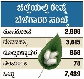 ಕೆಲ ವರ್ಷದಿಂದ ಮಾರುಕಟ್ಟೆಯಲ್ಲಿ ರೇಷ್ಮೆಗೂಡಿಗೆ ಉತ್ತಮ ಬೆಲೆ ಬಂದಿದೆ. ಹೀಗಾಗಿ ಜಿಲ್ಲೆಯ ರೈತರು ರೇಷ್ಮೆ ಸಾಕಾಣಿಕೆಯಲ್ಲಿ ಒಲವು ತೋರಿದ್ದಾರೆ. ಕಳೆದ ವರ್ಷ ಬೆಂಗಳೂರು ಗ್ರಾಮಾಂತರ ಜಿಲ್ಲೆಯಲ್ಲಿ 5070 ಹೆಕ್ಟೇರ್ ಪ್ರದೇಶ ಹಿಪ್ಪುನೇರಳೆ ಸೊಪ್ಪಿನ ತೋಟದ ಪ್ರದೇಶ ಇದ್ದರೆ ಪ್ರಸ್ತುತ ವರ್ಷ 131 ಹೆಕ್ಟೇರ್ ವಿಸ್ತರಣೆಗೊಂಡು 5201 ಹೆಕ್ಟೇರ್ ಪ್ರದೇಶ ಹೊಂದಿದೆ.