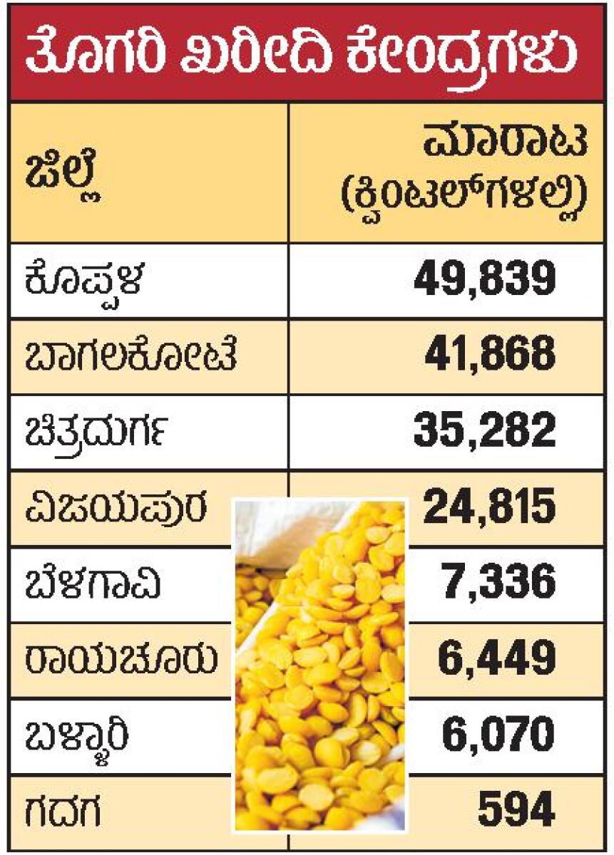 ಮುಕ್ತ ಮಾರುಕಟ್ಟೆಯಲ್ಲಿ ಕ್ವಿಂಟಲ್ ತೊಗರಿ ದರ ₹7800 ಇದೆ. ನಮ್ಮ ಕೇಂದ್ರಗಳಲ್ಲಿ ₹ 8 ಸಾವಿರ ದರ ಇದೆ. ಅದಕ್ಕೆ ಖಾಸಗಿಯವರು ರೈತರ ಬಳಿ ನೇರ ತೊಗರಿ ಖರೀದಿಸುತ್ತಿದ್ದಾರೆ. ರೈತರು ಖರೀದಿ ಕೇಂದ್ರಗಳತ್ತ ಬರುತ್ತಿಲ್ಲ.
