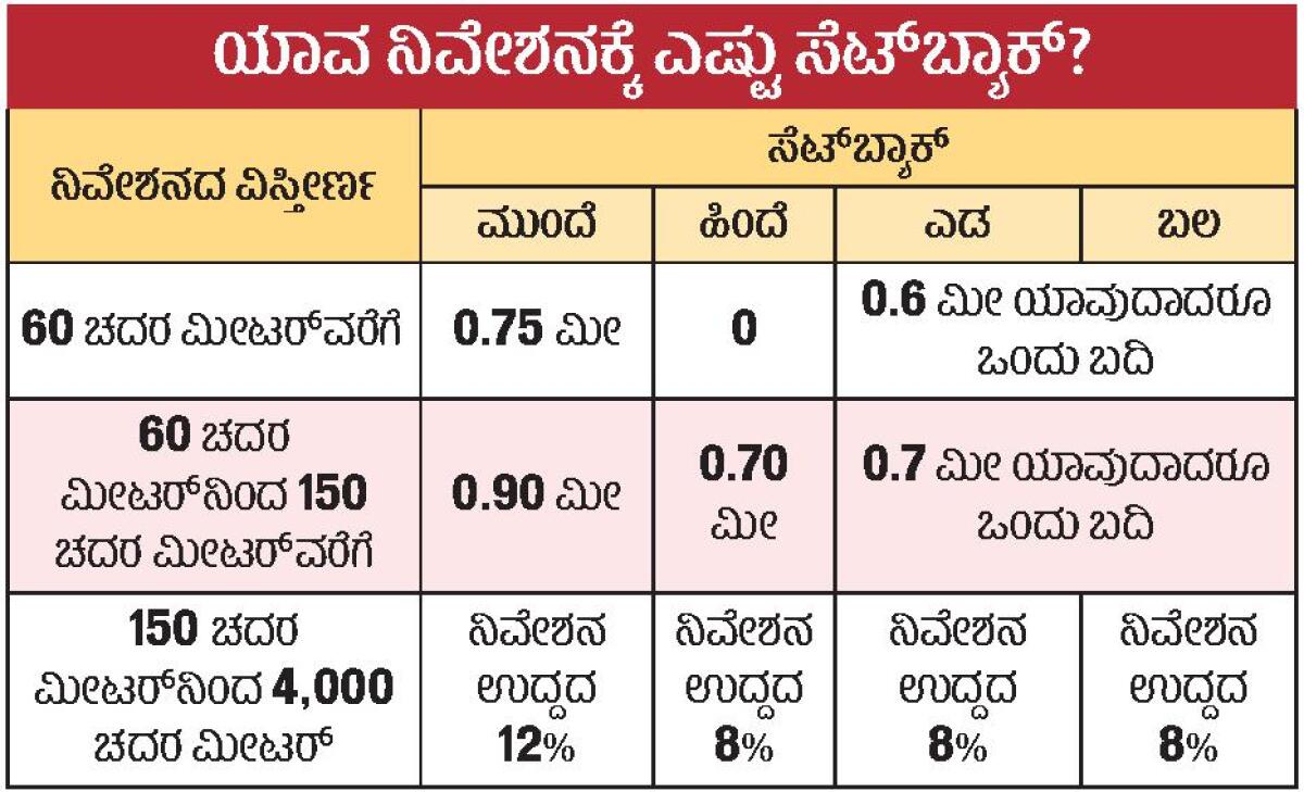 <p><strong>ಬೆಂಗಳೂರು</strong>: ನಗರದಲ್ಲಿ 1,500 ಚದರಡಿ ವಿಸ್ತೀರ್ಣದ ನಿವೇಶನಗಳಲ್ಲಿನ ಕಟ್ಟಡಗಳ ಸೆಟ್ಬ್ಯಾಕ್ನಲ್ಲಿ ಭಾರಿ ಕಡಿತ ಮಾಡಿ ನಗರಾಭಿವೃದ್ಧಿ ಇಲಾಖೆ ಕರಡು ಅಧಿಸೂಚನೆ ಹೊರಡಿಸಿದೆ.</p>.<p>ನಿವೇಶನದ ಉದ್ದ–ಅಗಲಕ್ಕೆ ಅನುಗುಣವಾಗಿ ಸೆಟ್ಬ್ಯಾಕ್ ನಿರ್ಧರಿಸುವುದನ್ನು ಕೈಬಿಟ್ಟು, ಒಟ್ಟಾರೆ ಚದರ ಮೀಟರ್ಗೆ ಅನುಗುಣವಾಗಿ ಸೆಟ್ಬ್ಯಾಕ್ ಅನ್ನು ನಿಗದಿಪಡಿಸಲಾಗಿದೆ. ಇದರಂತೆ, 60 ಚದರ ಮೀಟರ್ವರೆಗಿನ (600 ಚದರಡಿ) ನಿವೇಶನದ ಕಟ್ಟಡ ಹಿಂಭಾಗ ಸೆಟ್ಬ್ಯಾಕ್ ಬಿಡುವಂತಿಲ್ಲ. ಮುಂಭಾಗದಲ್ಲಿ 0.75 ಮೀ (ಎರಡೂವರೆ ಅಡಿ), ಎಡ ಅಥವಾ ಬಲ ಭಾಗದಲ್ಲಿ 0.6 ಮೀ (ಎರಡು ಅಡಿ) ಜಾಗ ಬಿಡಬೇಕೆಂದು ನಿಗದಿಯಾಗಿದೆ.</p>.<p>1,500 ಚದರಡಿ ನಿವೇಶನದವರೆಗಿನ ಕಟ್ಟಡಗಳಿಗೆ ಹೊಸ ಸೆಟ್ಬ್ಯಾಕ್ನಲ್ಲಿ ಕಡಿಮೆ ಜಾಗವನ್ನು ನಿಗದಿಪಡಿಸಲಾಗಿದೆ. ಈ ಸೆಟ್ಬ್ಯಾಕ್ ಈಗಾಗಲೇ ನಿರ್ಮಾಣವಾಗಿರುವ ಕಟ್ಟಡಗಳಿಗೂ ಅನ್ವಯಿಸುತ್ತದೆ. ಕರಡು ಅಧಿಸೂಚನೆಗೆ ಆಕ್ಷೇಪಣೆ ಸಲ್ಲಿಸಲು 30 ದಿನದ ಅವಕಾಶ ನೀಡಲಾಗಿದೆ.</p>.<p>ಪ್ರಸ್ತುತ ನಿಯಮಗಳ ಪ್ರಕಾರ, 20 x 30 ಅಡಿ ನಿವೇಶನಗಳಲ್ಲಿ ಕಟ್ಟಡದ ಸುತ್ತಲೂ ಒಂದು ಮೀಟರ್ (3 ಅಡಿ 4 ಇಂಚು) ಜಾಗ ಬಿಡಬೇಕು. 30 x 40 ಅಡಿ ನಿವೇಶನಗಳಲ್ಲಿ ಸುತ್ತಲೂ 1.50 ಮೀಟರ್ (5 ಅಡಿ) ಸೆಟ್ಬ್ಯಾಕ್ ಇದೆ.</p>.<p>ಕರಡು ಅಧಿಸೂಚನೆಯಲ್ಲಿ ನಿಗದಿಯಾಗಿರುವ ಸೆಟ್ಬ್ಯಾಕ್ನಂತೆಯೇ ಸ್ಟಿಲ್ಟ್ ಸೇರಿದಂತೆ ನಾಲ್ಕು ಅಂತಸ್ತು ಕಟ್ಟಡಗಳನ್ನು 12 ಮೀಟರ್ ಎತ್ತರ ಮೀರದಂತೆ ನಿರ್ಮಿಸಬಹುದಾಗಿದೆ.</p>.<p>‘ಚಿಕ್ಕ ನಿವೇಶನಗಳಲ್ಲಿ ಸೆಟ್ಬ್ಯಾಕ್ ಉಲ್ಲಂಘನೆಯಾಗುತ್ತಲೇ ಇದೆ. ಬಹುತೇಕ ಬಡವರ್ಗದ ಜನರೇ ಇಂತಹ ನಿವೇಶನಗಳಲ್ಲಿ ಮನೆ ನಿರ್ಮಿಸಿರುತ್ತಾರೆ. ಉಲ್ಲಂಘನೆಗೆ ಕ್ರಮ ಕೈಗೊಳ್ಳಲು ನೋಟಿಸ್ ನೀಡಿದಾಗ ಹಲವು ರೀತಿಯ ಮನವಿ ಮಾಡುತ್ತಾರೆ, ಒತ್ತಡವೂ ಬರುತ್ತದೆ. ನಗರದಲ್ಲಿ ಈಗಾಗಲೇ ನಿರ್ಮಾಣವಾಗಿರುವ ಸಾವಿರಾರು ಮನೆಗಳ ಸುತ್ತ ಸೆಟ್ಬ್ಯಾಕ್ ಇಲ್ಲ. ಹೀಗಾಗಿ, ಚಿಕ್ಕ ನಿವೇಶನಗಳಲ್ಲಿನ ವಸತಿ ಕಟ್ಟಡಗಳಿಗೆ ವಿನಾಯಿತಿ ನೀಡಲಾಗಿದೆ’ ಎಂದು ಜಿಬಿಎ ಯೋಜನೆ ವಿಭಾಗದ ಅಧಿಕಾರಿಗಳು ತಿಳಿಸಿದರು.</p>.<p><strong>ರ್ಯಾಂಪ್ಗೆ ವಿನಾಯಿತಿ:</strong> ಸೆಟ್ಬ್ಯಾಕ್ ಹೊರತುಪಡಿಸಿ ರ್ಯಾಂಪ್ ನಿರ್ಮಾಣ ಮಾಡಬೇಕಾದ ನಿಯಮವನ್ನು ಕರಡು ಅಧಿಸೂಚನೆಯಲ್ಲಿ ಕೈಬಿಟ್ಟಿದ್ದು, ಸೆಟ್ಬ್ಯಾಕ್ ಪ್ರದೇಶದಲ್ಲೇ ವಾಹನಗಳ ರ್ಯಾಂಪ್ ನಿರ್ಮಾಣ ಮಾಡಬಹುದು. ಆ ಜಾಗದಿಂದ ಕಾರುಗಳನ್ನು ಕೆಳ ಅಥವಾ ಮೇಲಿನ ಅಂತಸ್ತುಗಳಿಗೆ ಲಿಫ್ಟ್ ಮಾಡುವ ಅವಕಾಶವನ್ನೂ ನೀಡಲಾಗಿದೆ.</p>.<div><p><strong>ಪ್ರಜಾವಾಣಿ ಆ್ಯಪ್ ಇಲ್ಲಿದೆ: <a href="https://play.google.com/store/apps/details?id=com.tpml.pv">ಆಂಡ್ರಾಯ್ಡ್ </a>| <a href="https://apps.apple.com/in/app/prajavani-kannada-news-app/id1535764933">ಐಒಎಸ್</a> | <a href="https://whatsapp.com/channel/0029Va94OfB1dAw2Z4q5mK40">ವಾಟ್ಸ್ಆ್ಯಪ್</a>, <a href="https://www.twitter.com/prajavani">ಎಕ್ಸ್</a>, <a href="https://www.fb.com/prajavani.net">ಫೇಸ್ಬುಕ್</a> ಮತ್ತು <a href="https://www.instagram.com/prajavani">ಇನ್ಸ್ಟಾಗ್ರಾಂ</a>ನಲ್ಲಿ ಪ್ರಜಾವಾಣಿ ಫಾಲೋ ಮಾಡಿ.</strong></p></div>