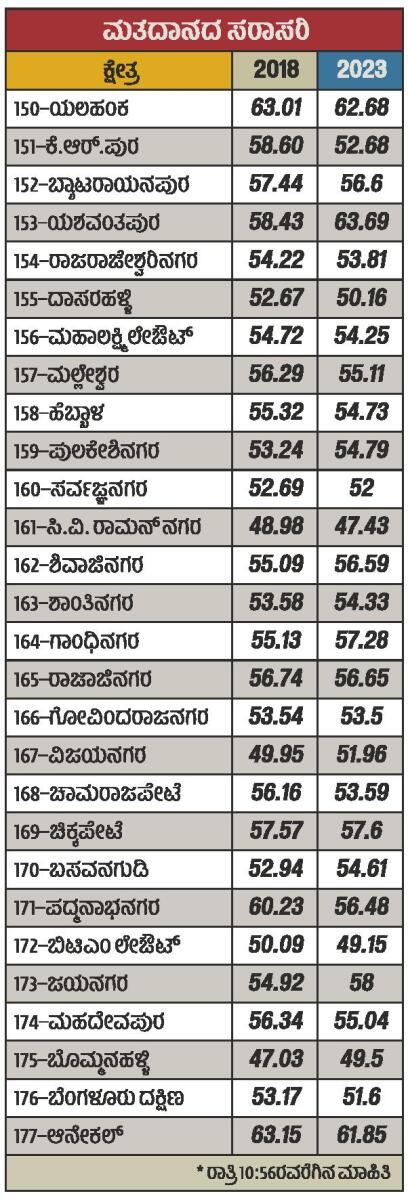 <p><strong>ಬೆಂಗಳೂರು</strong>: ರಾಜಧಾನಿಯ 28 ವಿಧಾನಸಭೆ ಕ್ಷೇತ್ರಗಳ ಮತದಾರರನ್ನು ಮತಗಟ್ಟೆಗೆ ಕರೆತರುವ ಪ್ರಯತ್ನ ಮತ್ತೆ ವಿಫಲವಾಗಿದೆ. ಒಂದು ತಿಂಗಳಿಂದ ಸತತವಾಗಿ ಮತದಾನದ ಜಾಗೃತಿ ಮೂಡಿಸಿದರೂ ನಿರೀಕ್ಷಿತ ಪ್ರಮಾಣದಲ್ಲಿ ಮತದಾನ ಮಾಡದೆ ನಗರದ ಮತದಾರರು ವಿಫಲರಾಗಿದ್ದಾರೆ. ಕಳೆದ ಬಾರಿಗಿಂತ ಕಡಿಮೆ ಮತದಾನವಾಗಿದ್ದು ಭಾರಿ ನಿರಾಸೆ ಉಂಟುಮಾಡಿದ್ದಾರೆ.</p>.<p>ನಗರದಲ್ಲಿ ಕಳೆದ ಬಾರಿಗಿಂತ ಕಡಿಮೆ ಪ್ರಮಾಣದಲ್ಲಿ ಮತದಾನವಾಗಿದೆ. ಬುಧವಾರ ಸಂಜೆ 6ರಂತೆ ಬಿಡುಗಡೆಯಾಗಿರುವ ಪ್ರಕಟಣೆಯಂತೆ ಶೇ 54.53ರಷ್ಟು ಮತದಾನವಾಗಿದ್ದು, ಕಳೆದ ಬಾರಿಗಿಂತ ಶೇ 0.59ರಷ್ಟು ಕಡಿಮೆಯಾಗಿದೆ. ಅಂತಿಮವಾಗಿ ಎಲ್ಲ ಲೆಕ್ಕಾಚಾರ ಮುಗಿದರೂ, ಶೇಕಡ ಒಂದೆರಡು ಪ್ರಮಾಣ ಹೆಚ್ಚಾಗಬಹುದಾಗಿದೆ. ಹೀಗಾಗಿ, ಮತದಾರರನ್ನು ಒಲಿಸಿ ಹೆಚ್ಚಿನ ಪ್ರಮಾದಲ್ಲಿ ಮತಗಟ್ಟೆಗೆ ಕರೆತರುವ ಕಸರತ್ತು ವಿಫಲವಾಗಿದೆ.</p>.<p>2018ರಲ್ಲಿ ಶೇ 55.12ರಷ್ಟು ಮತದಾನವಾಗಿತ್ತು. 90.36 ಲಕ್ಷ ಮತದಾರರಲ್ಲಿ 49.80 ಲಕ್ಷ ಮಂದಿ ಮತ ಚಲಾಯಿಸಿದ್ದರು. 2019ರ ಲೋಕಸಭೆ ಚುನಾವಣೆಯಲ್ಲೂ ಪರಿಸ್ಥಿತಿ ಭಿನ್ನವಾಗಿರಲಿಲ್ಲ. ಹೀಗಾಗಿ, ಮತದಾನ ಪ್ರಮಾಣವನ್ನು ಕನಿಷ್ಠ ಶೇ 75ಕ್ಕೆ ಹೆಚ್ಚಿಸಬೇಕೆಂದು ಚುನಾವಣೆ ಆಯೋಗ ಹಾಗೂ ಬಿಬಿಎಂಪಿ ಸಾಕಷ್ಟು ಪ್ರಯತ್ನಪಟ್ಟಿತು. ಹಿಂದೆಂದಿಗಿಂತಲೂ ಹೆಚ್ಚಿನ ‘ಸ್ವೀಪ್’ ಕಾರ್ಯಕ್ರಮಗಳನ್ನು ಆಯೋಜಿಸಿ ಮತದಾನದ ಅರಿವು ಮೂಡಿಸಲು ಕಸರತ್ತು ನಡೆಸಿತ್ತು. ಆದರೆ, ಇದಕ್ಕೆಲ್ಲ ಮತದಾರ ಮಣೆ ಹಾಕಿಲ್ಲ.</p>.<p><strong>ಐಟಿ– ಬಿಟಿ ವಲಯದಲ್ಲಿ ಜಾಗೃತಿ:</strong> ನಗರಕ್ಕೆ ಉದ್ಯೋಗ ಅರಸಿ ಬಂದಿರುವವರಲ್ಲಿ ಐಟಿ–ಬಿಟಿ ಉದ್ಯೋಗಿಗಳು ಹೆಚ್ಚು. ಅವರ ಜನಸಂಖ್ಯೆಯೂ ಇಲ್ಲಿ ಹೆಚ್ಚು. ಹೀಗಾಗಿ ಅವರಿರುವ ಭಾಗಗಳಲ್ಲಿ, ಕಂಪನಿಗಳಲ್ಲಿ ಹೆಚ್ಚಿನ ಅರಿವು ಮೂಡಿಸಿ ಮತದಾನ ಮಾಡಬೇಕೆಂದು ಕೋರಲಾಗಿತ್ತು. ಮತದಾನದ ದಿನ ರಜೆಯನ್ನೂ ಘೋಷಿಸಲಾಗಿತ್ತು. ಪ್ರವಾಸ, ಪಿಕ್ನಿಕ್ ಎಲ್ಲವನ್ನೂ ಕೈಬಿಟ್ಟು ಮತದಾನ ಮಾಡಿ ಎಂದು ಮನವಿ ಮಾಡಿಕೊಂಡಿದ್ದರೂ ಪ್ರಯೋಜನವಾಗಿಲ್ಲ. </p>.<p><strong>ಕಾರ್ಖಾನೆ– ಗಾರ್ಮೆಂಟ್ಸ್ಗಳಲ್ಲಿ ಅರಿವು</strong>: ಕಾಸಿಯಾ, ಎಫ್ಕೆಸಿಸಿಐ, ಕೈಗಾರಿಕೆ ಪ್ರದೇಶಗಳ ಸಂಘಗಳು, ಮಾಲೀಕರೊಂದಿಗೆ ಕಾರ್ಯಕ್ರಮ ನಡೆಸಿ, ಮತದಾನದ ಬಗ್ಗೆ ಬಿಬಿಎಂಪಿ ಅಧಿಕಾರಿಗಳು ಅರಿವು ಮೂಡಿಸಿದ್ದರು. ಎಲ್ಲ ಕಾರ್ಮಿಕರಿಗೂ ಮತದಾನ ಮಾಡಲು ಅನುಕೂಲ ಕಲ್ಪಿಸಬೇಕೆಂದು ಮನವಿ ಮಾಡಿದರು. ಅದರಂತೆ, ಮತದಾನದ ದಿನ ಮಾಲೀಕರು ರಜೆಯನ್ನೂ ನೀಡಿದ್ದರು. ಇಷ್ಟಾದರೂ ಮತದಾನದ ಪ್ರಮಾಣವನ್ನು ಹೆಚ್ಚಿಸುವ ಗುರಿ ತಲುಪಲು ಸಾಧ್ಯವಾಗಲಿಲ್ಲ.</p>.<p><strong>ಥೀಮ್ ಮತಗಟ್ಟೆಗಳ ಆಕರ್ಷಣೆ:</strong> ಮತಗಟ್ಟೆಗೆ ಮತದಾರರನ್ನು ಆಕರ್ಷಿಸಲು ಪಿಂಕ್, ಹಸಿರು, ಅಂಗವಿಕಲರ ಸ್ನೇಹಿ ಸೇರಿದಂತೆ ಹಲವು ಥೀಮ್ ಆಧರಿತ ಮತಗಟ್ಟೆಗಳನ್ನು ಸ್ಥಾಪಿಸಲಾಗಿತ್ತು. ಈ ಎಲ್ಲ ಸೌಲಭ್ಯಗಳೂ ಮತದಾರರನ್ನು ಸೆಳೆಯುವಲ್ಲಿ ನಿರೀಕ್ಷಿತ ಮಟ್ಟದಲ್ಲಿ ವಿಫಲವಾದವು. ಇದಲ್ಲದೆ, ಹಲವು ಸಂಘ–ಸಂಸ್ಥೆಗಳು ಮತದಾನ ಮಾಡಿ ಎಂದು ಸಾಕಷ್ಟು ಕಾರ್ಯಕ್ರಮಗಳನ್ನು ಹಮ್ಮಿಕೊಂಡಿದ್ದರು. ಮತದಾರರಿಗೆ ಮತಗಟ್ಟೆಗೆ ತೆರಳಲು ಕರೆ ನೀಡಿದ್ದವು. ಆದರೂ ಮತದಾರರು ಮತದಾನದ ದಿನ ಮತಗಟ್ಟೆಗಳತ್ತ ಸಂಪೂರ್ಣವಾಗಿ ತೆರಳಲಿಲ್ಲ.</p>.<p><strong>‘ಕುಸಿಯದಿರುವುದು ಸಮಾಧಾನಕರ’</strong></p><p>ಮತದಾನದ ಪ್ರಮಾಣದಲ್ಲಿ ಯಾವುದೇ ರೀತಿಯ ವೃದ್ಧಿ ಸ್ವಾಗತಾರ್ಹ. ಕಳೆದ ಮೂರು ಚುನಾವಣೆಗಳಲ್ಲಿ ಮತದಾನದ ಪ್ರಮಾಣದಲ್ಲಿ ಕುಸಿತ ಕಂಡುಬಂ