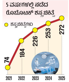 <p><strong>ಬೆಂಗಳೂರು:</strong> ಕ್ಯಾನ್ಸರ್ ಪೀಡಿತರಿಗೆ ರೊಬೊಟಿಕ್ ತಂತ್ರಜ್ಞಾನ ವರದಾನವಾಗಿದ್ದು, ಕಿದ್ವಾಯಿ ಸ್ಮಾರಕ ಗಂಥಿ ಸಂಸ್ಥೆಯಲ್ಲಿ ಸಾವಿರಕ್ಕೂ ಅಧಿಕ ಮಂದಿಗೆ ಈ ತಂತ್ರಜ್ಞಾನದ ನೆರವಿನಿಂದ ಶಸ್ತ್ರಚಿಕಿತ್ಸೆ ಮಾಡಲಾಗಿದೆ.</p>.<p>ಖಾಸಗಿ ವ್ಯವಸ್ಥೆಯಡಿ ರೊಬೊಟಿಕ್ ಶಸ್ತ್ರಚಿಕಿತ್ಸೆ ದುಬಾರಿ ಆಗಿರುವ ಕಾರಣ, ಸಂಸ್ಥೆಯಲ್ಲಿ 2017ರಲ್ಲಿ ಈ ಆಧುನಿಕ ಶಸ್ತ್ರಚಿಕಿತ್ಸೆಯನ್ನು ಪರಿಚಯಿಸಲಾ ಯಿತು. ಡಾ.ವಿನ್ಸಿ ರೊಬೊಟಿಕ್ ತಂತ್ರಜ್ಞಾನವನ್ನು ಅಳವಡಿಸಿಕೊಂಡು, ಶಸ್ತ್ರಚಿಕಿತ್ಸೆಗಳನ್ನು ನಡೆಸಲಾಗುತ್ತಿದೆ. ಅಮೆರಿಕದ ಇನ್ಸ್ಟಿಟ್ಯೂಟ್ ಆಫ್ ಸರ್ಜಿಕಲ್ ರಿಸರ್ಚ್ ಸಂಸ್ಥೆಯು ಡಾ.ವಿನ್ಸಿ ರೊಬೊಟಿಕ್ ಯಂತ್ರವನ್ನು ಅಭಿವೃದ್ಧಿಪಡಿಸಿದೆ. </p>.<p>ರಾಜ್ಯದಲ್ಲಿ ಸರ್ಕಾರಿ ವ್ಯವಸ್ಥೆಯಡಿ ಕಿದ್ವಾಯಿ ಸಂಸ್ಥೆಯಲ್ಲಿ ಮಾತ್ರ ಈ ರೊಬೊಟ್ ಯಂತ್ರ ಕಾರ್ಯಾಚರಣೆ ಮಾಡುತ್ತಿದೆ. ಈ ಯಂತ್ರದ ನೆರವಿನಿಂದ ವರ್ಷದಿಂದ ವರ್ಷಕ್ಕೆ ರೊಬೊಟಿಕ್ ಶಸ್ತ್ರಚಿಕಿತ್ಸೆ ಸಂಖ್ಯೆ ಹೆಚ್ಚಾಗುತ್ತಿದ್ದು, ಈ ವರ್ಷ ಜನವರಿಯಲ್ಲಿಯೇ 23 ಮಂದಿಗೆ ಶಸ್ತ್ರಚಿಕಿತ್ಸೆ ನಡೆಸಲಾಗಿದೆ. </p>.<p>ಈ ರೊಬೊಟಿಕ್ ತಂತ್ರಜ್ಞಾನ ವ್ಯವಸ್ಥೆಯನ್ನು ಸಂಸ್ಥೆಯು ₹ 16.5 ಕೋಟಿ ವೆಚ್ಚದಲ್ಲಿ ಹಿಂದೆ ಅಳವಡಿಸಿಕೊಂಡಿತ್ತು. 2021ರಲ್ಲಿ ಪ್ರತಿ ತಿಂಗಳು ಸರಾಸರಿ ಆರು ರೊಬೊಟಿಕ್ ಶಸ್ತ್ರಚಿಕಿತ್ಸೆ ನಡೆಸಿದರೆ, ಕಳೆದ ವರ್ಷ ಈ ಸಂಖ್ಯೆ 23ಕ್ಕೆ ಏರಿದೆ. ಈವರೆಗೆ ಒಟ್ಟು 1,069 ರೊಬೊಟಿಕ್ ಶಸ್ತ್ರಚಿಕಿತ್ಸೆ ಮಾಡಲಾಗಿದೆ. ಪ್ರಾಸ್ಪೇಟ್ (ಮೂತ್ರನಾಳ) ಕ್ಯಾನ್ಸರ್, ಗರ್ಭಕಂಠ ಕ್ಯಾನ್ಸರ್, ತಲೆ ಮತ್ತು ಕುತ್ತಿಗೆ ಕ್ಯಾನ್ಸರ್, ಎದೆಗೂಡಿನ ಕ್ಯಾನ್ಸರ್ಗಳು ಸೇರಿ ಆಯ್ದ ಕ್ಯಾನ್ಸರ್ ಪ್ರಕರಣಗಳಲ್ಲಿ ರೋಗಿಗಳಿಗೆ ಈ ತಂತ್ರಜ್ಞಾನದ ನೆರವಿನಿಂದ ಶಸ್ತ್ರಚಿಕಿತ್ಸೆ ನಡೆಸಲಾಗುತ್ತಿದೆ. </p>.<p>ನಿಖರ ಶಸ್ತ್ರಚಿಕಿತ್ಸೆ: ಈ ಅತ್ಯಾಧುನಿಕ ತಂತ್ರಜ್ಞಾನವು ರೋಗಿ ಹಾಗೂ ವೈದ್ಯರಿಗೆ ಸಹಕಾರಿಯಾಗಿದೆ. ಸಣ್ಣದಾಗಿ ರಂಧ್ರ ಮಾಡಿ, ರೋಗಕಾರಕ ಭಾಗವನ್ನು ಮಾತ್ರ ಹೊರ ತೆಗೆಯಲಾಗುತ್ತದೆ. ಇದರಿಂದ ನಿಖರ ಶಸ್ತ್ರಚಿಕಿತ್ಸೆಯ ಜತೆಗೆ, ರೋಗಿಯು ಅಲ್ಪಾವಧಿಯಲ್ಲಿ ಚೇತರಿಸಿಕೊಳ್ಳುತ್ತಿದ್ದಾರೆ. ಸಾಂಪ್ರದಾಯಿಕ ಶಸ್ತ್ರಚಿಕಿತ್ಸಾ ವಿಧಾನದಲ್ಲಿ ದೇಹಕ್ಕೆ ಹೆಚ್ಚಿನ ಪ್ರಮಾಣದಲ್ಲಿ ಹಾನಿಯಾಗುವ ಜತೆಗೆ, ಶಸ್ತ್ರಚಿಕಿತ್ಸೆ ಹಾಗೂ ರೋಗಿ ಚೇತರಿಸಿಕೊಳ್ಳಲು ಹೆಚ್ಚಿನ ಅವಧಿ ಬೇಕಾಗುತ್ತದೆ. </p>.<p>‘ಬದಲಾದ ಜೀವನಶೈಲಿ ಹಾಗೂ ಧೂಮಪಾನದಂತಹ ವ್ಯಸನ, ತಂಬಾಕು ಉತ್ಪನ್ನ ಸೇವನೆ, ಒತ್ತಡದ ಜೀವನ, ಕಲುಷಿತ ವಾತಾವರಣ ಸೇರಿ ವಿವಿಧ ಕಾರಣಗಳಿಂದ ಕ್ಯಾನ್ಸರ್ ಪ್ರಕರಣಗಳು ಹೆಚ್ಚಳವಾಗುತ್ತಿವೆ. ರೊಬೊಟಿಕ್ ತಂತ್ರಜ್ಞಾನವನ್ನು ಕ್ಯಾನ್ಸರ್ ಚಿಕಿತ್ಸೆಯಲ್ಲಿ ಬಳಸುತ್ತಿರುವುದರಿಂದ ಹೆಚ್ಚು ನಿಖರತೆ ಸೇರಿ ಹಲವು ಪ್ರಯೋಜನಗಳಾಗುತ್ತಿವೆ. ರೋಗಿಯ ಆಸ್ಪತ್ರೆ ಅವಧಿಯೂ ಕಡಿತವಾಗುತ್ತಿದೆ’ ಎಂದು ಸಂಸ್ಥೆ ನಿರ್ದೇಶಕ ಡಾ.ಟಿ.ನವೀನ್ ತಿಳಿಸಿದರು. </p>.<div><blockquote>ಅತ್ಯಾಧುನಿಕ ತಂತ್ರಜ್ಞಾನಗಳನ್ನು ಅಳವಡಿಸಿಕೊಂಡು ಕ್ಯಾನ್ಸರ್ ಪೀಡಿತರಿಗೆ ಚಿಕಿತ್ಸೆ ನೀಡಲಾಗುತ್ತಿದೆ. ರೊಬೊಟಿಕ್ ತಂತ್ರಜ್ಞಾನದಿಂದ ಸಂಕೀರ್ಣ ಶಸ್ತ್ರಚಿಕಿತ್ಸೆ ಸುಲಭಸಾಧ್ಯವಾಗುತ್ತಿದೆ</blockquote><span class="attribution">ಡಾ.ಟಿ.ನವೀನ್ ಕಿದ್ವಾಯಿ ಸ್ಮಾರಕ ಗಂಥಿ ಸಂಸ್ಥೆ ನಿರ್ದೇಶಕ</span></div>.<p><strong>ಶಸ್ತ್ರಚಿಕಿತ್ಸೆಗೆ ನೆರವು</strong> </p><p>ಹೊಂಬೇಗೌಡ ನಗರದಲ್ಲಿರುವ ಈ ಸಂಸ