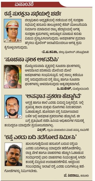 ಮುಖ್ಯ ರಸ್ತೆಯಲ್ಲಿ ಸೂಚನಾ ಫಲಕ ಅಳವಡಿಸುವಂತೆ ಕೆಶಿಪ್ ಮುಖ್ಯ ಕಚೇರಿಯಿಂದ ಸಂಬಂಧಪಟ್ಟ ಏಜೆನ್ಸಿಗೆ ಪತ್ರ ಬರೆಯಲಾಗಿದೆ. ತಿಂಗಳೊಳಗೆ ಗ್ರಾಮಗಳಿಗೆ ಸಂಪರ್ಕ ಕಲ್ಪಿಸುವ ರಸ್ತೆ ಆಸ್ಪತ್ರೆ ಶಾಲೆ ಮುಂದೆ ಸೂಚನಾ ಫಲಕ ಅಳವಡಿಸಲಾಗುವುದು