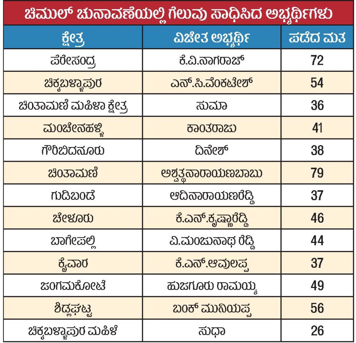 <p><strong>ಚಿಕ್ಕಬಳ್ಳಾಪುರ</strong>: ಚಿಕ್ಕಬಳ್ಳಾಪುರ ಹಾಲು ಒಕ್ಕೂಟದ (ಚಿಮುಲ್) ಚುನಾವಣಾ ಫಲಿತಾಂಶ ಅತಂತ್ರವಾಗಿದೆ. ಅಧಿಕಾರ ಹಿಡಿಯಲು ಕಾಂಗ್ರೆಸ್ ಪಕ್ಷವು ನಾಮನಿರ್ದೇಶಿತ ಮತ್ತು ಕೆಎಚ್ಪಿ ಬಣದ ನಿರ್ದೇಶಕರ ಮೊರೆ ಹೋಗುವ ಸಾಧ್ಯತೆ ಇದೆ.</p>.<p>ಭಾನುವಾರ ಒಕ್ಕೂಟಕ್ಕೆ ಚುನಾವಣೆ ನಡೆಯಿತು. ಬೆಳಿಗ್ಗೆ 9ರಿಂದ ಸಂಜೆ 4ರವರೆಗೆ ಮತದಾನ ನಡೆಯಿತು. ಸಂಜೆಯ ವೇಳೆಗೆ ಫಲಿತಾಂಶ ಪ್ರಕಟವಾಯಿತು. ಒಟ್ಟು 13 ಕ್ಷೇತ್ರಗಳ ಪೈಕಿ ಕಾಂಗ್ರೆಸ್ ಬೆಂಬಲಿತ ಆರು, ಬಿಜೆಪಿ ಜೆಡಿಎಸ್ ಮೈತ್ರಿಕೂಟ ಬೆಂಬಲಿತ ಐದು ಮತ್ತು ಪಕ್ಷೇತರ ಶಾಸಕ ಕೆ.ಎಚ್.ಪುಟ್ಟಸ್ವಾಮಿಗೌಡ ಬೆಂಬಲಿತ (ಕೆಎಚ್ಪಿ ಬಣ) ಇಬ್ಬರು ಅಭ್ಯರ್ಥಿಗಳು ಗೆಲುವು ಸಾಧಿಸಿದರು.</p>.<p>ಪೆರೇಸಂದ್ರ, ಶಿಡ್ಲಘಟ್ಟ, ಜಂಗಮಕೋಟೆ, ಚೇಳೂರು, ಕೈವಾರದಲ್ಲಿ ಬಿಜೆಪಿ ಮತ್ತು ಜೆಡಿಎಸ್ ಬೆಂಬಲಿತ ಎನ್ಡಿಎ ಅಭ್ಯರ್ಥಿಗಳು, ಚಿಕ್ಕಬಳ್ಳಾಪುರ ಮಹಿಳಾ ಕ್ಷೇತ್ರ, ಮಂಚೇನಹಳ್ಳಿಯಲ್ಲಿ ಕೆೆಎಚ್ಪಿ ಬಣ ಮತ್ತು ಚಿಕ್ಕಬಳ್ಳಾಪುರ, ಗುಡಿಬಂಡೆ, ಬಾಗೇಪಲ್ಲಿ, ಚಿಂತಾಮಣಿ, ಗೌರಿಬಿದನೂರು ಮತ್ತು ಚಿಂತಾಮಣಿ ಮಹಿಳಾ ಕ್ಷೇತ್ರದಲ್ಲಿ ಕಾಂಗ್ರೆಸ್ ಬೆಂಬಲಿತ ನಿರ್ದೇಶಕರು ಆಯ್ಕೆಯಾದರು.</p>.<p>ಕಾಂಗ್ರೆಸ್ ಸರ್ಕಾರ ಬೆಂಬಲಿಸಿರುವ ಗೌರಿಬಿದನೂರಿನ ಪಕ್ಷೇತರ ಶಾಸಕ ಕೆ.ಎಚ್.ಪುಟ್ಟಸ್ವಾಮಿಗೌಡ ಅವರ ನಿಲುವಿನತ್ತ ಚಿತ್ತವಿದೆ. ಸರ್ಕಾರಕ್ಕೆ ಬೆಂಬಲ ನೀಡಿರುವ ಕಾರಣ ಅವರು ಚಿಮುಲ್ನಲ್ಲಿ ಕಾಂಗ್ರೆಸ್ ಪರವಾಗಿ ನಿಲ್ಲುವ ಸಾಧ್ಯತೆ ಇದೆ ಎನ್ನಲಾಗುತ್ತಿದೆ. ಚಿಮುಲ್ ಚುನಾವಣೆಯು ಒಂದೊಂದು ಕ್ಷೇತ್ರದಲ್ಲಿ ಒಂದೊಂದು ಲೆಕ್ಕಾಚಾರಕ್ಕೆ ಕಾರಣವಾಗಿದೆ.</p>.<p>ಮತ ಎಣಿಕೆ ಪೂರ್ಣಗೊಳಿಸಿ ಕೇಂದ್ರದಿಂದ ಹೊರ ಬರುತ್ತಿದ್ದಂತೆಯೇ ವಿಜೇತರ ಬೆಂಬಲಿಗರು ತಮ್ಮ ನಾಯಕನನ್ನು ಹೊತ್ತು ಬಿಬಿ ರಸ್ತೆಯಲ್ಲಿ ಮೆರವಣಿಗೆ ನಡೆಸಿದರು. ಜಯಕಾರ ಹಾಕಿದರು.</p>.<h2>ಬಿರುಸಿನ ಮತದಾನ: </h2><p>ನಗರದ ಸರ್ಕಾರಿ ಪದವಿ ಪೂರ್ವ ಕಾಲೇಜಿನಲ್ಲಿ ಭಾನುವಾರ ಬೆಳಿಗ್ಗೆ 9ರಿಂದ ಸಂಜೆ 4ರವರೆಗೆ ಮತದಾನ ನಡೆಯಿತು. 13 ಕ್ಷೇತ್ರಗಳಿಂದ ಒಟ್ಟು 952 ಮತದಾರರು ಇದ್ದು 951 ಮತಗಳು ಚಲಾವಣೆಯಾದವು. ಕಾಲೇಜು ಮುಂಭಾಗದ ಹಾದು ಹೋಗಿರುವ ಬಿಬಿ ರಸ್ತೆಯಲ್ಲಿ ಬೆಳಿಗ್ಗೆಯಿಂದ ಸಂಜೆಯವರೆಗೆ ಭಾರಿ ಸಂಖ್ಯೆಯಲ್ಲಿ ಕಾಂಗ್ರೆಸ್, ಬಿಜೆಪಿ, ಜೆಡಿಎಸ್ ಕಾರ್ಯಕರ್ತರು, ಮುಖಂಡರು ಸೇರಿದ್ದರು. ಅಭ್ಯರ್ಥಿಗಳು ಬಸ್ಗಳಲ್ಲಿ ಡೆಲಿಗೇಟ್ಗಳನ್ನು ಮತದಾನ ಕೇಂದ್ರಕ್ಕೆ ಕರೆ ತಂದರು. </p>.<h2> ಐದು ಸ್ಥಾನ ನಾಮನಿರ್ದೇಶನ </h2><h2></h2><p>ಸರ್ಕಾರದ ನಾಮನಿರ್ದೇಶಕರು ಎನ್ಡಿಡಿಬಿ ಪ್ರತಿನಿಧಿ ಕೆಎಂಎಫ್ ಪ್ರತಿನಿಧಿ ಒಕ್ಕೂಟದ ವ್ಯವಸ್ಥಾಪಕ ನಿರ್ದೇಶಕರು ಪಶುಸಂಗೋಪನಾ ಇಲಾಖೆ ಮತ್ತು ಸಹಕಾರ ಇಲಾಖೆಯ ಪ್ರತಿನಿಧಿಯು ಚಿಮುಲ್ ನಿರ್ದೇಶಕರಾಗುತ್ತಾರೆ. ಈ ಮೂಲಕ ಚಿಕ್ಕಬಳ್ಳಾಪುರ ಒಕ್ಕೂಟವು 18 ನಿರ್ದೇಶಕರನ್ನು ಹೊಂದಲಿದೆ. ಕಾಂಗ್ರೆಸ್ ಸರ್ಕಾರವೇ ಅಧಿಕಾರದಲ್ಲಿರುವ ಕಾರಣ ನಾಮನಿರ್ದೇಶಿತ ಐದು ಸ್ಥಾನಗಳು ಕಾಂಗ್ರೆಸ್ ಪರವಾಗಿರಲಿವೆ. ಈ ಎಲ್ಲ ಲೆಕ್ಕಾಚಾರದಲ್ಲಿ ಕಾಂಗ್ರೆಸ್ ಬೆಂಬಲಿತರು ಅಧಿಕಾರ ಹಿಡಿಯುವ ಸಾಧ್ಯತೆ ಇದೆ.</p>.<h2> ಪ್ರದೀಪ್ ಈಶ್ವರ್ ವಿರುದ್ಧ ಆಕ್ರೋಶ </h2><p>ಚಿಕ್ಕಬಳ್ಳಾಪುರ ವಿಧಾನಸಭಾ ಕ್ಷೇತ್ರ ವ್ಯಾಪ್ತಿಯ ಚಿಕ್ಕಬಳ್ಳಾಪುರ ಕ್ಷೇತ್ರದಲ್ಲಿ ಕಾಂಗ್ರೆಸ್ ಮತ್ತು ಪೆರೇಸಂದ್ರದಲ್ಲಿ ಬಿಜೆಪಿ ಬೆಂಬಲಿತ ಅಭ್ಯರ್ಥಿ ಗೆಲುವು ಸಾಧಿಸಿದ್ದಾರೆ. ಫಲಿತಾಂಶ ಹೊರ ಬೀಳುತ್ತಲೆ ಹೊರಬಂದ ಪೆರೇಸ