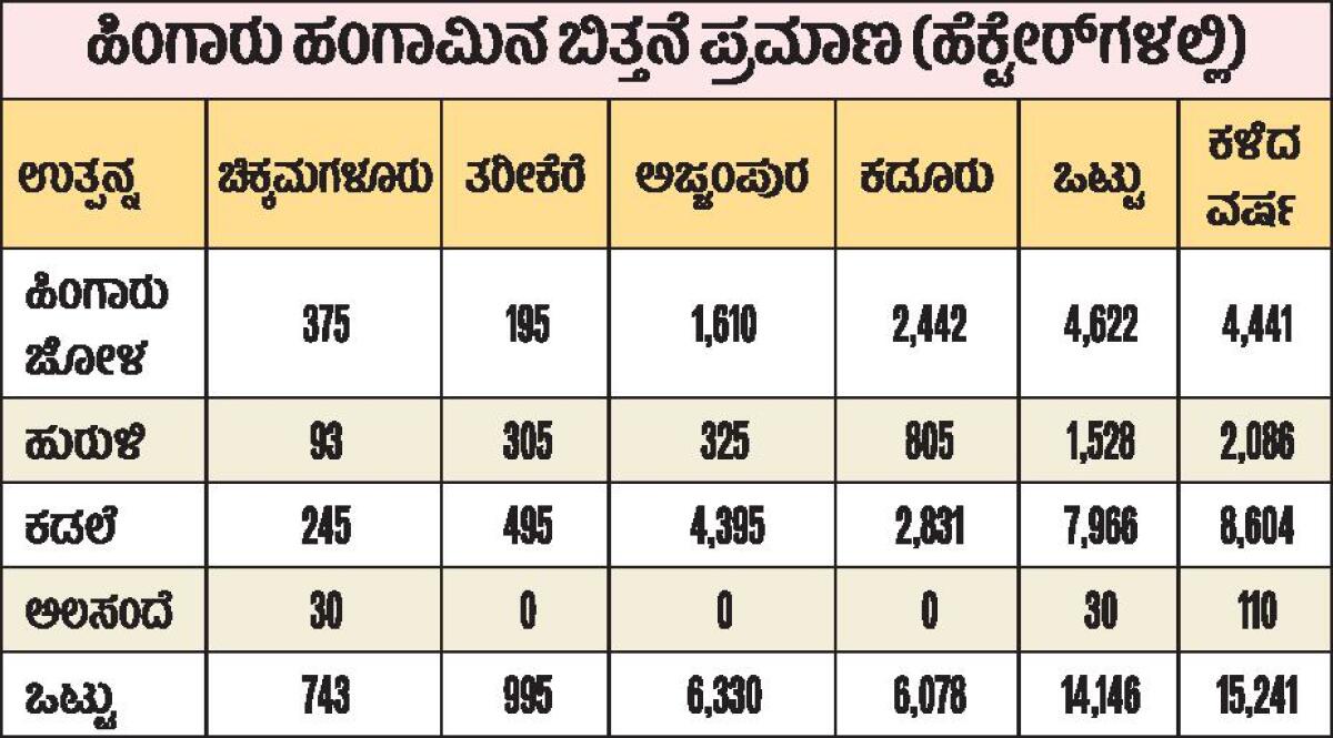 <p><strong>ಚಿಕ್ಕಮಗಳೂರು:</strong> ಜಿಲ್ಲೆಯಲ್ಲಿ ಹಿಂಗಾರು ಬೆಳೆಗಳ ಬಿತ್ತನೆ ಪೂರ್ಣಗೊಂಡಿದೆ. ಕಳೆದ ವರ್ಷಕ್ಕೆ ಹೋಲಿಸಿದರೆ ಒಂದು ಸಾವಿರ ಹೆಕ್ಟೇರ್ನಲ್ಲಿ ಬತ್ತನೆ ಕಡಿಮೆಯಾಗಿದ್ದು, ಮೆಕ್ಕೆ ಜೋಳ ಬಿತ್ತನೆಯೇ ಆಗಿಲ್ಲ.</p>.<p>ಚಿಕ್ಕಮಗಳೂರು, ಕಡೂರು, ತರೀಕೆರೆ ಮತ್ತು ಅಜ್ಜಂಪುರದಲ್ಲಿ ಮುಂಗಾರು ಮತ್ತು ಹಿಂಗಾರು ಬಿತ್ತನೆಯಾಗುತ್ತದೆ. ಉಳಿದ ಮಲೆನಾಡಿನ ತಾಲ್ಲೂಕುಗಳಲ್ಲಿ ಪ್ಲಾಂಟೇಷನ್ ಬೆಳೆಗಳು ಪ್ರಮುಖವಾಗಿವೆ.</p>.<p>ಮುಂಗಾರಿನಲ್ಲಿ ಉತ್ತಮವಾಗಿ ಮಳೆಯಾಗಿದ್ದರಿಂದ ಬಿತ್ತನೆ ಕಾರ್ಯ ಕೂಡ ಚುರುಕಾಗಿತ್ತು. ಹಿಂಗಾರಿನಲ್ಲೂ ಉತ್ತಮ ಮಳೆಯಾಗಿದೆ. ಆದರೆ, ಬಿತ್ತನೆ ಪ್ರಮಾಣ ಕಡಿಮೆಯಾಗಿದೆ. ನಿರಂತರವಾಗಿ ಮಳೆ ಸುರಿದಿದ್ದರಿಂದ ಬಿತ್ತನೆ ಕಡಿಮೆಯಾಗಿರಬಹುದು ಎಂದು ಅಂದಾಜಿಸಲಾಗಿದೆ.</p>.<p>ಹಿಂಗಾರಿನಲ್ಲಿ ಹಿಂಗಾರಿ ಜೋಳ, ಮುಸುಕಿನ ಜೋಳ (ಮೆಕ್ಕೆಜೋಳ), ಹುರುಳಿ, ಕಡಲೆ, ಅಲಸಂದೆ ಬಿತ್ತನೆ ಮಾಡಲಾಗುತ್ತದೆ. ಅದರಲ್ಲೂ ಪ್ರಮುಖವಾಗಿ ಕಡಲೆ ಬೆಳೆಯನ್ನು ಹೆಚ್ಚಿನದಾಗಿ ಬೆಳೆಯಲಾಗುತ್ತಿದೆ. ಹಿಂಗಾರಿ ಜೋಳ ವಾರ್ಷಿಕ ಗುರಿಗಿಂತ ಹೆಚ್ಚಿನ ಪ್ರಮಾಣದಲ್ಲಿ ಬಿತ್ತನೆಯಾಗಿದೆ.</p>.<p>4,100 ಹೆಕ್ಟೇರ್ನಲ್ಲಿ ಬಿತ್ತನೆಯಾಗುವ ಗುರಿ ಹೊಂದಲಾಗಿತ್ತು. 4,622 ಹೆಕ್ಟೇರ್ನಲ್ಲಿ ಬಿತ್ತನೆಯಾಗಿದೆ. ಉಳಿದ ಬೆಳೆಗಳು ವಾರ್ಷಿಕ ಗುರಿಯನ್ನು ಮುಟ್ಟಿಲ್ಲ. ಮೆಕ್ಕೆಜೋಳ 250 ಹೆಕ್ಟೇರ್ನಲ್ಲಿ ಬಿತ್ತನೆಯಾಗುವ ಗುರಿ ಹೊಂದಲಾಗಿತ್ತು. ಆದರೆ ಒಂದೇ ಒಂದು ಹೆಕ್ಟೇರ್ನಲ್ಲೂ ಬಿತ್ತನೆಯಾಗಿಲ್ಲ ಎಂದು ಕೃಷಿ ಇಲಾಖೆ ಅಂಕಿ–ಅಂಶಗಳು ಹೇಳುತ್ತವೆ.</p>.<p>ಮೆಕ್ಕೆಜೋಳ ಮುಂಗಾರಿನಲ್ಲಿ ಬೆಳೆದ ರೈತರು ಬೆಲೆ ಕುಸಿತದಿಂದ ತೊಂದರೆ ಅನುಭವಿಸಿದರು. ಹಾಸನದ ಖರೀದಿ ಕೇಂದ್ರಕ್ಕೆ ಒಯ್ದು ವಾಪಸ್ ತಂದು ಕಡಿಮೆ ಬೆಲೆಗೆ ಮಾರಾಟ ಮಾಡಬೇಕಾಯಿತು. ಇದು ಕೂಡ ರೈತರಲ್ಲಿ ಬೇಸರ ತರಿಸಿದೆ. ಇದರಿಂದ ಹಿಂಗಾರಿನಲ್ಲಿ ಬಿತ್ತನೆಯನ್ನೇ ಮಾಡಿಲ್ಲ ಎಂದು ರೈತರು ಹೇಳುತ್ತಾರೆ.</p>.<p><strong>ಪೂರಕ ಮಾಹಿತಿ: ಎನ್. ಸೋಮಶೇಖರ್, ಜೆ.ಒ. ಉಮೇಶ್ಕುಮಾರ್</strong></p>.<p><strong>ಅಜ್ಜಂಪುರ:</strong> <strong>ರಾಗಿಯತ್ತ ಮುಖ ಮಾಡಿದ ರೈತರು</strong> </p><p>ತಾಲ್ಲೂಕಿನಲ್ಲಿ ಜೋಳ ಕಡಲೆ ರಾಗಿ ಪ್ರಮುಖ ಹಿಂಗಾರು ಬೆಳೆಯಾಗಿ ಬಿತ್ತನೆಯಾಗಿವೆ. ಸುಮಾರು 3 ಸಾವಿರ ಹೆಕ್ಟೇರ್ನಲ್ಲಿ ಕಡಲೆ ಬಿತ್ತನೆಯಾಗಿದೆ. ಬೆಳೆಯಲ್ಲಿ ಸೊರಗು ಮತ್ತು ಕಾಯಿ ಕೊರಕ ರೋಗ ಬಾಧೆ ಕಾಣಿಸಿಕೊಂಡಿದೆ. ಅಲ್ಲಲ್ಲಿ ಗಿಡಗಳು ಒಣಗಿ ಸಾಯುತ್ತಿವೆ. ಇದರಿಂದಾಗಿ ಇಳುವರಿ ಪ್ರಮಾಣ ತಗ್ಗುವ ಆತಂಕ ಎದುರಾಗಿದೆ. ಎಕರೆಗೆ 10ರಿಂದ 12 ಕ್ವಿಂಟಲ್ ಬದಲಿಗೆ 5ರಿಂದ 6 ಕ್ವಿಂಟಲ್ಗೆ ಇಳುವರಿ ಬರುವ ನಿರೀಕ್ಷೆ ಇದೆ. ಜೋಳ ಸುಮಾರು 2500 ಹೆಕ್ಟೇರ್ನಲ್ಲಿ ಬಿತ್ತನೆಯಾಗಿದೆ. ಕಳೆದ ವಾರ ಸುರಿದ ಮಳೆಗೆ ಹೆಬ್ಬೂರು ಕಾಟಿಗನರೆ ನಾರಣಾಪುರ ಹರಿಯನಹಳ್ಳಿ ಭಾಗದಲ್ಲಿ ಜೋಳ ನೆಲಕ್ಕುರುಳಿದೆ. ಹಿಂಗಾರಿನಲ್ಲಿ ಈಗ ರಾಗಿ ಬೆಳೆಯತ್ತ ರೈತರು ಹೆಚ್ಚಿನ ಪ್ರಮಾಣದಲ್ಲಿ ಮುಖ ಮಾಡಿದ್ದಾರೆ. ಬೆಂಬಲ ಬೆಲೆ ₹4886 ಇರುವುದರಿಂದ ಮತ್ತು ಮೇವಿಗೆ ಹೆಚ್ಚಿನ ಬೇಡಿಕೆ ಇರುವುದರಿಂದ ರೈತರು ಆಸಕ್ತಿ ವಹಿಸಿದ್ದಾರೆ. ತಾಲ್ಲೂಕಿನಲ್ಲಿ ಮುಂಗಾರಿನ ಈರುಳ್ಳಿ ಮತ್ತು ಆಲೂಗಡ್ಡೆ ಕಟಾವಿನ ಬಳಿಕ ಸುಮಾರು 600 ಹೆಕ್ಟೇರಿನಲ್ಲಿ ರಾಗಿ ಹಿಂಗಾರಿನಲ್ಲಿ ಬಿತ್ತನೆ ಮಾಡಿದ್ದು ಪೈರು ಉತ್ತಮವಾಗಿದೆ. ರಾಣೆಬೆನ್ನೂರು ಭಾಗದಲ್ಲಿ ಹೆಚ್ಚಾಗಿ ಕಂಡುಬರುವ ಕುಸುಬೆಯನ್ನು ತಾಲ್ಲೂಕಿನ ಶಿವನಿ ಕಣಬಗಟ್ಟ ಹರಿಯನಹಳ್ಳಿ