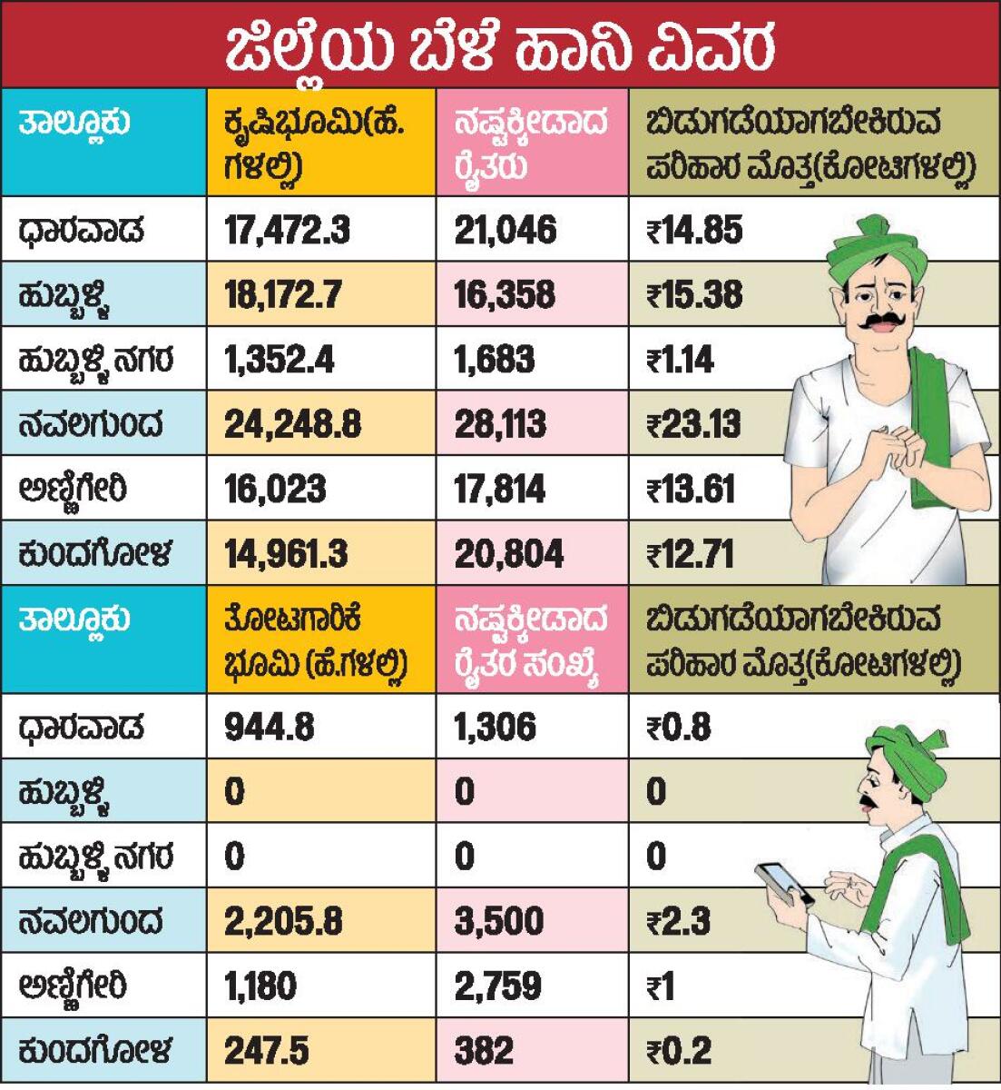 <p><strong>ಹುಬ್ಬಳ್ಳಿ:</strong> ಜಿಲ್ಲೆಯಲ್ಲಿ ಆಗಸ್ಟ್ನಲ್ಲಿ ಸುರಿದ ಅಧಿಕ ಮಳೆಯಿಂದಾದ ಬೆಳೆಹಾನಿ ಕುರಿತು ಕೈಗೊಂಡ ಜಂಟಿ ಸಮೀಕ್ಷೆ ಪೂರ್ಣಗೊಂಡಿದೆ. 1.13 ಲಕ್ಷ ರೈತರ ಒಟ್ಟು 97,629.6 ಹೆಕ್ಟೇರ್ ಬೆಳೆಹಾನಿಯಾಗಿದ್ದು, ಅಂದಾಜು ₹85 ಕೋಟಿ ಪರಿಹಾರಧನ ಬಿಡುಗಡೆ ಆಗಬೇಕಿದೆ. ರೈತರು ಅದಕ್ಕಾಗಿ ಎದುರು ನೋಡುತ್ತಿದ್ದಾರೆ.</p>.<p>ಆ.20ರಿಂದ 30ರವರೆಗೆ ಜಿಲ್ಲೆಯಲ್ಲಿ ಕೃಷಿ, ತೋಟಗಾರಿಕೆ ಹಾಗೂ ಕಂದಾಯ ಇಲಾಖೆಗಳು ಜಂಟಿ ಸಮೀಕ್ಷೆ ಕೈಗೊಂಡಿದ್ದು, ಸೆಪ್ಟೆಂಬರ್ ಮೊದಲ ವಾರದಲ್ಲಿ ವರದಿ ಸಲ್ಲಿಸಿವೆ. ವರದಿಯಂತೆ ನವಲಗುಂದ ತಾಲ್ಲೂಕಿನಲ್ಲಿ ಅತೀ ಹೆಚ್ಚು 31,613 ರೈತರ 27,274 ಹೆಕ್ಟೇರ್ ಹಾಗೂ ಕಡಿಮೆ ಹುಬ್ಬಳ್ಳಿ ನಗರದ 1,683 ರೈತರ 1,352 ಹೆಕ್ಟೇರ್ ಬೆಳೆಹಾನಿಯಾಗಿದೆ.</p>.<p>ಧಾರವಾಡದಲ್ಲಿ 21,046 ರೈತರ 17,472 ಹೆಕ್ಟೇರ್, ಹುಬ್ಬಳ್ಳಿ ತಾಲ್ಲೂಕಿನಲ್ಲಿ 16,358 ರೈತರ 18,172 ಹೆಕ್ಟೇರ್, ಅಣ್ಣಿಗೇರಿ 17,815ರೈತರ 16,023 ಹೆಕ್ಟೇರ್ ಹಾಗೂ ಕುಂದಗೋಳ ತಾಲ್ಲೂಕಿನ 20,804 ರೈತರ 14,961 ಹೆಕ್ಟೇರ್ ಪ್ರದೇಶ ಬೆಳೆಹಾನಿಯಾಗಿದೆ. ಕಲಘಟಗಿ ಹಾಗೂ ಅಳ್ನಾವರ ತಾಲ್ಲೂಕಿನಲ್ಲಿ ಬೆಳೆ ಹಾನಿಯಾಗಿಲ್ಲ. </p>.<p>ಆಗಸ್ಟ್ನಲ್ಲಿ ಸುರಿದ ಮಳೆಯಿಂದ ನಷ್ಟ ಅನುಭವಿಸಿದವರಲ್ಲಿ ಒಟ್ಟು28,817 ರೈತರು ಬೆಳೆವಿಮೆಗೆ ಅರ್ಜಿ ಸಲ್ಲಿಸಿದ್ದಾರೆ. </p>.<p>’ಆಗಸ್ಟ್ನಲ್ಲಿ ವಾಡಿಕೆಗಿಂತ ಶೇ 105ರಷ್ಟು ಹೆಚ್ಚಿನ ಮಳೆ ಸುರಿದಿದ್ದರಿಂದ ಹೆಚ್ಚಿನ ಪ್ರಮಾಣದಲ್ಲಿ ಬೆಳೆಹಾನಿಯಾಗಿದೆ. ಎನ್ಡಿಆರ್ಎಫ್ (ರಾಷ್ಟ್ರೀಯ ವಿಪತ್ತು ನಿರ್ವಹಣಾ ನಿಧಿ) ಮಾರ್ಗಸೂಚಿಯಂತೆ ಪ್ರತಿ ಹೆಕ್ಟೇರ್ಗೆ ₹8,500 ಪರಿಹಾರ ಧನ ನೀಡಲಾಗುತ್ತದೆ. ಒಬ್ಬ ರೈತರಿಗೆ ಗರಿಷ್ಠ 2 ಹೆಕ್ಟೇರ್ ಅಥವಾ 5 ಎಕರೆವರೆಗೆ ಪರಿಹಾರ ಧನ ವಿತರಿಸಲಾಗುವುದು’ ಎಂದು ಹುಬ್ಬಳ್ಳಿ ತಾಲ್ಲೂಕಿನ ಕೃಷಿ ಇಲಾಖೆಯ ಸಹಾಯಕ ನಿರ್ದೇಶಕಿ ಮಂಜುಳಾ ತೆಂಬದ ’ಪ್ರಜಾವಾಣಿ’ ಗೆ ತಿಳಿಸಿದರು.</p>.<p>’ಆಗಸ್ಟ್ನಲ್ಲಿ ಹೆಸರು ಕಟಾವಿನ ಸಂದರ್ಭದಲ್ಲಿ ಹೆಚ್ಚಿನ ಮಳೆಯಾಗಿದ್ದರಿಂದ 3 ಎಕರೆ ಬೆಳೆ ಹಾನಿಯಾಗಿದೆ. ಅಧಿಕಾರಿಗಳು ಹೊಲಕ್ಕೆ ಭೇಟಿ ನೀಡಿ ಸಮೀಕ್ಷೆ ಮಾಡಿದ್ದಾರೆ. ದೀಪಾವಳಿಗೂ ಮುನ್ನವೇ ಬೆಳೆಹಾನಿ ಪರಿಹಾರ ನೀಡುವುದಾಗಿ ಅಧಿಕಾರಿಗಳು ಭರವಸೆ ನೀಡಿದ್ದಾರೆ’ ಎನ್ನುತ್ತಾರೆ ಹೆಬ್ಬಳ್ಳಿಯ ರೈತ ಕಲ್ಮೇಶ್.</p>.<div><blockquote>ಜಿಲ್ಲೆಯಾದ್ಯಂತ ಬೆಳೆಹಾನಿ ಸಮೀಕ್ಷೆ ನಡೆಸಿ ಜಿಲ್ಲಾಧಿಕಾರಿಗಳಿಗೆ ವರದಿ ಸಲ್ಲಿಸಲಾಗಿದ್ದು ಪರಿಹಾರಧನ ಬಿಡುಗಡೆಯಾಗಬೇಕಿದೆ</blockquote><span class="attribution"> ಮಂಜುನಾಥ ಅಂತರವಳ್ಳಿ ಕೃಷಿ ಇಲಾಖೆಯ ಜಂಟಿ ನಿರ್ದೇಶಕ ಧಾರವಾಡ</span></div>.<div><blockquote>ಆಗಸ್ಟ್ನಲ್ಲಿ ಸುರಿದ ಮಳೆಯಿಂದಾಗಿ ನಷ್ಟ ಅನುಭವಿಸಿದ ರೈತರಿಗೆ ಅಂದಾಜು ₹85 ಕೋಟಿ ಪರಿಹಾರಧನ ನೀಡಬೇಕಿದೆ. ವಾರದೊಳಗೆ ಪರಿಹಾರಧನ ಬಿಡುಗಡೆ ಮಾಡಲಾಗುವುದು </blockquote><span class="attribution">ದಿವ್ಯಪ್ರಭು ಜಿಲ್ಲಾಧಿಕಾರಿ</span></div>.<div><p><strong>ಪ್ರಜಾವಾಣಿ ಆ್ಯಪ್ ಇಲ್ಲಿದೆ: <a href="https://play.google.com/store/apps/details?id=com.tpml.pv">ಆಂಡ್ರಾಯ್ಡ್ </a>| <a href="https://apps.apple.com/in/app/prajavani-kannada-news-app/id1535764933">ಐಒಎಸ್</a> | <a href="https://whatsapp.com/channel/0029Va94OfB1dAw2Z4q5mK40">ವಾಟ್ಸ್ಆ್ಯಪ್</a>, <a href="https://www.twitter.com/prajavani">ಎಕ್ಸ್</a>, <a href="https://www.fb.com/prajavani.net">ಫೇಸ್ಬುಕ್</a> ಮತ್ತು <a href="https://www.instagram.com/prajavani">ಇನ್ಸ್ಟಾಗ್ರಾಂ</a>ನಲ್ಲಿ ಪ್ರಜಾವಾಣಿ ಫಾಲೋ ಮಾಡಿ.</strong></p></div>