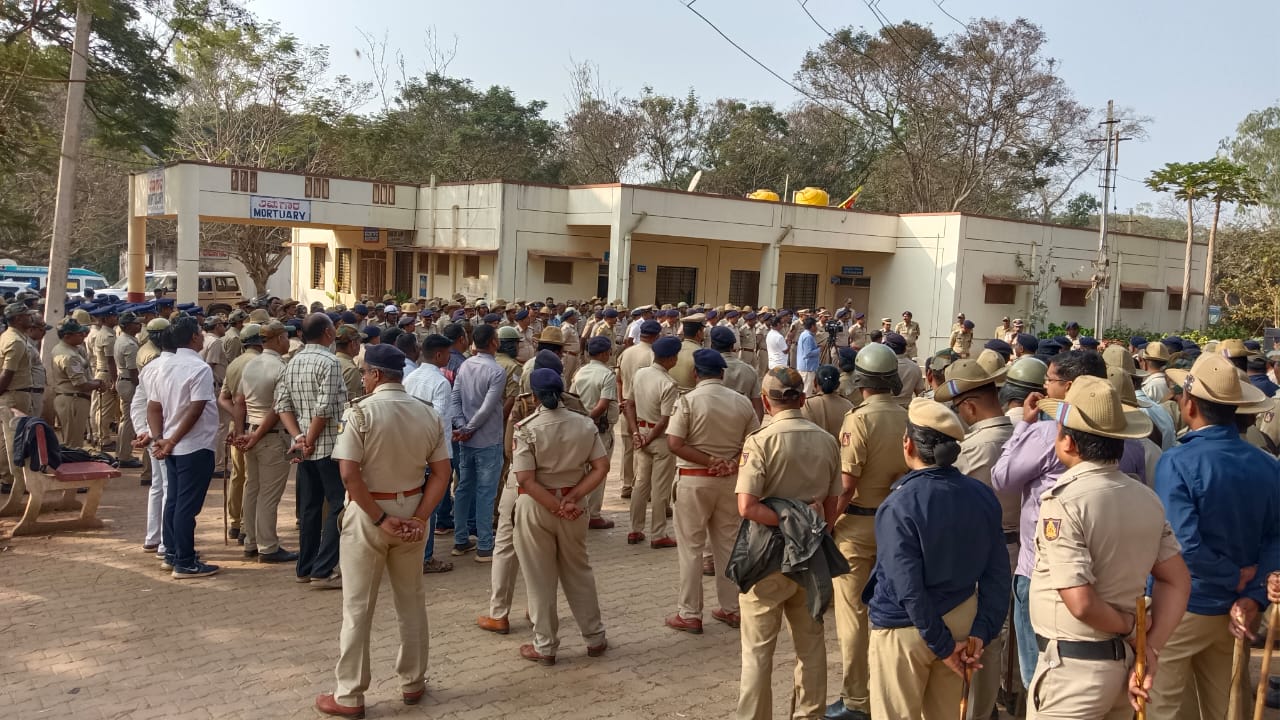 <p><strong>ಹುಬ್ಬಳ್ಳಿ:</strong> ಉತ್ತರ ಕನ್ನಡ ಜಿಲ್ಲೆಯ ಯಲ್ಲಾಪುರದ ಕಾಳಮ್ಮನಗರ ಆಶ್ರಯ ಕಾಲೊನಿಯಲ್ಲಿ ಶನಿವಾರ ಮುಸ್ಲಿಂ ಯುವಕನಿಂದ ಕೊಲೆಯಾದ ರಂಜಿತಾ ಬನಸೋಡೆ ಅವರ ಮೃತದೇಹ ನಗರದ ಕೆಎಂಸಿ-ಆರ್ಐ ಆಸ್ಪತ್ರೆಯ ಶವಾಗಾರದಲ್ಲಿ ಇಟ್ಟಿದ್ದು, ಮುಂಜಾಗ್ರತಾ ಕ್ರಮವಾಗಿ ಪೊಲೀಸ್ ಬಂದೋಬಸ್ತ್ ಮಾಡಲಾಗಿದೆ.</p><p>ಕೆಎಂಸಿ-ಆರ್ಐ ಆಸ್ಪತ್ರೆ ಸೇರಿ ನಗರದ ಪ್ರಮುಖ ಹಾಗೂ ಆಯಕಟ್ಟಿನ ಸ್ಥಳಗಳಲ್ಲಿ ಹೆಚ್ಚುವರಿ ಪೊಲೀಸ್ ಭದ್ರತೆ ಮಾಡಲಾಗಿದೆ. 500 ಕ್ಕೂ ಹೆಚ್ಚು ಸಿಬ್ಬಂದಿ ನಿಯೋಜನೆಗೊಂಡಿದ್ದಾರೆ.</p>.ಯಲ್ಲಾಪುರ: ಪ್ರೀತಿ ನಿರಾಕರಿಸಿದ್ದಕ್ಕೆ ಮಹಿಳೆಯ ಕೊಲೆಗೈದು ಆತ್ಮಹತ್ಯೆ ಮಾಡಿಕೊಂಡ. <p>ಮಹಿಳೆಯ ಶವಪರೀಕ್ಷೆ 11ರ ವೇಳೆ ನಡೆಯಲಿದ್ದು, ನಂತರ ಕುಟುಂಬಸ್ಥರಿಗೆ ಹಸ್ತಾಂತರಿಸಲಾಗುವುದು. ಆಂಬುಲೆನ್ಸ್ನಲ್ಲಿ ಮೃತದೇಹವನ್ನು ಯಲ್ಲಾಪುರಕ್ಕೆ ಕಳುಹಿಸಲಾಗುವುದು. ಕೆಲವು ಸಂಘಟನೆಗಳ ಪ್ರತಿಭಟನೆ ಹಾಗೂ ಮುನ್ನೆಚ್ಚರಿಕೆ ಕ್ರಮವಾಗಿ ಆಂಬುಲೆನ್ಸ್ ಸಾಗುವ ಮಾರ್ಗದಲ್ಲೂ ಪೊಲೀಸ್ ಸಿಬ್ಬಂದಿ ನಿಯೋಜಿಸಲಾಗಿದೆ ಎಂದು ಪೊಲೀಸರು ತಿಳಿಸಿದರು.</p><p>'ದಲಿತ ಮಹಿಳೆಯರಿಗೆ ರಕ್ಷಣೆ ಎನ್ನುವುದೇ ಇಲ್ಲವಾಗಿದೆ. ಪದೇ ಪದೇ ಇಂಥ ಕೃತ್ಯಗಳು ನಡೆಯುತ್ತಿವೆ. ಸರ್ಕಾರ ಕಠಿಣ ಕ್ರಮ ಕೈಗೊಳ್ಳಬೇಕು. ರಂಜಿತಾ ಅವರ ಪ್ರಾರ್ಥಿವ ಶರೀರದ ಮೆರವಣಿಗೆಯನ್ನು ವಿವಿಧ ಸಂಘಟನೆಯ ನೇತೃತ್ವದಲ್ಲಿ ಕಾರವಾರ ರಸ್ತೆಯವರೆಗೆ ನಡೆಸಿ, ಯಲ್ಲಾಪುರಕ್ಕೆ ಕಳುಹಿಸಲಾಗುವುದು' ಎಂದು ದಲಿತ ವಿಮೋಚನಾ ಸಮಿತಿಯ ಶ್ರೀಧರ ಕಂದಗಲ್ ತಿಳಿಸಿದರು.</p>.<div><p><strong>ಪ್ರಜಾವಾಣಿ ಆ್ಯಪ್ ಇಲ್ಲಿದೆ: <a href="https://play.google.com/store/apps/details?id=com.tpml.pv">ಆಂಡ್ರಾಯ್ಡ್ </a>| <a href="https://apps.apple.com/in/app/prajavani-kannada-news-app/id1535764933">ಐಒಎಸ್</a> | <a href="https://whatsapp.com/channel/0029Va94OfB1dAw2Z4q5mK40">ವಾಟ್ಸ್ಆ್ಯಪ್</a>, <a href="https://www.twitter.com/prajavani">ಎಕ್ಸ್</a>, <a href="https://www.fb.com/prajavani.net">ಫೇಸ್ಬುಕ್</a> ಮತ್ತು <a href="https://www.instagram.com/prajavani">ಇನ್ಸ್ಟಾಗ್ರಾಂ</a>ನಲ್ಲಿ ಪ್ರಜಾವಾಣಿ ಫಾಲೋ ಮಾಡಿ.</strong></p></div>