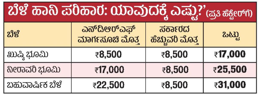 <p><strong>ಕಲಬುರಗಿ</strong>: ‘ಕಲ್ಯಾಣ ಕರ್ನಾಟಕ, ಉತ್ತರ ಕರ್ನಾಟಕ ಭಾಗದಲ್ಲಿ ಸುರಿದ ಭಾರಿ ಮಳೆಯಿಂದ ಹಾಳಾದ ಬೆಳೆಗಳಿಗೆ ರಾಷ್ಟ್ರೀಯ ವಿಪತ್ತು ಪರಿಹಾರ ನಿಧಿಯ ಮಾರ್ಗಸೂಚಿ ಅನ್ವಯ ನೀಡುವ ಪರಿಹಾರದ ಜೊತೆಗೆ ಪ್ರತಿ ಹೆಕ್ಟೇರ್ಗೆ ರಾಜ್ಯ ಸರ್ಕಾರದಿಂದ ಹೆಚ್ಚುವರಿ ₹8,500 ಪರಿಹಾರ ನೀಡಲಾಗುವುದು’ ಎಂದು ಮುಖ್ಯಮಂತ್ರಿ ಸಿದ್ದರಾಮಯ್ಯ ಘೋಷಿಸಿದರು. </p>.<p>ಮಹಾರಾಷ್ಟ್ರದ ಜಲಾಶಯಗಳಿಂದ ಭೀಮಾ ನದಿಗೆ ಹರಿದು ಬಂದ ಅಪಾರ ಪ್ರಮಾಣದ ನೀರಿನಿಂದಾಗಿ ಜಲಾವೃತವಾದ ಪ್ರದೇಶಗಳಲ್ಲಿ ಮಂಗಳವಾರ ವೈಮಾನಿಕ ಸಮೀಕ್ಷೆ ನಡೆಸಿ ಅಧಿಕಾರಿಗಳೊಂದಿಗೆ ಸಭೆ ಮಾಡಿದ ಬಳಿಕ ಸುದ್ದಿಗೋಷ್ಠಿಯಲ್ಲಿ ಈ ನಿರ್ಧಾರ ಪ್ರಕಟಿಸಿದರು.</p>.<p>‘ಬೆಳೆ ನಷ್ಟವನ್ನು ತುಂಬಿ ಕೊಡುವುದಕ್ಕಾಗಿ ಸರ್ಕಾರ ₹2 ಸಾವಿರ ಕೋಟಿಗೂ ಅಧಿಕ ಹಣವನ್ನು ವ್ಯಯಿಸಲಿದೆ’ ಎಂದರು.</p>.<p>ಕಲ್ಯಾಣ ಕರ್ನಾಟಕದ ಕಲಬುರಗಿ, ಬೀದರ್, ಯಾದಗಿರಿ; ಉತ್ತರ ಕರ್ನಾಟಕದ ವಿಜಯಪುರ, ಬೆಳಗಾವಿ, ಬಾಗಲಕೋಟೆ, ಧಾರವಾಡ, ಗದಗ ಜಿಲ್ಲೆಗಳಲ್ಲಿ ವಾಡಿಕೆಗಿಂತ ಅಧಿಕ ಮಳೆ ಆಗಿದೆ. ಮಹಾರಾಷ್ಟ್ರದಿಂದ ಈ ಬಾರಿ ಹೆಚ್ಚುವರಿ ನೀರನ್ನು ಹರಿಬಿಟ್ಟಿದ್ದರಿಂದ ಕಲಬುರಗಿ, ವಿಜಯಪುರ ಹಾಗೂ ಯಾದಗಿರಿ ಜಿಲ್ಲೆಗಳಲ್ಲಿ ಪ್ರವಾಹ ಉಂಟಾಗಿದೆ ಎಂದು ತಿಳಿಸಿದರು. </p>.<p>9.60 ಲಕ್ಷ ಹೆಕ್ಟೇರ್ ಹಾನಿ: ‘ರಾಜ್ಯದಲ್ಲಿ ಮಳೆಯಿಂದಾಗಿ 9,60,578 ಹೆಕ್ಟೇರ್ನಲ್ಲಿ ಬೆಳೆ ಹಾನಿಯಾಗಿದ್ದು, ಆ ಪೈಕಿ ಶೇ 95ರಷ್ಟು ಬೆಳೆ ಹಾನಿ ಉತ್ತರ ಕರ್ನಾಟಕ ಹಾಗೂ ಕಲ್ಯಾಣ ಕರ್ನಾಟಕದ ಎಂಟು ಜಿಲ್ಲೆಗಳಲ್ಲಿ ಸಂಭವಿಸಿದೆ. </p>.<p>ಕಲಬುರಗಿ, ವಿಜಯಪುರ ಮತ್ತು ಯಾದಗಿರಿ ಜಿಲ್ಲೆಗಳಲ್ಲಿ ಒಟ್ಟು 117 ಗ್ರಾಮಗಳು ತೊಂದರೆಗೊಳಗಾಗಿವೆ. ಈ ಜಿಲ್ಲೆಗಳ ವ್ಯಾಪ್ತಿಯಲ್ಲಿ 80 ಕಾಳಜಿ ಕೇಂದ್ರ ತೆರೆಯಲಾಗಿದೆ. ಜೂನ್ 1ರಿಂದ ಇಲ್ಲಿಯವರೆಗೆ ಮಳೆ ಸಂಬಂಧಿ ಅವಘಡಗಳಿಂದಾಗಿ 52 ಮಂದಿ ಮೃತ ಪಟ್ಟಿದ್ದಾರೆ. 422 ಜಾನುವಾರು ಮೃತಪಟ್ಟಿವೆ. ಜೀವಹಾನಿಗೆ ಪರಿಹಾರ ನೀಡಲಾಗಿದೆ’ ಎಂದರು.</p>.<p>ನೆರೆ ಪೀಡಿತ ಜಿಲ್ಲೆಗಳಲ್ಲಿ ರಸ್ತೆ, ಸೇತುವೆ, ಶಾಲೆ, ಅಂಗನವಾಡಿ, ವಿದ್ಯುತ್ ಟ್ರಾನ್ಸ್ಫಾರ್ಮರ್ ಹಾಳಾಗಿರುವುದು ಸೇರಿದಂತೆ ಇತರ ಹಾನಿಗಳ ಬಗ್ಗೆ ಸಮೀಕ್ಷೆ ಕಾರ್ಯ ನಡೆಯುತ್ತಿದೆ. ಸಮೀಕ್ಷೆ ಪೂರ್ಣಗೊಂಡು ವರದಿ ಬಂದ ಕೂಡಲೇ ಪರಿಹಾರ ನೀಡಲು ಕ್ರಮ ಕೈಗೊಳ್ಳಲಾಗುವುದು. ಈಗಾಗಲೇ ಪ್ರತಿ ಕ್ಷೇತ್ರಕ್ಕೆ ವಿಶೇಷ ಅನುದಾನದ ರೂಪದಲ್ಲಿ ₹25 ಕೋಟಿಯಿಂದ ₹50 ಕೋಟಿ ನೀಡಲಾಗಿದೆ’ ಎಂದು ಹೇಳಿದರು.</p>.<p>ಜಂಟಿ ಸಮೀಕ್ಷೆ ಬಳಿಕ ಸಾಲಮನ್ನಾ ತೀರ್ಮಾನ: ‘ಆದಷ್ಟು ಶೀಘ್ರ ಜಂಟಿ ಸಮೀಕ್ಷೆ ನಡೆಸಿ ಪರಿಹಾರ ನೀಡುವುದು ನಮ್ಮ ಮೊದಲ ಗುರಿ. ರೈತರ ಬೆಳೆ ಸಾಲ ಮನ್ನಾ ಮಾಡುವ ಬಗ್ಗೆ ನಂತರ ಪರಿಶೀಲನೆ ನಡೆಸುತ್ತೇವೆ’ ಎಂದು ಸಿ.ಎಂ ಪ್ರಶ್ನೆಯೊಂದಕ್ಕೆ ಉತ್ತರಿಸಿದರು.</p>.<p>ಪತ್ರಿಕಾಗೋಷ್ಠಿಯಿಂದ ನಿರ್ಗಮಿಸುವ ವೇಳೆ ಮತ್ತೆ ಈ ಪ್ರಶ್ನೆ ಕೇಳಿದ ವರದಿಗಾರರಿಗೆ, ‘ಬಿಜೆಪಿಯವರು ಬೆಳೆ ಸಾಲಮನ್ನಾ ಮಾಡಿದ್ದರೇ’ ಎಂದು ಮರು ಪ್ರಶ್ನೆ ಹಾಕಿದರು. </p>.<div><blockquote>ರಾಜ್ಯದಲ್ಲಿ ಪ್ರವಾಹ ನಿರ್ವಹಣೆಗಾಗಿ ವಿಶೇಷ ಪ್ಯಾಕೇಜ್ ನೀಡುವಂತೆ ಪ್ರಧಾನಿ ಗೃಹಸಚಿವರು ಹಣಕಾಸು ಸಚಿವರನ್ನು ಭೇಟಿ ಮಾಡಿ ಮನವಿ ಸಲ್ಲಿಸಲಾಗುವುದು</blockquote><span class="attribution"> ಸಿದ್ದರಾಮಯ್ಯ. ಮುಖ್ಯಮಂತ್ರಿ</span></div>.<p><strong>ವೈಮಾನಿಕ ಸಮೀಕ್ಷೆ ನಡೆಸಿದ ಸಿ.ಎಂ</strong></p><p> ಕಲಬುರಗಿ: ಭೀಮಾ ಹಾಗೂ ಮಾಂಜ್ರಾ ನದಿಗಳಲ್ಲಿ ಪ್ರವಾಹದಿಂದ ಉಂಟಾಗಿರುವ ಸಮಸ್ಗೆಗಳನ್ನು ಅರಿಯಲು ಮುಖ್ಯಮಂತ್ರ