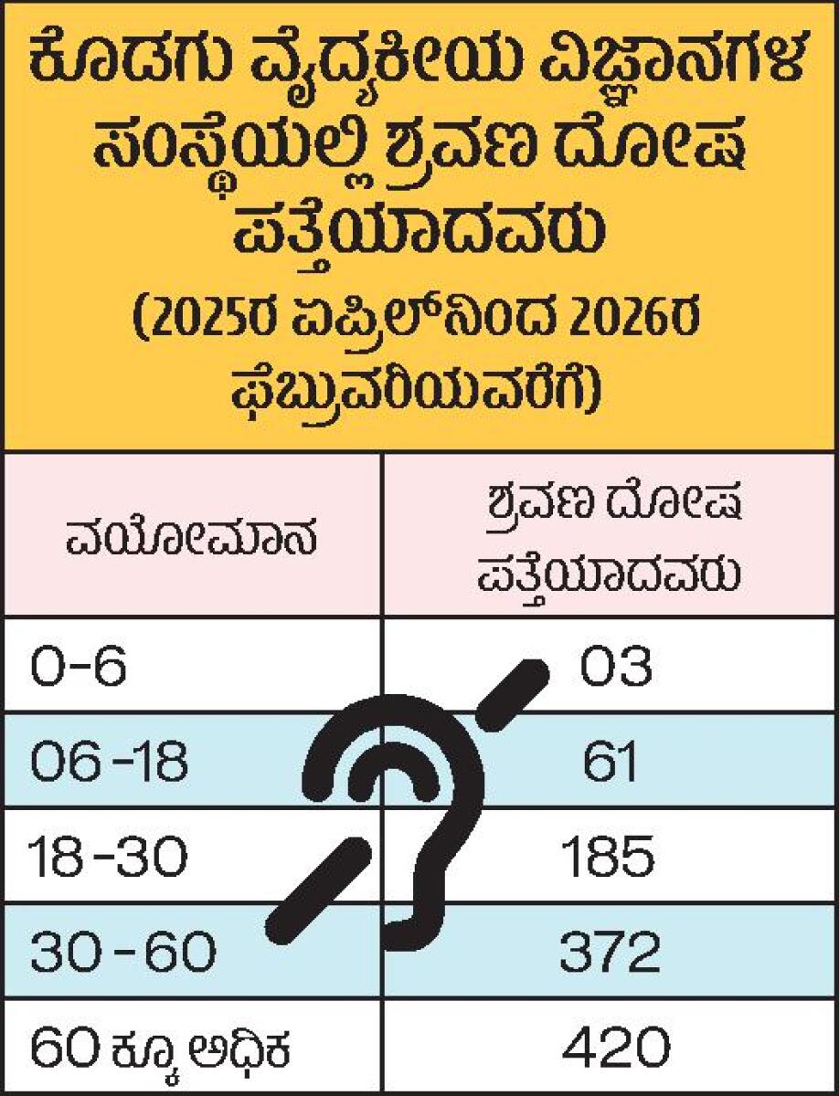 ಕೊಡಗಿನ 2 ತಾಲ್ಲೂಕು ಆಸ್ಪತ್ರೆಗಳಲ್ಲೂ ಜಿಲ್ಲಾಸ್ಪತ್ರೆಯಲ್ಲೂ ಕಿವಿ ಮೂಗು ಗಂಟಲು ವೈದ್ಯರು ಇದ್ದಾರೆ. ತೊಂದರೆ ಇದ್ದವರು ತಪಾಸಣೆಗೆ ಒಳಗಾಗಬಹುದು
