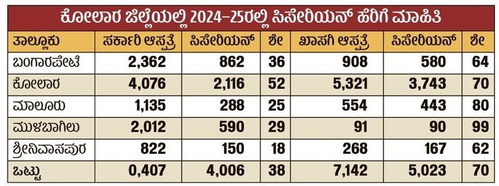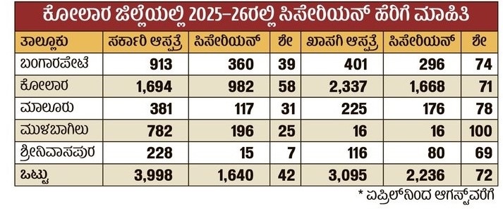 <p><strong>ಕೋಲಾರ:</strong> ಜಿಲ್ಲೆಯ ಖಾಸಗಿ ಆಸ್ಪತ್ರೆಗಳಲ್ಲಿ ಸಿಸೇರಿಯನ್ (ಸಿ–ಸೆಕ್ಷನ್) ಹೆರಿಗೆ ಪ್ರಕರಣ ಹೆಚ್ಚುತ್ತಿದ್ದು, 2024–25ನೇ ಸಾಲಿನಲ್ಲಿ ಶೇ 70 ಹಾಗೂ 2025–26ನೇ ಸಾಲಿನಲ್ಲಿ ಆಗಸ್ಟ್ ಅಂತ್ಯದವರೆಗೆ ಶೇ 72ರಷ್ಟು ಪ್ರಮಾಣ ದಾಖಲಾಗಿರುವುದು ಆತಂಕ ಹುಟ್ಟಿಸಿದೆ.</p>.<p>ಸಿಸೇರಿಯನ್ ಹೆರಿಗೆಗಳಿಗೆ ಕಡಿವಾಣ ಹಾಕುವಂತೆ ಆರೋಗ್ಯ ಇಲಾಖೆ ಎಚ್ಚರಿಕೆ ನೀಡಿದ್ದರೂ ಶಸ್ತ್ರಚಿಕಿತ್ಸೆ ಮೂಲಕ ಹೆರಿಗೆ ಮಾಡುತ್ತಿರುವ ಪ್ರಕರಣ ಹೆಚ್ಚುತ್ತಲೇ ಇವೆ.</p>.<p>ಹಣ ವಸೂಲಿಗಾಗಿ ಅನಗತ್ಯವಾಗಿ ಸಿಸೇರಿಯನ್ ಹೆರಿಗೆ ಮಾಡಿಸುವ ಖಾಸಗಿ ಆಸ್ಪತ್ರೆಗಳನ್ನು ಮುಚ್ಚಿಸುವಂತೆ ಈ ಹಿಂದೆ ಕೆಡಿಪಿ ಸಭೆಯಲ್ಲಿ ಸೂಚನೆ ಕೂಡ ನೀಡಲಾಗಿತ್ತು. ಆದರೂ ಪ್ರಮಾಣ ಕಡಿಮೆ ಆಗಿಲ್ಲ. ಕೆಲ ಗರ್ಭಿಣಿಯರು ಸಿಸೇರಿಯನ್ ಆಯ್ಕೆಯೂ ಹೆಚ್ಚಳಕ್ಕೆ ಕಾರಣ ಎಂಬುದು ತಿಳಿದು ಬಂದಿದೆ. ಕ್ಲಿಷ್ಟಕರ ಸಂದರ್ಭದಲ್ಲಷ್ಟೇ ಶಸ್ತ್ರಚಿಕಿತ್ಸೆ ಮೂಲಕ ಹೆರಿಗೆ ಮಾಡಿಸಲು ಆರೋಗ್ಯ ಇಲಾಖೆ ಸಲಹೆ ನೀಡಿದೆ.</p>.<p>ಜಿಲ್ಲಾ ಆರೋಗ್ಯ ಇಲಾಖೆ ನೀಡಿರುವ ಮಾಹಿತಿ ಪ್ರಕಾರ ಈ ವರ್ಷ ಜಿಲ್ಲೆಯಲ್ಲಿ ಆಗಸ್ಟ್ ತಿಂಗಳ ಅಂತ್ಯದವರೆಗೆ ಒಟ್ಟು 7,093 ಹೆರಿಗೆ ಪ್ರಕರಣಗಳು ದಾಖಲಾಗಿವೆ. ಅದರಲ್ಲಿ ಒಟ್ಟು 3,906 ಸಿಸೇರಿಯನ್ ಹೆರಿಗೆ ನಡೆದಿವೆ. ಅಂದರೆ ಶೇ 55ರಷ್ಟು ಸಿಸೇರಿಯನ್, ಶೇ 45ರಷ್ಟು ಸಹಜ ಪ್ರಸವ ನಡೆದಿರುವುದು ಸ್ಪಷ್ಟವಾಗುತ್ತದೆ.</p>.<p>ಅದರಲ್ಲೂ ಸರ್ಕಾರಿ ಹಾಗೂ ಖಾಸಗಿ ಆಸ್ಪತ್ರೆಗಳಲ್ಲಿ ಪರಿಸ್ಥಿತಿ ಅವಲೋಕಿಸಿದರೆ ಅಂಕಿಅಂಶಗಳು ಮತ್ತಷ್ಟು ಆತಂಕ ಹುಟ್ಟಿಸುತ್ತವೆ. ಕಳೆದ ಐದು ತಿಂಗಳಲ್ಲಿ ಖಾಸಗಿ ಆಸ್ಪತ್ರೆಗಳಲ್ಲಿ ಒಟ್ಟು 3,095 ಹೆರಿಗೆ ನಡೆದಿವೆ. ಈ ಪೈಕಿ 2,236 ಪ್ರಕರಣಗಳು ಸಿಸೇರಿಯನ್ ಹೆರಿಗೆಗಳಾಗಿವೆ. ಅಂದರೆ ಸಿಸೇರಿಯನ್ ಪ್ರಮಾಣ ಶೇ 72.</p>.<p>ಹಾಗೆ ನೋಡಿದರೆ ಸರ್ಕಾರಿ ಆಸ್ಪತ್ರೆಗಳೇ ಪರವಾಗಿಲ್ಲ. ಸರ್ಕಾರಿ ಆಸ್ಪತ್ರೆಗಳಲ್ಲಿ ದಾಖಲಾದ 3,998 ಪ್ರಕರಣಗಳಲ್ಲಿ ಕೇವಲ 1,640 ಸಿಸೇರಿಯನ್ ಹೆರಿಗೆಗಳಾಗಿವೆ. ಈ ಪ್ರಮಾಣ ಶೇ 42. ಇದು ಕೂಡ ಹೆಚ್ಚೇ. ಆದರೆ, ಖಾಸಗಿ ಆಸ್ಪತ್ರೆಗಳಿಗೆ ಹೋಲಿಸಿದರೆ ಓಕೆ.</p>.<p>2024ರ ಏಪ್ರಿಲ್ನಿಂದ 2025ರ ಮಾರ್ಚ್ ಅಂತ್ಯದವರೆಗಿನ ಅಂಕಿಅಂಶಗಳು ಕೂಡ ಇದೇ ಆತಂಕಕಾರಿ ಮಾಹಿತಿ ತೆರೆದಿಡುತ್ತವೆ. ಖಾಸಗಿ ಆಸ್ಪತ್ರೆಗಳಲ್ಲಿ ಹೆರಿಗೆಗೆಂದು ದಾಖಲಾದ ಪ್ರಕರಣಗಳಲ್ಲಿ ಶೇ 70ರಷ್ಟು ಸಿ–ಸೆಕ್ಷನ್ ಹೆರಿಗೆ ಆಗಿರುವುದು ಪತ್ತೆಯಾಗಿದೆ.</p>.<p>ಖಾಸಗಿ ಆಸ್ಪತ್ರೆಗಳಲ್ಲಿ ಒಟ್ಟು 7,142 ಹೆರಿಗೆಗಳು ನಡೆದಿದ್ದು, ಅದರಲ್ಲಿ 5,023 ಸಿಸೇರಿಯನ್ ಹೆರಿಗೆಗಳಾಗಿರುವುದು ಗಂಭೀರವಾದ ವಿಚಾರವಾಗಿದೆ. ಅದರಲ್ಲೂ ಮುಳಬಾಗಿಲು (ಶೇ 99) ಹಾಗೂ ಮಾಲೂರು (ಶೇ 80) ತಾಲ್ಲೂಕುಗಳಲ್ಲಿ ಈ ಸಂಖ್ಯೆ ಮತ್ತಷ್ಟು ಅಧಿಕವಾಗಿದೆ.</p>.<div><blockquote>‘ಕೆಲ ಮಹಿಳೆಯರು ಕೂಡ ವಿವಿಧ ಕಾರಣಗಳಿಂದ ಸಿ–ಸೆಕ್ಷನ್ ಹೆರಿಗೆಗೆ ಮುಂದಾಗುತ್ತಾರೆ. ಇಂಥ ದಿನವೇ ಮಗು ಜನಿಸಿದರೆ ಒಳ್ಳೆಯದು ಎಂಬ ಕೆಲವರ ನಂಬಿಕೆಯೂ ಇದಕ್ಕೆ ಕಾರಣ. ಸಿ–ಸೆಕ್ಷನ್ ಕಡಿಮೆ ಮಾಡಲು ಆರೋಗ್ಯ ಇಲಾಖೆಯಿಂದಲೂ ನಿಗಾ ಇಡಲಾಗಿದೆ’ </blockquote><span class="attribution">ಡಾ.ಚಾರಿಣಿ, ಜಿಲ್ಲಾ ಆರ್ಸಿಎಚ್ ಅಧಿಕಾರಿ </span></div>.<p>ಸಹಜ ಹೆರಿಗೆ ಸಂದರ್ಭದಲ್ಲಾಗುವ ಅತೀವ ನೋವು ಸಹಿಸಲಾಗದೆಂದು ಬಹುತೇಕರು ಶಸ್ತ್ರಚಿಕಿತ್ಸೆ ಮೊರೆ ಹೋಗುತ್ತಾರೆ. ಇನ್ನು ಕೆಲವೆಡೆ ಖಾಸಗಿ ಆಸ್ಪತ್ರೆಗಳೇ ಸಿ–ಸೆಕ್ಷನ್ ಹೆರಿಗೆಗೆ ಪ್ರೋತ್ಸಾಹಿಸುತ್ತಿರುವುದು ಕಂಡುಬಂದಿದೆ. </p>.<p>ತಾಯಿ ಹಾಗೂ ಮಗುವಿನ ಜೀವ ಉಳಿಸಲು ಅತ್ಯಗತ್ಯ ಎನ