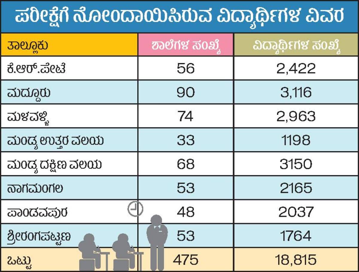 <p><strong>ಮಂಡ್ಯ</strong>: ಜಿಲ್ಲೆಯಲ್ಲಿ ಪ್ರಸಕ್ತ ಸಾಲಿನ ಎಸ್ಎಸ್ಎಲ್ಸಿ ಪರೀಕ್ಷೆಯು ಮಾರ್ಚ್ 18ರಿಂದ ಏ.2ರವರೆಗೆ ನಡೆಯಲಿದೆ. ಜಿಲ್ಲೆಯಾದ್ಯಂತ ತೆರೆದಿರುವ 62 ಕೇಂದ್ರಗಳಲ್ಲಿ ಸಿಸಿಟಿವಿ ಕ್ಯಾಮೆರಾ ಕಣ್ಗಾವಲಿನ ವ್ಯವಸ್ಥೆ ಮಾಡಲಾಗಿದೆ. </p>.<p>ಯಾವುದೇ ಲೋಪ ಉಂಟಾಗದಂತೆ ಪಾರದರ್ಶಕ ಮತ್ತು ನ್ಯಾಯಸಮ್ಮತ ಪರೀಕ್ಷೆ ನಡೆಸಲು ಜಿಲ್ಲಾಡಳಿತ, ಜಿಲ್ಲಾ ಪಂಚಾಯಿತಿ ಮತ್ತು ಶಾಲಾ ಶಿಕ್ಷಣ ಇಲಾಖೆ ಸಕಲ ಸಿದ್ಧತೆಗಳನ್ನು ಕೈಗೊಂಡಿದೆ. ಪರೀಕ್ಷಾ ಕೇಂದ್ರಗಳಿಗೆ ಕುಡಿಯುವ ನೀರು, ಶೌಚಾಲಯ ಸೇರಿದಂತೆ ಮೂಲಸೌಕರ್ಯ ಕಲ್ಪಿಸಲಾಗಿದೆ. </p>.<p>ಜಿಲ್ಲೆಯಲ್ಲಿ ಹೊಸದಾಗಿ 9,467 ಗಂಡು ಮಕ್ಕಳು ಮತ್ತು 9,348 ಹೆಣ್ಣು ಮಕ್ಕಳು ಸೇರಿದಂತೆ ಒಟ್ಟು 18,815 ವಿದ್ಯಾರ್ಥಿಗಳು ನೋಂದಣಿಯಾಗಿದ್ದಾರೆ. ಖಾಸಗಿ, ಪುನರಾವರ್ತಿತ, ವಿಶೇಷಚೇತನರು ಸೇರಿದಂತೆ ಒಟ್ಟು 20,669 ವಿದ್ಯಾರ್ಥಿಗಳು ಈ ಬಾರಿ ಪರೀಕ್ಷೆ ಬರೆಯಲಿದ್ದಾರೆ. </p>.<p><strong>ಮಾರ್ಗಗಳ ಸಂಖ್ಯೆ: </strong></p>.<p>ಜಿಲ್ಲೆಯ ಎಂಟು ಶೈಕ್ಷಣಿಕ ವಲಯಗಳಲ್ಲಿ ಒಟ್ಟು 27 ಮಾರ್ಗಗಳನ್ನು ಪ್ರಶ್ನೆಪತ್ರಿಕೆ ವಿತರಣೆಗೆ ಗುರುತಿಸಲಾಗಿದ್ದು, ಪ್ರತಿ ಮಾರ್ಗಕ್ಕೆ ಇಬ್ಬರಂತೆ ಮಾರ್ಗಾಧಿಕಾರಿಗಳನ್ನು ತಾಲ್ಲೂಕು ಹಂತದಲ್ಲಿ ನೇಮಕ ಮಾಡಲಾಗಿದೆ. ಪರೀಕ್ಷಾ ಸಮಯವನ್ನು ಬೆಳಿಗ್ಗೆ 10ರಿಂದ ಮಧ್ಯಾಹ್ನ 1.15 ನಿಗದಿಗೊಳಿಸಲಾಗಿದೆ. </p>.<p>ಪರೀಕ್ಷಾ ಕೇಂದ್ರದ 200 ಮೀಟರ್ ವ್ಯಾಪ್ತಿಯಲ್ಲಿ ಜೆರಾಕ್ಸ್ ಹಾಗೂ ಸೈಬರ್ ಕೇಂದ್ರಗಳನ್ನು ಮುಚ್ಚಲಾಗುವುದು. ಜಿಲ್ಲಾ ಖಜಾನೆಯಿಂದ ಪ್ರಶ್ನೆ ಪತ್ರಿಕೆಯನ್ನು ಪೊಲೀಸ್ ಬಿಗಿ ಭದ್ರತೆಯೊಂದಿಗೆ ಪರೀಕ್ಷಾ ಕೇಂದ್ರಗಳಿಗೆ ಒಂದು ಗಂಟೆ ಮುಂಚಿತವಾಗಿ ತಲುಪಿಸುವ ವ್ಯವಸ್ಥೆ ಮಾಡಲಾಗಿದೆ. </p>.<p><strong>ಸಿಸಿಟಿವಿ ಕ್ಯಾಮೆರಾ ಕಣ್ಗಾವಲು:</strong></p>.<p>ಜಿಲ್ಲಾಧಿಕಾರಿ ಕಚೇರಿಯಲ್ಲಿ ವೆಬ್ ಕಾಸ್ಟಿಂಗ್ ನಡೆಯಲಿದ್ದು ಸದರಿ ವೆಬ್ ಕಾಸ್ಟಿಂಗ್ ವೀಕ್ಷಿಸಲು ಅಧಿಕಾರಿಗಳನ್ನು ನೇಮಿಸಲಾಗಿದೆ. ಅಧಿಕಾರಿಗಳು ಸೂಕ್ಷ್ಮವಾಗಿ ಸಿಸಿಟಿವಿ ಕ್ಯಾಮೆರಾ ದೃಶ್ಯಾವಳಿಗಳನ್ನು ಪರಿಶೀಲಿಸಿ, ಎಲ್ಲಿಯೂ ನಕಲು ಮತ್ತು ಲೋಪ ಉಂಟಾಗದಂತೆ ಎಚ್ಚರಿಕೆ ವಹಿಸುವಂತೆ ಜಿಲ್ಲಾಧಿಕಾರಿ ತಾಕೀತು ಮಾಡಿದ್ದಾರೆ. </p>.<p><strong>ಫಲಿತಾಂಶ ವೃದ್ಧಿಗೆ ಕ್ರಮ:</strong></p>.<p>2024–25ನೇ ಸಾಲಿನ ಎಸ್ಎಸ್ಎಲ್ಸಿ ಪರೀಕ್ಷೆ–1ರಲ್ಲಿ ಮಂಡ್ಯ ಜಿಲ್ಲೆಯು ಶೇ 69.27 ಫಲಿತಾಂಶ ಪಡೆದು, ರಾಜ್ಯಮಟ್ಟದ ಜಿಲ್ಲಾವಾರು ಹೋಲಿಕೆಯಲ್ಲಿ 12ನೇ ಸ್ಥಾನ ಗಳಿಸಿತ್ತು. 2023–24ನೇ ಸಾಲಿನಲ್ಲಿ ಶೇ 74.54ರಷ್ಟು ಫಲಿತಾಂಶ ಪಡೆದು, 19ನೇ ಸ್ಥಾನ ಗಳಿಸಿತ್ತು. </p>.<div><blockquote>ಎಸ್ಎಸ್ಎಲ್ಸಿ ಪರೀಕ್ಷೆಗೆ ಸಕಲ ಸಿದ್ಧತೆ ಕೈಗೊಳ್ಳಲಾಗಿದೆ. ಮಂಡ್ಯ ಜಿಲ್ಲೆಯ ಫಲಿತಾಂಶ ವೃದ್ಧಿಗೂ ವಿನೂತನ ಕಾರ್ಯಕ್ರಮ ಕೈಗೊಂಡಿದ್ದೆವು. ಈ ಬಾರಿ ಟಾಪ್–5 ಪಟ್ಟಿಯಲ್ಲಿ ಸ್ಥಾನ ಗಳಿಸುವ ನಿರೀಕ್ಷೆಯಿದೆ. </blockquote><span class="attribution">– ಜಿ.ಎ.ಲೋಕೇಶ್, ಡಿಡಿಪಿಐ, ಮಂಡ್ಯ</span></div>.<p>ಈ ಬಾರಿ ಜಿಲ್ಲಾ ಪಂಚಾಯಿತಿ ಸಿಇಒ ಕೆ.ಆರ್.ನಂದಿನಿ ಅವರು ವಿಶೇಷ ಆಸಕ್ತಿ ವಹಿಸಿ, ಜಿಲ್ಲೆಯ ಫಲಿತಾಂಶ ವೃದ್ಧಿಗೆ ಹಲವಾರು ಕ್ರಮಗಳನ್ನು ಕೈಗೊಳ್ಳುವಂತೆ ಡಿಡಿಪಿಐ ಅವರಿಗೆ ಸೂಚಿಸಿದ್ದರು. ಅದರಂತೆ, ಕಲಿಕೆಯಲ್ಲಿ ಹಿಂದುಳಿದ ಮಕ್ಕಳ ಫಲಿತಾಂಶ ಸುಧಾರಣೆಗಾಗಿ ‘ಮಿಷನ್ ಫಾರ್ಟಿ ಪ್ಲಸ್ ಇನ್ ನೈಂಟಿ ಡೇಸ್’ ಕಾರ್ಯಕ್ರಮ ರೂಪಿಸಲಾಗಿತ್ತು.</p>.<p>ಆರು ವಿಷಯಗಳಿಗೆ ಸಂಬಂಧಿಸಿದ ಬಹು ನಿರೀಕ್ಷಿತ ಪ್ರಶ್ನೋತ್ತರಗಳನ್ನು ಒಳಗೊಂಡ 172 ಪುಟಗಳ ‘ಕಲಿಕಾ ಮಿತ್ರ’ ಪುಸ್ತಕ ಮತ್ತು 