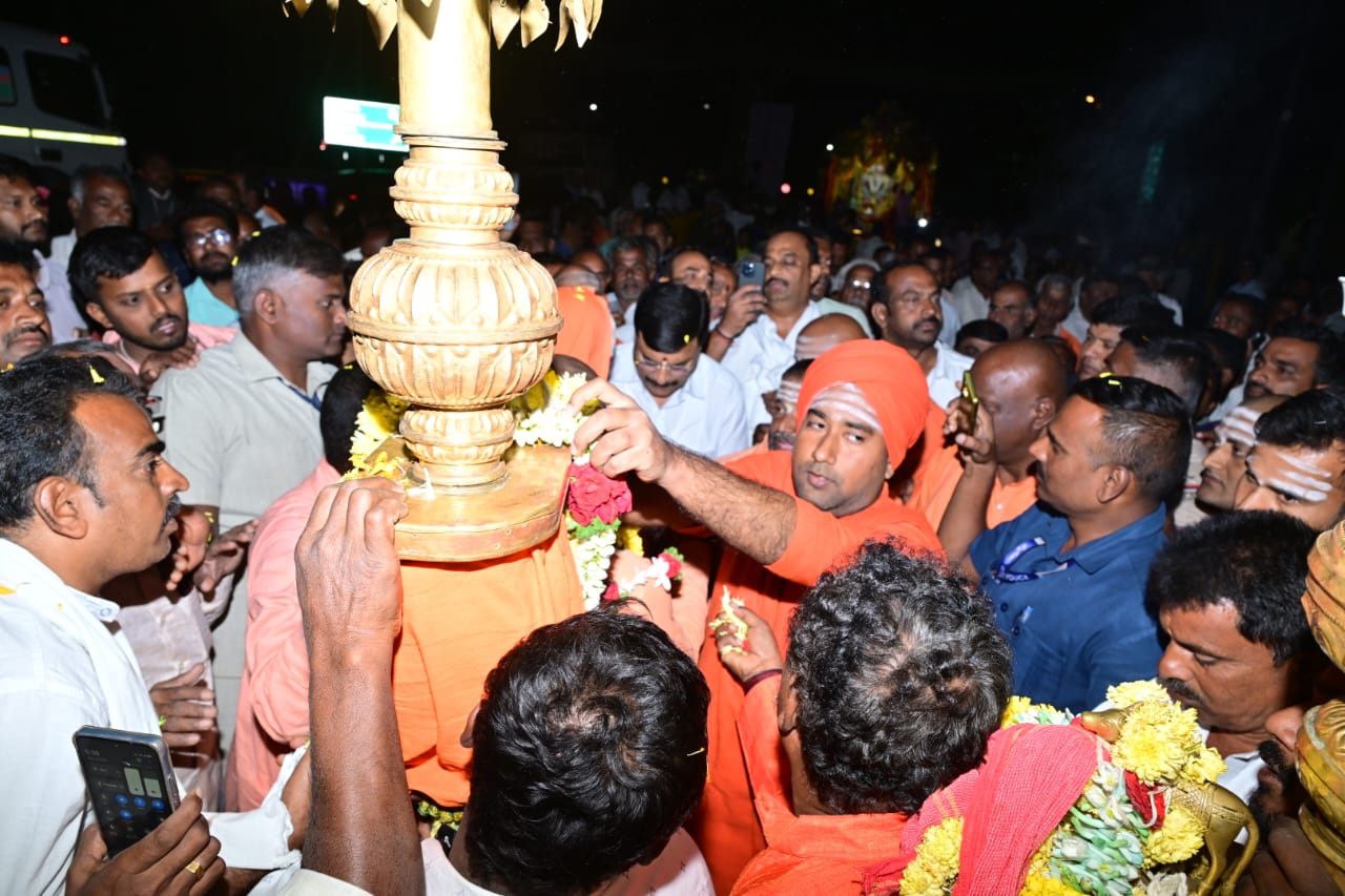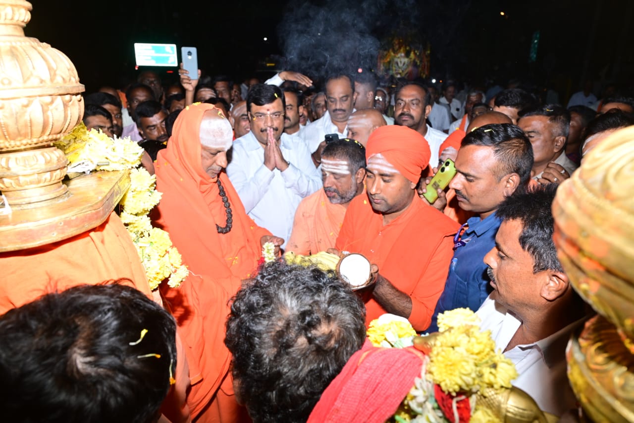 ಮಳವಳ್ಳಿ: ಸುತ್ತೂರು ಶಿವರಾತ್ರೀಶ್ವರ ಶಿವಯೋಗಿಗಳ ಉತ್ಸವಮೂರ್ತಿಗೆ ಅದ್ದೂರಿ ಸ್ವಾಗತ