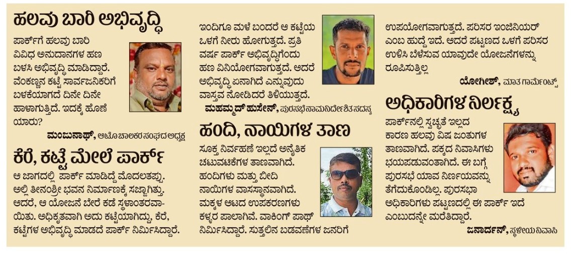 <p><strong>ಚಿಕ್ಕನಾಯಕನಹಳ್ಳಿ:</strong> ಪಟ್ಟಣದ ಪ್ರಮುಖ ಮತ್ತು ದೊಡ್ಡ ಉದ್ಯಾನಗಳಲ್ಲಿ ಒಂದಾದ ‘ವೆಂಕಣ್ಣನ ಕಟ್ಟೆ ಪಾರ್ಕ್’ ನಿರ್ವಹಣೆ ಇಲ್ಲದೆ ಪಾಳುಬಿದ್ದಿದೆ.</p>.<p>ಪಟ್ಟಣದ ಪೂರ್ವ ಭಾಗದಲ್ಲಿ ನೆಲೆಗೊಂಡಿರುವ ಈ ಸುಂದರ ಪಾರ್ಕ್, ಪುರಸಭೆಯ ನಿರ್ಲಕ್ಷ್ಯದಿಂದಾಗಿ ಸ್ವಚ್ಛತೆ, ಮೂಲ ಸೌಕರ್ಯ ಮತ್ತು ಅಭಿವೃದ್ಧಿಯಿಲ್ಲದೆ ಬಸವಳಿದಿದೆ ಎಂದು ಸ್ಥಳೀಯ ನಿವಾಸಿಗಳು ದೂರಿದ್ದಾರೆ.</p>.<p>ಚಿಕ್ಕನಾಯಕನಹಳ್ಳಿ ಹಾಗೂ ತಿಪಟೂರು ರಸ್ತೆಗೆ ಹೊಂದಿಕೊಂಡಿರುವ ಉದ್ಯಾನ ಪಟ್ಟಣದ ನಿವಾಸಿಗಳಿಗೆ, ಮಕ್ಕಳು, ಹಿರಿಯ ನಾಗರಿಕರು ಮತ್ತು ವಾಕಿಂಗ್ ಮಾಡುವವರಿಗೆ ಪ್ರಮುಖ ವಿರಾಮ ಸ್ಥಳವಾಗಿತ್ತು. ದೊಡ್ಡ ಪ್ರದೇಶವನ್ನು ಹೊಂದಿರುವ ಈ ಪಾರ್ಕ್ಗೆ ಸಸಿಗಳನ್ನು ನೆಟ್ಉ ನಿರ್ವಹಣೆ ಮಾಡಿದ್ದರೆ ಹಸಿರಿನಿಂದ ಕಂಗೊಳಿಸುತ್ತಿತ್ತು ಎನ್ನುತ್ತಾರೆ ಸಾರ್ವಜನಿಕರು.</p>.<p>ಪಾರ್ಕ್ನಾದ್ಯಂತ ಕಸಕಡ್ಡಿ, ಪ್ಲಾಸ್ಟಿಕ್ ತ್ಯಾಜ್ಯ ಮತ್ತು ಒಣಗಿದ ಎಲೆಗಳು ತುಂಬಿದ್ದು, ಸ್ವಚ್ಛತೆ ನಿರ್ವಹಣೆ ಇಲ್ಲ. ಎಲ್ಲೆಂದರಲ್ಲಿ ಕಸದ ರಾಶಿ ಬಿದ್ದಿದೆ. ಮಕ್ಕಳು ಆಟವಾಡಲು ಅಳವಡಿಸಿದ್ದ ಸಲಕರಣೆಗಳು (ಸ್ಲೈಡ್ಗಳು, ಊಯ್ಯಾಲೆಗಳು) ಮುರಿದು ಬಿದ್ದಿದ್ದು, ತುಕ್ಕು ಹಿಡಿದಿದೆ. ವಾಕಿಂಗ್ ಟ್ರ್ಯಾಕ್ಗಳು ಹದಗೆಟ್ಟಿದ್ದು, ಹಿರಿಯ ನಾಗರಿಕರು ವಿಶ್ರಾಂತಿ ಪಡೆಯಲು ಅಳವಡಿಸಿದ್ದ ಆಸನಗಳು ಬಳಕೆಗೆ ಯೋಗ್ಯವಾಗಿಲ್ಲ. ಕುಡಿಯುವ ನೀರಿನ ಸೌಲಭ್ಯವೂ ಇಲ್ಲವಾಗಿದೆ.</p>.<p>ಪಾರ್ಕ್ನಲ್ಲಿ ಸಾರ್ವಜನಿಕರು ಕೆಲವು ಸಸಿಗಳನ್ನು ನೆಟ್ಟು ಪೋಷಣೆ ಮಾಡಿದ್ದೂ ಹೊರೆತುಪಡಿಸಿ ಪುರಸಭೆ ಈ ಬಗ್ಗೆ ಯಾವುದೇ ಪ್ರಯತ್ನ ಮಾಡಿಲ್ಲ. ಪಾರ್ಕ್ ಸುತ್ತ ಕಳೆಗಳಿಂದ ಆವೃತವಾಗಿದೆ. ಸಂಜೆಯ ಸಮಯದಲ್ಲಿ ಪಾರ್ಕ್ನಲ್ಲಿ ಬೆಳಕಿನ ವ್ಯವಸ್ಥೆ ಇಲ್ಲದೆ ಕತ್ತಲಿನಲ್ಲಿ ಜನರು ವಾಕಿಂಗ್ ಮಾಡಲು ಭಯ ಪಡುವಂತಾಗಿದೆ. ಅನೈತಿಕ ಚಟುವಟಿಕೆಗಳಿಗೆ ಆಶ್ರಯ ತಾಣವಾಗುವ ಭೀತಿ ಇದೆ. ಪಾರ್ಕ್ನ ಈ ಸ್ಥಿತಿಯ ಬಗ್ಗೆ ಪುರಸಭೆ ಅಧಿಕಾರಿಗಳು ಮತ್ತು ಸದಸ್ಯರು ಯಾವುದೇ ನಿಯಮಿತ ಮೇಲ್ವಿಚಾರಣೆ ನಡೆಸುತ್ತಿಲ್ಲ ಎಂದು ಸಾರ್ವಜನಿಕರು ಆಕ್ರೋಶ ವ್ಯಕ್ತಪಡಿಸಿದ್ದಾರೆ.</p>.<p><strong>ಸಾರ್ವಜನಿಕರ ಬೇಡಿಕೆಗಳು...</strong> </p><p>ಪಾರ್ಕ್ ಸ್ವಚ್ಛತೆ ನಿರ್ವಹಣೆಗೆ ಕೂಡಲೇ ಶಾಶ್ವತ ವ್ಯವಸ್ಥೆ ರೂಪಿಸಬೇಕು. ಮಕ್ಕಳ ಆಟಿಕೆ ಕುಡಿಯುವ ನೀರು ಆಸನ ವಾಕಿಂಗ್ ಟ್ರ್ಯಾಕ್ ಸೇರಿದಂತೆ ಮೂಲ ಸೌಕರ್ಯ. ಹೊಸ ಗಿಡಗಳನ್ನು ನೆಟ್ಟು ನೀರುಣಿಸಬೇಕು. ರಾತ್ರಿ ಸಮರ್ಪಕ ಬೆಳಕಿನ ವ್ಯವಸ್ಥೆ ಕಲ್ಪಿಸಬೇಕು. ಪಾರ್ಕ್ ಅಭಿವೃದ್ಧಿಗೆ ಸೂಕ್ತ ಅನುದಾನ ಬಿಡುಗಡೆ. </p>.<div><p><strong>ಪ್ರಜಾವಾಣಿ ಆ್ಯಪ್ ಇಲ್ಲಿದೆ: <a href="https://play.google.com/store/apps/details?id=com.tpml.pv">ಆಂಡ್ರಾಯ್ಡ್ </a>| <a href="https://apps.apple.com/in/app/prajavani-kannada-news-app/id1535764933">ಐಒಎಸ್</a> | <a href="https://whatsapp.com/channel/0029Va94OfB1dAw2Z4q5mK40">ವಾಟ್ಸ್ಆ್ಯಪ್</a>, <a href="https://www.twitter.com/prajavani">ಎಕ್ಸ್</a>, <a href="https://www.fb.com/prajavani.net">ಫೇಸ್ಬುಕ್</a> ಮತ್ತು <a href="https://www.instagram.com/prajavani">ಇನ್ಸ್ಟಾಗ್ರಾಂ</a>ನಲ್ಲಿ ಪ್ರಜಾವಾಣಿ ಫಾಲೋ ಮಾಡಿ.</strong></p></div>