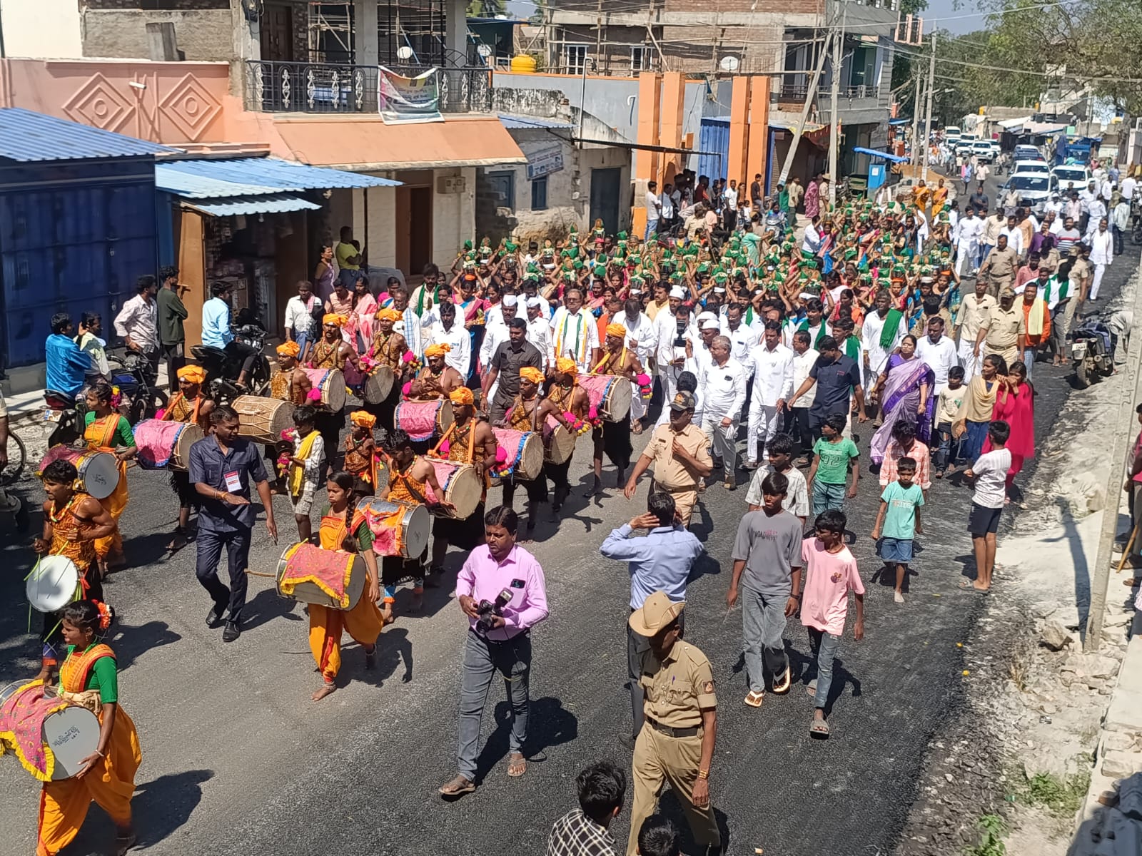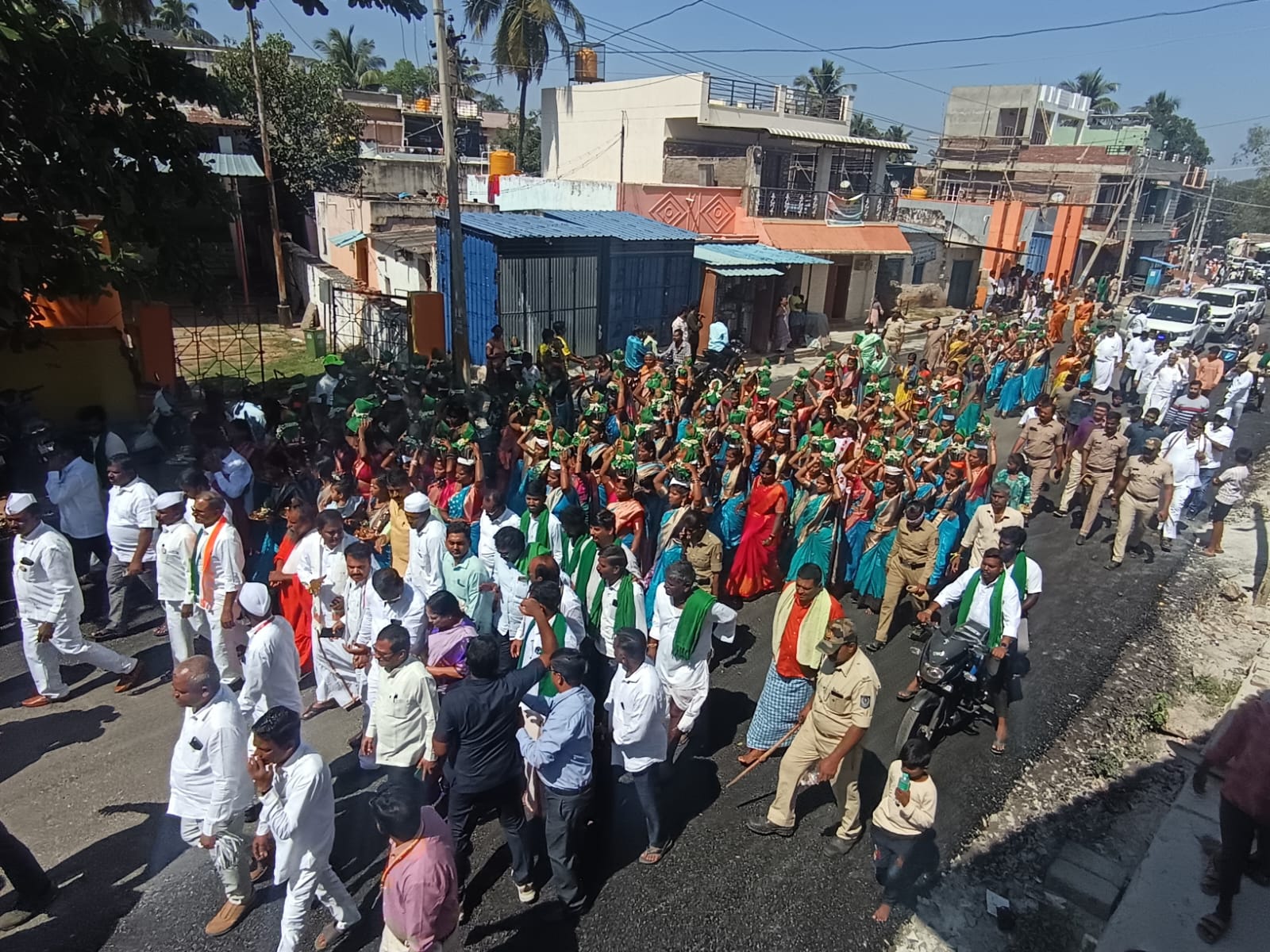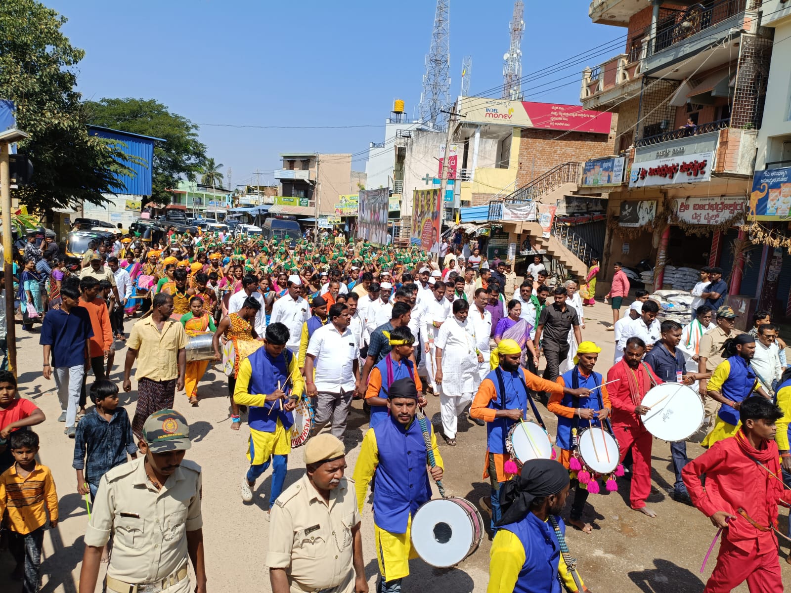 <p><strong>ಕೂಡ್ಲಿಗಿ (ವಿಜಯನಗರ ಜಿಲ್ಲೆ):</strong> ತಾಲ್ಲೂಕಿನ 74 ಕೆರೆಗಳಿಗೆ ನೀರು ತುಂಬಿಸುವ ಯೋಜನೆಗಳ ಲೋಕಾರ್ಪಣೆ ಹಾಗೂ ವಿವಿಧ ಕಾಮಗಾರಿಗಳು ಉದ್ಘಾಟನೆ, ಶಂಕುಸ್ಥಾಪನೆ ಮತ್ತು ಫಲಾನುಭವಿಗಳಿಗೆ ವಿವಿಧ ಇಲಾಖೆಗಳ ಸವಲತ್ತುಗಳ ವಿತರಣಾ ಕಾರ್ಯಕ್ರಮದಲ್ಲಿ ಪಾಲ್ಗೊಳ್ಳಲು ಮುಖ್ಯಮಂತ್ರಿ ಸಿದ್ದರಾಮಯ್ಯ ಜಿಲ್ಲೆಗೆ ಆಗಮಿಸಿದ್ದು, ಮಧ್ಯಾಹ್ನ 2ರ ಸುಮಾರಿಗೆ ಇಲ್ಲಿಗೆ ಹರಪನಹಳ್ಳಿಯಿಂದ ಆಗಮಿಸುವ ನಿರೀಕ್ಷೆ ಇದೆ.</p>.<p>ಅದಕ್ಕೆ ಮೊದಲಾಗಿ ಭಾನುವಾರ ಮಧ್ಯಾಹ್ನ ಪಟ್ಟಣದಲ್ಲಿ ವಿವಿಧ ಕಲಾ ತಂಡಗಳೊಂದಿಗೆ ಪೂರ್ಣ ಕುಂಭ ಮೆರವಣಿಗೆ ನಡೆಯಿತು.</p>.<p>ಪಟ್ಟಣದ ಗ್ರಾಮ ದೇವತೆ ಊರಮ್ಮ ದೇವಸ್ಥಾನದಲ್ಲಿ ರಾಜನಹಳ್ಳಿಯ ವಾಲ್ಮೀಕಿ ಗುರು ಪೀಠದ ಪ್ರಸನ್ನಾನಂದಪುರಿ ಸ್ವಾಮೀಜಿ, ಕೊಟ್ಟೂರಿನ ಡೋಣೂರ ಚಾನಕೋಟಿ ಮಠದ ಸಿದ್ದಲಿಂಗ ಶಿವಾಚಾರ್ಯ ಸ್ವಾಮಿ, ಕೂಡ್ಲಿಗಿ ಹಿರೇಮಠದ ಪ್ರಶಾಂತ ಸಾಗರ ಸ್ವಾಮೀಜಿ, ಸಿದ್ದಯ್ಯನಕೋಟೆಯ ಚಿತ್ತರಗಿಯ ವಿಜಯ ಮಹಾಂತೇಶ್ವರ ಶಾಖಾ ಮಠದ ಬಸವಲಿಂಗ ಸ್ವಾಮಿ, ಬಂಜಾರ ಪೀಠದ ಪ್ರಕಾಶ ಸ್ವಾಮಿ ಅವರ ನೇತೃತ್ವದಲ್ಲಿ ಶಾಸಕ ಡಾ. ಶ್ರೀನಿವಾಸ್ ಎನ್.ಟಿ. ಅವರು ತಮ್ಮ ಪತ್ನಿ ಡಾ. ಪುಷ್ಪ ಅವರೊಂದಿಗೆ ತಾಲ್ಲೂಕಿನ 74 ಕೆರೆಗಳಿಂದ ತಂದಿದ್ದ ನೀರನ್ನು ತುಂಬಿದ್ದ ಪೂರ್ಣ ಕುಂಭಗಳಿಗೆ ಪೂಜೆ ಸಲ್ಲಿಸಿದರು. ನಂತರ ಮಹಿಳೆಯರು ಅವುಗಳನ್ನು ಹೊತ್ತು ಪಟ್ಟಣದ ಪ್ರಮುಖ ಬೀದಿಗಳಲ್ಲಿ ಸಂಚರಿಸಿ ಶಾಸಕರ ಕಚೇರಿ ಮುಂದಿನ ಕಾರ್ಯಕ್ರಮದ ಪ್ರಮುಖ ವೇದಿಕೆಗೆ ಬರಲಾಯಿತು. </p>.<p>ಮೆರವಣಿಗೆಯಲ್ಲಿ ಲಂಬಾಣಿ ಮಹಿಳೆಯರು ತಮ್ಮ ಸಾಂಪ್ರದಾಯಿಕ ನೃತ್ಯದ ಮೂಲಕ ಗಮನ ಸೆಳೆದರು. ಇವರೊಂದಿಗೆ ಶಾಸಕರು ಸೇರಿದಂತೆ ಮೆರವಣಿಗೆಯಲ್ಲಿ ಭಾಗಿಯಾಗಿದ್ದ ಪ್ರಮುಖರು ಹೆಜ್ಜೆ ಹಾಕಿದರು.</p>.<div><p><strong>ಪ್ರಜಾವಾಣಿ ಆ್ಯಪ್ ಇಲ್ಲಿದೆ: <a href="https://play.google.com/store/apps/details?id=com.tpml.pv">ಆಂಡ್ರಾಯ್ಡ್ </a>| <a href="https://apps.apple.com/in/app/prajavani-kannada-news-app/id1535764933">ಐಒಎಸ್</a> | <a href="https://whatsapp.com/channel/0029Va94OfB1dAw2Z4q5mK40">ವಾಟ್ಸ್ಆ್ಯಪ್</a>, <a href="https://www.twitter.com/prajavani">ಎಕ್ಸ್</a>, <a href="https://www.fb.com/prajavani.net">ಫೇಸ್ಬುಕ್</a> ಮತ್ತು <a href="https://www.instagram.com/prajavani">ಇನ್ಸ್ಟಾಗ್ರಾಂ</a>ನಲ್ಲಿ ಪ್ರಜಾವಾಣಿ ಫಾಲೋ ಮಾಡಿ.</strong></p></div>
