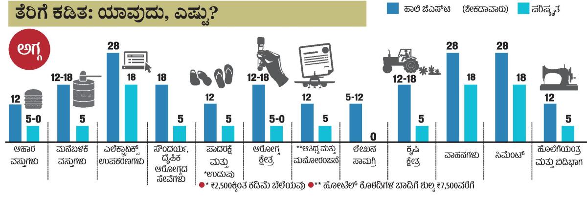 ದೇಶದ ಜನರ ಬಹುದಿನಗಳ ಬೇಡಿಕೆಗೆ ಕೇಂದ್ರ ಸರ್ಕಾರ ಕೊನೆಗೂ ಸ್ಪಂದಿಸಿದೆ. ಸರಕು ಮತ್ತು ಸೇವಾ ತೆರಿಗೆ (ಜಿಎಸ್ಟಿ) ಹಂತಗಳನ್ನು ಕಡಿಮೆ ಮಾಡುವುದರ ಜೊತೆಗೆ, ಹಲವು ವಸ್ತುಗಳ ಮೇಲಿನ ಜಿಎಸ್ಟಿ ದರವನ್ನು ಗಣನೀಯವಾಗಿ ಕಡಿತಗೊಳಿಸುವ ನಿರ್ಧಾರವನ್ನು ಜಿಎಸ್ಟಿ ಮಂಡಳಿ ಕೈಗೊಂಡಿದೆ. ಇದೇ 22ರಿಂದ ಹೊಸ ತೆರಿಗೆಗಳು ಅನ್ವಯವಾಗಲಿವೆ. ಜನರ ಜೀವನವನ್ನು ಸುಧಾರಿಸಲು ಮತ್ತು ಆತ್ಮನಿರ್ಭರ ಭಾರತ ನಿರ್ಮಾಣಕ್ಕಾಗಿ ಈ ಸುಧಾರಣೆ ತರಲಾಗಿದೆ ಎಂದು ಕೇಂದ್ರ ಸರ್ಕಾರ ಹೇಳಿದೆ. ತೆರಿಗೆ ಕಡಿತದ ಲಾಭವನ್ನು ಗ್ರಾಹಕರಿಗೆ ವರ್ಗಾಯಿಸಬೇಕು ಎಂದು ಸರ್ಕಾರ ಕಂಪನಿಗಳಿಗೆ ತಿಳಿಸಿದೆ. ವಿವಿಧ ವಲಯಗಳ ಕಂಪನಿಗಳು ಕೂಡ ಜಿಎಸ್ಟಿ ಪರಿಷ್ಕರಣೆಯ ಕುರಿತಾಗಿ ಸಕಾರಾತ್ಮಕವಾಗಿ ಸ್ಪಂದಿಸಿವೆ. ಜನರು ಕೂಡ ತಮ್ಮ ಜೇಬಿನ ಮೇಲೆ ಬಿದ್ದಿರುವ ಹೊರೆ ಕೊಂಚವಾದರೂ ಕಡಿಮೆಯಾಗಬಹುದು ಎಂಬ ನಿರೀಕ್ಷೆಯಲ್ಲಿದ್ದಾರೆ.