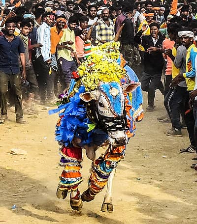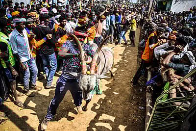 ಹಾವೇರಿ ಜಿಲ್ಲೆಯ ಬಸಾಪುರ ಗ್ರಾಮದಲ್ಲಿ ಮೊನ್ನೆಯಷ್ಟೇ ಕೊಬ್ರಿ ಹೋರಿ ಬೆದರಿಸುವ ಸ್ಪರ್ಧೆ ನಡೆಯಿತು. ಜನಜಂಗುಳಿಯ ಮಧ್ಯದಲ್ಲಿ ಮಿಂಚಿನ ವೇಗದಲ್ಲಿ ಓಡಿಬಂದ ಹೋರಿಗಳನ್ನು ಬೆದರಿಸುವ, ನಿಯಂತ್ರಿಸುವ ಸಾಹಸಕ್ಕೆ ಗಂಡೆದೆ ಗುಂಡಿಗೆಯ ಯುವಕರು ಯತ್ನಿಸಿದರು. ಅಡ್ಡ ಬಂದವರನ್ನು ಲೆಕ್ಕಿಸದೆ ಹೋರಿಗಳು ಓಡಿ ಬರುತ್ತಿದ್ದರೆ, ಜನ ‘ಹೋ’ ಎಂದು ಕೂಗು ಹಾಕಿ ಹಿಂದೆ ಸರಿಯುತ್ತಿ ದ್ದರು. ಸ್ಪರ್ಧೆಯಲ್ಲಿ ಕಂಡ ಕೆಲವು ರೋಚಕ ನೋಟಗಳು ಇಲ್ಲಿವೆ... ಚಿತ್ರಗಳು: ತಾಜುದ್ದೀನ್ ಆಜಾದ್.