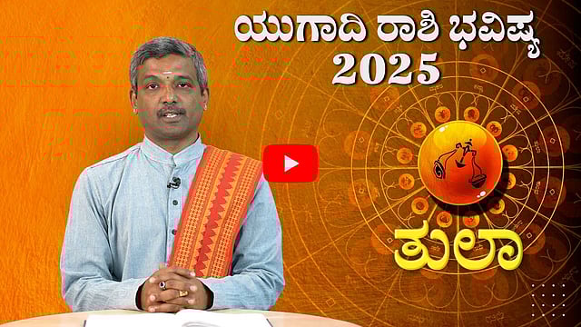 ಇದು 2025ರ ಯುಗಾದಿ ರಾಶಿ ಭವಿಷ್ಯ. ಯುಗಾದಿ ಎಂದರೆ ಹೊಸ ವರ್ಷ. ವಿಶ್ವಾವಸು ನಾಮ ಸಂವತ್ಸರದ ಯುಗಾದಿ ವರ್ಷದಲ್ಲಿ ತುಲಾ ರಾಶಿಯ ಭವಿಷ್ಯ. ವರ್ಷವಿಡೀ ಆರೋಗ್ಯ, ಶಿಕ್ಷಣ, ಸಂತಸ, ಉದ್ಯೋಗ - ಇವುಗಳು ಹೇಗಿರಲಿವೆ? ವೇದ ವಿದ್ವಾನ್ ಟಿ.ವಿ.ಅಜಿತ್ ಕಾರಂತ ಅವರು ವಿವರಿಸಿದ್ದಾರೆ. ಗಮನಿಸಿ. ಇದು ರಾಶಿಯ ಗೋಚಾರ ಫಲ ಮಾತ್ರ. ಆಯಾ ವ್ಯಕ್ತಿಯ ಹುಟ್ಟಿದ ಸಮಯ, ನಕ್ಷತ್ರ, ಗ್ರಹಗಳ ಕೂಟ, ದಶಾಭುಕ್ತಿ ಮುಂತಾದವುಗಳ ಆಧಾರದಲ್ಲಿ ನಿರ್ದಿಷ್ಟ ಶುಭಾಶುಭ ಫಲಗಳು ನಿರ್ಣಯವಾಗಲಿವೆ.