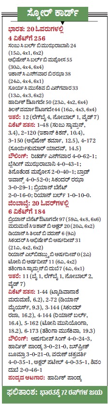 <p><strong>ಚೆನ್ನೈ</strong>: ಆರಂಭಿಕ ಅಭಿಷೇಕ್ ಶರ್ಮಾ ಅವರು ಅಮೋಘ ಅರ್ಧಶತಕದೊಂದಿಗೆ ಲಯಕ್ಕೆ ಮರಳಿದರು. ಕೊನೆಯಲ್ಲಿ ಹಾರ್ದಿಕ್ ಪಾಂಡ್ಯ ಮತ್ತು ತಿಲಕ್ ವರ್ಮಾ ಅವರೂ ಮಿಂಚಿನ ಆಟವಾಡಿದರು. ಇದರೊಂದಿಗೆ ಟೂರ್ನಿಯ ಇತಿಹಾಸದಲ್ಲಿ ಎರಡನೇ ಅತ್ಯಧಿಕ ಮೊತ್ತ ದಾಖಲಿಸಿದ ಭಾರತ ತಂಡವು ಟಿ20 ವಿಶ್ವಕಪ್ ಸೂಪರ್ ಎಂಟರ ಪಂದ್ಯದಲ್ಲಿ ಗುರುವಾರ ಜಿಂಬಾಬ್ವೆ ವಿರುದ್ಧ ಸುಲಭ ಜಯ ಗಳಿಸಿತು. </p>.<p>ಎಂ.ಎ. ಚಿದಂಬರಂ ಕ್ರೀಡಾಂಗಣದಲ್ಲಿ ನಡೆದ ಪಂದ್ಯದಲ್ಲಿ ಭಾರತ 72 ರನ್ಗಳಿಂದ ಜಯಗಳಿಸಿ ಸೆಮಿಫೈನಲ್ನ ಕನಸನ್ನು ಜೀವಂತವಾಗಿರಿಸಿಕೊಂಡಿತು. ಸೂಪರ್ ಎಂಟರ ಎ ಗುಂಪಿನಲ್ಲಿ ಭಾರತ ಸದ್ಯ ಮೂರನೇ ಸ್ಥಾನದಲ್ಲಿದೆ. ಮಾರ್ಚ್ 1ರಂದು ವೆಸ್ಟ್ ಇಂಡೀಸ್ ವಿರುದ್ಧ ನಡೆಯಲಿರುವ ಕೊನೆಯ ಪಂದ್ಯ ಉಭಯ ತಂಡಗಳಿಗೆ ನಿರ್ಣಾಯಕವಾಗಲಿದೆ. ಜಿಂಬಾಬ್ವೆ ತಂಡ ಈ ಸೋಲಿನೊಂದಿಗೆ ನಾಕೌಟ್ ರೇಸ್ನಿಂದ ಹೊರಬಿತ್ತು.</p>.<p>ಬ್ಯಾಟಿಂಗ್ಗೆ ಇಳಿಸಲ್ಪಟ್ಟ ಭಾರತ ತಂಡವು ಅಭಿಷೇಕ್ (55;30ಎ, 4x4, 6x4), ಹಾರ್ದಿಕ್ (ಔಟಾಗದೇ 50;23ಎ, 4x2, 6x4) ಮತ್ತು ತಿಲಕ್ (ಔಟಾಗದೇ 44;16ಎ, 4x3, 6x4) ಅವರ ಬ್ಯಾಟಿಂಗ್ ಬಲದಿಂದ 4 ವಿಕೆಟ್ಗೆ 256 ರನ್ಗಳ ಬೃಹತ್ ಮೊತ್ತ ದಾಖಲಿಸಿತು. ವಿಶ್ವಕಪ್ನಲ್ಲಿ ಭಾರತದ ಅತ್ಯಧಿಕ ಮೊತ್ತ ಇದಾಗಿದೆ. ಇದಕ್ಕೆ ಇತರ ಬ್ಯಾಟರ್ಗಳು ಉಪಯುಕ್ತ ಕಾಣಿಕೆ ನೀಡಿದರು.</p>.<p>ಕಠಿಣ ಗುರಿ ಬೆನ್ನಟ್ಟಿದ ಜಿಂಬಾಬ್ವೆ ತಂಡವು ಕೊನೆಯತನಕ ಉತ್ತಮ ಹೋರಾಟ ತೋರಿ, ಸೋಲಿನ ಅಂತರವನ್ನು ಕಡಿಮೆ ಮಾಡಿಕೊಂಡಿತಷ್ಟೇ. ಆರಂಭಿಕ ಆಟಗಾರ ಬ್ರಿಯಾನ್ ಬೆನೆಟ್ (ಔಟಾಗದೇ 97; 59ಎ, 4x8, 6x6) ಅವರು ಅರ್ಹ ಶತಕ ತಪ್ಪಿಸಿಕೊಂಡರು. ಅವರು ನಾಯಕ ಸಿಕಂದರ್ ರಝಾ (31;21) ಜೊತೆ ಮೂರನೇ ವಿಕೆಟ್ಗೆ 72 ರನ್ ಸೇರಿಸಿ ಭಾರತದ ದಾಳಿಗೆ ಸಡ್ಡು ಹೊಡೆದರು. ತಂಡವು 20 ಓವರ್ಗಳಲ್ಲಿ 6 ವಿಕೆಟ್ಗೆ 184 ರನ್ ಗಳಿಸಿ ಹೋರಾಟ ಮುಗಿಸಿತು. </p>.<p>ಭಾರತದ ಪರ ಅರ್ಷದೀಪ್ ಸಿಂಗ್ ಮೂರು ವಿಕೆಟ್ ಪಡೆದರು. ಸ್ಪಿನ್ನರ್ಗಳಾದ ಅಕ್ಷರ್ ಪಟೇಲ್ ಮತ್ತು ವರುಣ್ ಚಕ್ರವರ್ತಿ ತಲಾ ಒಂದು ವಿಕೆಟ್ ಗಳಿಸಿದರು. ಮಧ್ಯಮ ವೇಗಿ ಶಿವಂ ದುಬೆ (2–0–46–1) ಬಲು ದುಬಾರಿ ಎನಿಸಿದರು. </p>.<p>ಅಭಿಷೇಕ್–ಹಾರ್ದಿಕ್ ಅಬ್ಬರ: ಹಾಲಿ ವಿಶ್ವಕಪ್ ಟೂರ್ನಿಯಲ್ಲಿ ರನ್ಗಳಿಗೆ ತಡಕಾಡಿದ್ದ ಅಭಿಷೇಕ್ ಮೇಲೆ ಎಲ್ಲರ ಚಿತ್ತ ನೆಟ್ಟಿತ್ತು. ಹೊಟ್ಟೆಕೆಟ್ಟು ಮೊದಲ ಪಂದ್ಯ ಕಳೆದುಕೊಂಡಿದ್ದ ಅಭಿಷೇಕ್, ನಂತರದ ನಾಲ್ಕು ಪಂದ್ಯಗಳಲ್ಲಿ ನಿರಾಸೆ ಮೂಡಿಸಿದ್ದರು. ಆದರೆ ಈ ಪಂದ್ಯದಲ್ಲಿ 25 ವರ್ಷದ ಆಟಗಾರನ ಬೀಸಾಟ ಕಳೆಗಟ್ಟಿತು. ಎರಡು ಜೊತೆಯಾಟಗಳಲ್ಲಿ ಭಾಗಿಯಾದರು. ಸಂಜು ಸ್ಯಾಮ್ಸನ್ (24) ಜೊತೆ 48 ರನ್ ಸೇರಿಸಿದ ಅವರು ಇಶಾನ್ (38) ಜೊತೆ 72 ರನ್ ಸೇರಿಸಿದರು. ಇದರಿಂದ ಇತರ ಆಟಗಾರರಿಗೆ ಪರಾಕ್ರಮ ಮೆರೆಯಲು ವೇದಿಕೆ ಸಿದ್ಧಗೊಂಡಿತು.</p>.<p>ರಿಂಕು ಬದಲು ಸ್ಥಾನ ಪಡೆದಿದ್ದ ಸ್ಯಾಮ್ಸನ್ ಮತ್ತು ಅಭಿಷೇಕ್ ಮೊದಲ ವಿಕೆಟ್ಗೆ 48 ರನ್ (3.4ಓವರ್) ಸೇರಿಸಿ ತಂಡಕ್ಕೆ ಉತ್ತಮ ಆರಂಭ ಒದಗಿಸಿದರು. ಮುಝರಾಬಾನಿ ಬೌಲಿಂಗ್ನಲ್ಲಿ ಚೆಂಡನ್ನು ಪುಲ್ ಮಾಡುವ ಯತ್ನದಲ್ಲಿ ಸಂಜು ಡೀಪ್ಮಿಡ್ ವಿಕೆಟ್ನಲ್ಲಿ ಕ್ಯಾಚಿತ್ತರು. ಅವರ ನಿರ್ಗಮನದ ನಂತರ ಅಭಿಷೇಕ್ ರನ್ ವೇಗ ಹೆಚ್ಚಿಸಿದರು. ಟಿನೊ ಮಪೊಸೊ, ಬ್ರಿಯಾನ್ ಬೆನೆಟ್ ಮತ್ತು ಎನ್ಗವಾರ ಬೌಲಿಂಗ್ನಲ್ಲಿ ಸಿಕ್ಸರ್ಗಳನ್ನು ಎತ್ತಿದರು. ಪವರ್ ಪ್ಲೇ ಕೊನೆಗೆ ಮೊತ್ತ 86 ಆಗಿತ್ತು.</p>.<p>ಅಭಿಷೇಕ್ ಪಾದ ಚಲನೆ, ಕಣ್ಣು– ಕೈ ಸಂಯೋಜನೆ ಎಂದಿನ ರೀತಿಗೆ ಮರಳಿತು. ಅರ್ಧಶತಕ ದಾಟಿದ ಕೂಡಲೇ ಅವರು ಸಿಕಂದರ್ ರಝಾ ಬೌಲಿಂಗ್ನ