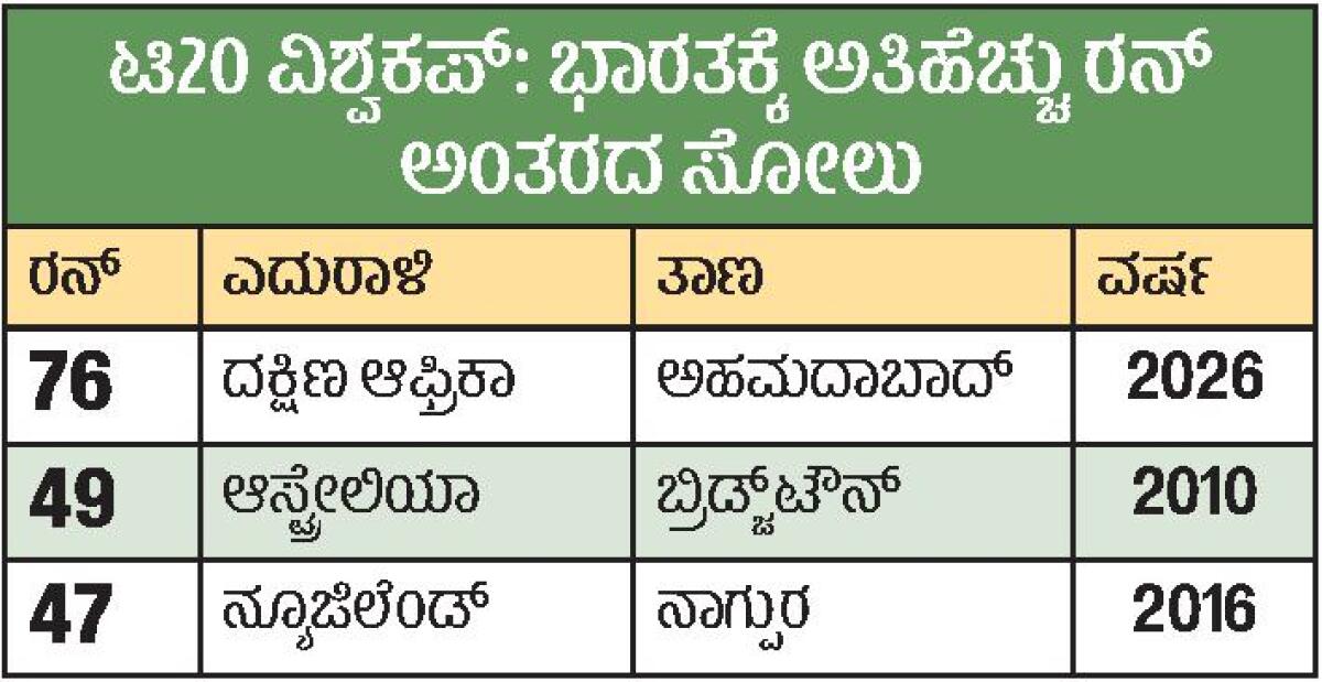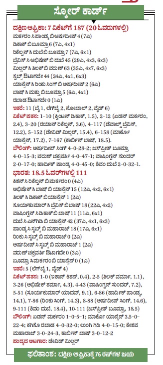 <p><strong>ಅಹಮದಾಬಾದ್ :</strong> ಡೇವಿಡ್ ಮಿಲ್ಲರ್ ಆಕರ್ಷಕ ಅರ್ಧಶತಕ ಹೊಡೆದರು. ನಂತರ ದಕ್ಷಿಣ ಆಫ್ರಿಕಾದ ಬೌಲರ್ಗಳ ಶಿಸ್ತುಬದ್ಧ ದಾಳಿಯೆದುರು ಭಾರತ ತಂಡದ ಆಟ ನಡೆಯಲಿಲ್ಲ. ಹರಿಣಗಳ ಪಡೆ ಭಾನುವಾರ ನಡೆದ ಟಿ20 ವಿಶ್ವಕಪ್ ಸೂಪರ್ ಎಂಟರ ಹಂತದ ಪಂದ್ಯದಲ್ಲಿ ಆತಿಥೇಯ ತಂಡವನ್ನು 76 ರನ್ಗಳ ದೊಡ್ಡ ಅಂತರದಿಂದ ಸೋಲಿಸಿತು.</p>.<p>ನರೇಂದ್ರ ಮೋದಿ ಕ್ರೀಡಾಂಗಣದಲ್ಲಿ ಬ್ಯಾಟ್ ಮಾಡಲು ನಿರ್ಧರಿಸಿದ ದಕ್ಷಿಣ ಆಫ್ರಿಕಾ ತಂಡ ಮಿಲ್ಲರ್ (63, 35 ಎಸೆತ) ಮತ್ತು ಯುವ ತಾರೆ ಡೆವಾಲ್ಡ್ ಬ್ರೆವಿಸ್ (45, 29 ಎಸೆತ) ಅವರ ನಡುವಣ 97 ರನ್ಗಳ (ಕೇವಲ 51 ಎಸೆತ) ನಾಲ್ಕನೇ ವಿಕೆಟ್ ಜೊತೆಯಾಟದಿಂದ 7 ವಿಕೆಟ್ಗೆ 187 ರನ್ಗಳ ಸ್ಪರ್ಧಾತ್ಮಕ ಮೊತ್ತ ಕಲೆಹಾಕಿತು. ಭಾರತದ ಅಗ್ರ ಬೌಲರ್ ಜಸ್ಪ್ರೀತ್ ಬೂಮ್ರಾ (4–0–15–3) ಮಾತ್ರ ಪರಿಣಾಮಕಾರಿ ಎನಿಸಿದರು.</p>.<p>ಇದು ಟಿ20 ಅಂತರರಾಷ್ಟ್ರೀಯ ಪಂದ್ಯಗಳಲ್ಲಿ ಭಾರತಕ್ಕೆ ಎದುರಾದ ಎರಡನೇ ಅತಿ ದೊಡ್ಡ (ರನ್ ಅಂತರದಲ್ಲಿ) ಸೋಲು. 2019ರಲ್ಲಿ ನ್ಯೂಜಿಲೆಂಡ್ ವಿರುದ್ಧ ವೆಲಿಂಗ್ಟನ್ನಲ್ಲಿ 80 ರನ್ಗಳಿಂದ ಸೋತಿದ್ದು ಅತಿ ದೊಡ್ಡ ಅಂತರದ ಸೋಲಾಗಿದೆ.</p>.<p>ಭಾರತ ತಂಡ ಒಳ್ಳೆಯ ಆರಂಭವನ್ನೇ ಪಡೆಯಲಿಲ್ಲ. ಮರ್ಕರಂ ನೇತೃತ್ವದ ತಂಡ ಆತಿಥೇಯರನ್ನು 18.5 ಓವರುಗಳಲ್ಲಿ 111 ರನ್ಗಳಿಗೆ ಆಲೌಟ್ ಮಾಡಿತು. ವೇಗದ ಬೌಲರ್ ಮಾರ್ಕೊ ಯಾನ್ಸೆನ್ (22ಕ್ಕೆ4) ಹೆಚ್ಚಿನ ಹಾನಿ ಎಸಗಿದರು. ಭಾರತದ ಯಾವುದೇ ಆಟಗಾರ ಎದುರಾಳಿಗಳ ದಾಳಿಯನ್ನು ವಿಶ್ವಾಸದಿಂದ ಎದುರಿಸಲಿಲ್ಲ. ಸ್ಪಿನ್ನರ್ಗಳಾದ ಕೇಶವ ಮಹಾರಾಜ್ (24ಕ್ಕೆ3) ಮತ್ತು ಕಾರ್ಬಿನ್ ಬಾಷ್ (12ಕ್ಕೆ2) ಅವರೂ ನಿರ್ಣಾಯಕ ಘಟ್ಟದಲ್ಲಿ ವಿಕೆಟ್ಗಳನ್ನು ಪಡೆದರು. ಲುಂಗಿ ಎನ್ಗಿಡಿ ವಿಕೆಟ್ ಪಡೆಯದಿದ್ದರೂ 4 ಓವರುಗಳಲ್ಲಿ ಒಂದೂ ಬೌಂಡರಿ ನೀಡದೇ 15 ರನ್ ಅಷ್ಟೇ ಕೊಟ್ಟರು. ಶಿವಂ ದುಬೆ ಭಾರತದ ಪರ ಅತಿ ಹೆಚ್ಚು ರನ್ (42, 37ಎಸೆತ) ರನ್ ಗಳಿಸಿದರು.</p>.<p>ದಿಟ್ಟ ನಡೆಯಲ್ಲಿ, ಸಾಂದರ್ಭಿಕ ಆಫ್ ಸ್ಪಿನ್ನರ್ ಏಡನ್ ಮರ್ಕರಂ (5ಕ್ಕೆ1) ದಾಳಿ ಆರಂಭಿಸಿ, ಲಯದಲ್ಲಿರುವ ಆರಂಭ ಆಟಗಾರ ಇಶಾನ್ ಕಿಶನ್ ಅವರ ವಿಕೆಟ್ ಪಡೆದರು. ಇಶಾನ್ ಖಾತೆಯನ್ನೇ ತೆರೆಯಲಿಲ್ಲ. ‘ಸ್ಟಾರ್ ಆಟಗಾರ’ ಅಭಿಷೇಕ್ ಶರ್ಮಾ (15, 12 ಎಸೆತ) ಅವರ ಸೊನ್ನೆಯ ಸರಮಾಲೆ ಕೊನೆಗೊಂಡರೂ ಅದರಿಂದ ಹೆಚ್ಚಿನ ಲಾಭವಾಗಲಿಲ್ಲ. ಅಭಿಷೇಕ್ ಮತ್ತು ತಿಲಕ್ ವರ್ಮಾ ಅವರ ವಿಕೆಟ್ಗಳನ್ನು ಪಡೆದ ಮಾರ್ಕೊ ಯಾನ್ಸೆನ್ ಪವರ್ಪ್ಲೇ (26ಕ್ಕೆ3) ಅವಧಿಯಲ್ಲೇ ಬಲವಾದ ಪೆಟ್ಟು ನೀಡಿದರು. ಭಾರತ ಇದರಿಂದ ಚೇತರಿಸಲೇ ಇಲ್ಲ.</p>.<p>ಇದಕ್ಕೆ ಮೊದಲು, ದಕ್ಷಿಣ ಆಫ್ರಿಕಾ ತಂಡಕ್ಕೆ ಬೂಮ್ರಾ (15ಕ್ಕೆ3) ಆರಂಭದಲ್ಲಿ ಆಘಾತ ನೀಡಿದರು. ಇದರಿಂದಾಗಿ ತಂಡ 20 ರನ್ಗಳಿಗೆ 3 ವಿಕೆಟ್ ಕಳೆದುಕೊಂಡಿತು. ಈ ಹಂತದಲ್ಲಿ ಬ್ರೆವಿಸ್ ಮತ್ತು ಮಿಲ್ಲರ್ ನಾಲ್ಕನೇ ವಿಕೆಟ್ ಜೊತೆಯಾಟದ ಮೂಲಕ ಇನಿಂಗ್ಸ್ ಕಟ್ಟಿದರು. ಕೊನೆಯಲ್ಲಿ ಟ್ರಿಸ್ಟನ್ ಸ್ಟಬ್ಸ್ ಅವರು ಅಜೇಯ 44 ರನ್ (24 ಎಸೆತ) ಗಳಿಸಿ ತಂಡ ಸವಾಲಿನ ಮೊತ್ತ ಪೇರಿಸಲು ನೆರವಾದರು.</p>.<p>ಈ ಹಿನ್ನಡೆಯಿಂದ ಭಾರತ ಮುಂದಿನ ಪಂದ್ಯಗಳಲ್ಲಿ ಜಿಂಬಾಬ್ವೆ ಮತ್ತು ವೆಸ್ಟ್ ಇಂಡೀಸ್ ವಿರುದ್ಧ ಗೆಲ್ಲಲೇಬೇಕಾದ ಒತ್ತಡಕ್ಕೆ ಸಿಲುಕಿದೆ.</p>.<h2>ಸ್ಕೋರ್ ಕಾರ್ಡ್</h2>.<p><strong>ದಕ್ಷಿಣ ಆಫ್ರಿಕಾ</strong>: 7 ವಿಕೆಟ್ಗೆ 187 (20 ಓವರುಗಳಲ್ಲಿ)</p><p>ಮರ್ಕರಂ ಸಿ ಪಾಂಡ್ಯ ಬಿ ಅರ್ಷದೀಪ್ 4 (7ಎ)</p><p>ಡಿಕಾಕ್ ಬಿ ಬೂಮ್ರಾ 6 (7ಎ, 4x1)</p><p>ರಿಕೆಲ್ಟನ್ ಸಿ ದುಬೆ ಬಿ ಬೂಮ್ರಾ 7 (7ಎ, 6x1)</p><p>ಬ್ರೆವಿಸ್ ಸಿ ಅಭಿಷೇಕ್ ಬಿ ದುಬೆ 45 (29ಎ, 4x3, 6x3)</p><p>ಮಿಲ್ಲರ್ ಸಿ ತಿಲಕ್ ಬಿ ವರುಣ್ 63 (3