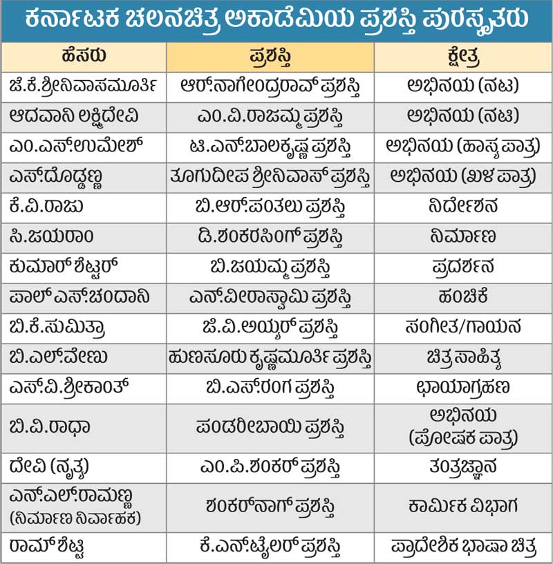 ಕರ್ನಾಟಕ ಚಲನಚಿತ್ರ ಅಕಾಡೆಮಿ ಪ್ರಶಸ್ತಿ ಪ್ರಕಟ