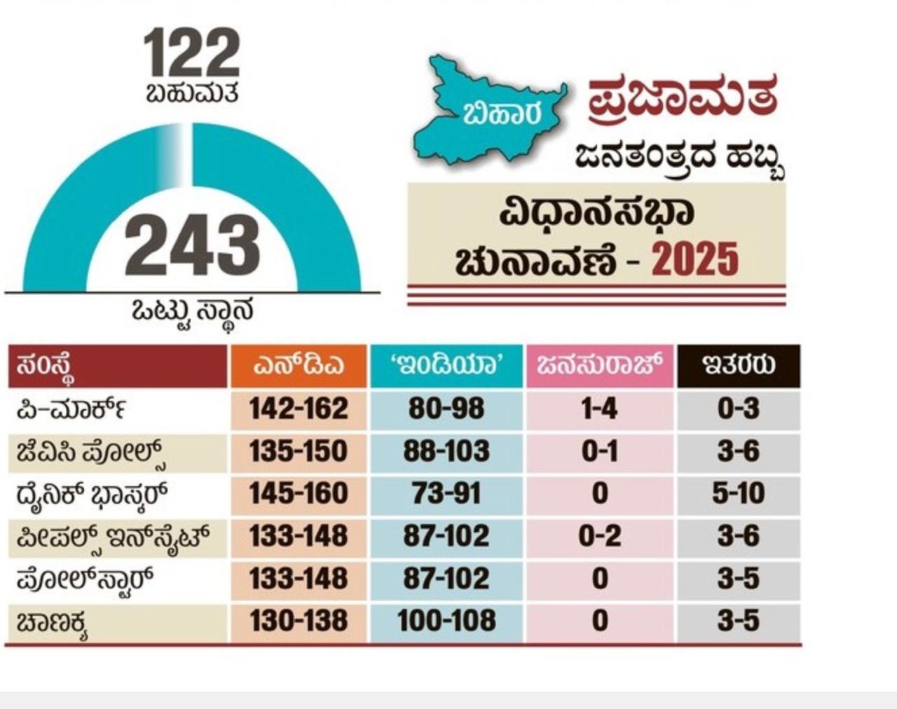 ಬಿಹಾರ ವಿಧಾನಸಭೆ ಚುನಾವಣೆಯ ಫಲಿತಾಂಶ ಪ್ರಕಟಗೊಳ್ಳುತ್ತಿದ್ದು, ಎನ್ಡಿಎ ಮೈತ್ರಿ ಮತ್ತೆ ಅಧಿಕಾರ ಹಿಡಿಯುವುದು ಬಹುತೇಕ ನಿಚ್ಚಳವೆನಿಸಿದೆ. ಬಿಜೆಪಿ-ಜೆಡಿಯು ಸೇರಿದಂತೆ ಎನ್ಡಿಎ ಮೈತ್ರಿಯು ಬಹುಮತಕ್ಕೆ ಬೇಕಾಗಿರುವ ಮ್ಯಾಜಿಕ್ ಸಂಖ್ಯೆಯನ್ನು ದಾಟಿ ಮುನ್ನಡೆಯನ್ನು ಕಾಯ್ದುಕೊಂಡಿದೆ. ಅತ್ತ ಆರ್ಜೆಡಿ-ಕಾಂಗ್ರೆಸ್ ನೇತೃತ್ವದ ಮಹಾಘಟಬಂಧನಕ್ಕೆ ಭಾರಿ ಹಿನ್ನೆಡೆಯಾಗಿದೆ.