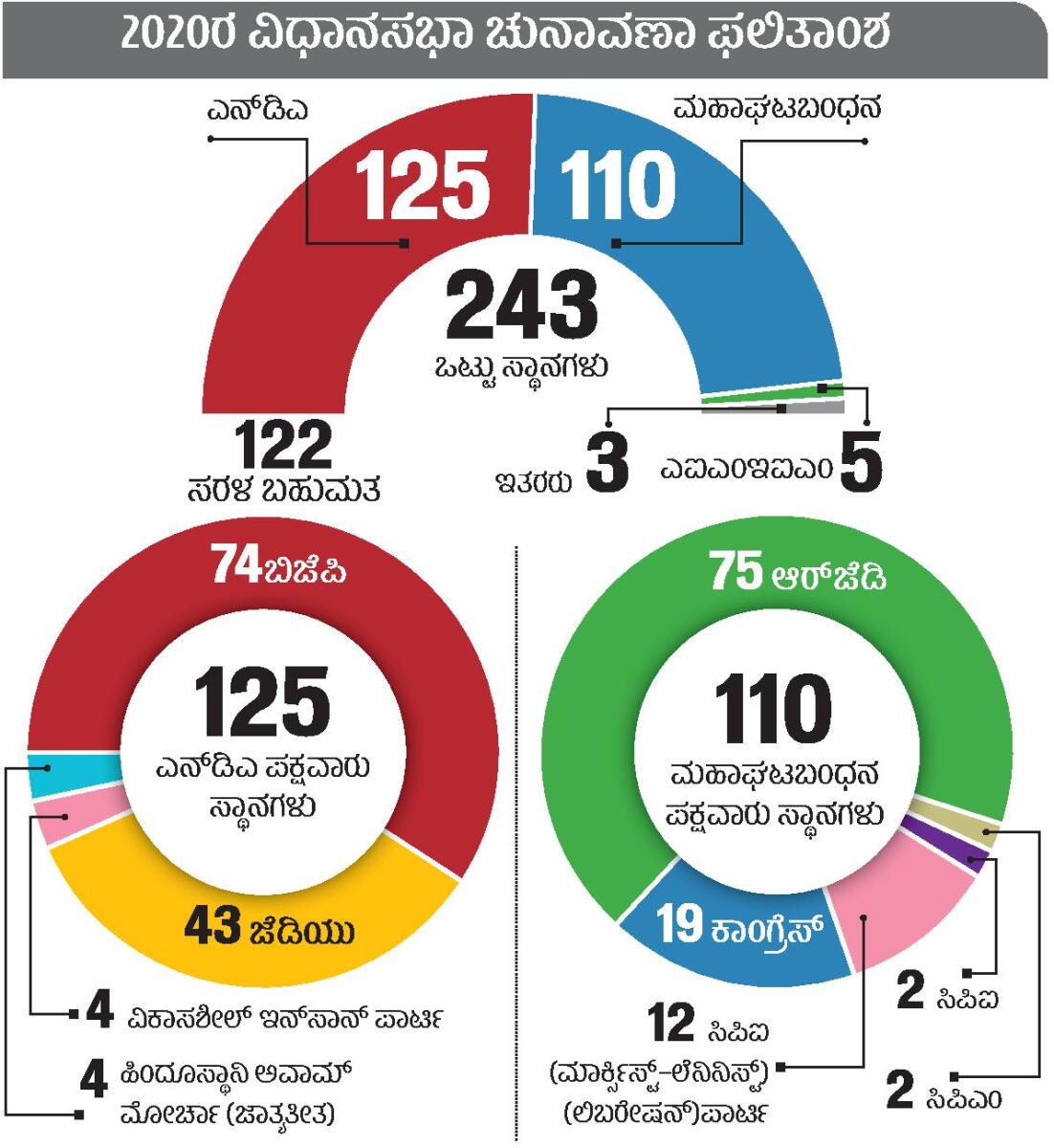 <p>ಪಟ್ನಾ: ಬಿಹಾರ ವಿಧಾನಸಭೆ ಚುನಾವಣೆಯಲ್ಲಿ ಅಭೂತಪೂರ್ವ ಗೆಲುವು ದಾಖಲಿಸುವತ್ತ ಬಿಜೆಪಿ ನೇತೃತ್ವದ ಎನ್ಡಿಎ ದಾಪುಗಾಲಿಟ್ಟಿದೆ. ಸಮೀಕ್ಷೆಗಳ ಲೆಕ್ಕಾಚಾರವನ್ನು ಮೀರಿ ಎನ್ಡಿಎ ಮೈತ್ರಿಕೂಟ 2000ಕ್ಕೂ ಅಧಿಕ ಕ್ಷೇತ್ರಗಳಲ್ಲಿ ಮುನ್ನಡೆ ಕಾಯ್ದುಕೊಳ್ಳುವ ಮೂಲಕ ಪ್ರಚಂಡ ಬಹುಮತ ಗಳಿಸುವತ್ತ ಮುನ್ನಡೆದಿದೆ. ಈ ಬಾರಿ ಎನ್ಡಿಎ ಕೂಟದ ಬಿಜೆಪಿ ಮತ್ತು ನಿತೀಶ್ ಕುಮಾರ್ ಅವರ ಜನತಾದಳ -ಸಂಯುಕ್ತ (ಜೆಡಿಯು) ತಲಾ 101 ಕ್ಷೇತ್ರಗಳಲ್ಲಿ ಸ್ಪರ್ಧಿಸಿದ್ದವು. ಈ ಪೈಕಿ ಬಿಜೆಪಿ 90ಕ್ಕೂ ಹೆಚ್ಚು ಕ್ಷೇತ್ರಗಳಲ್ಲಿ ಮುನ್ನಡೆ ಸಾಧಿಸಿದರೆ, ಜೆಡಿಯು 80ಕ್ಕೂ ಅಧಿಕ ಕ್ಷೇತ್ರಗಳಲ್ಲಿ ಮುನ್ನಡೆಯಲ್ಲಿದೆ.</p><p>29 ಕ್ಷೇತ್ರಗಳಲ್ಲಿ ಸ್ಪರ್ಧಿಸಿದ್ದ ಯುವ ನಾಯಕ ಚಿರಾಗ್ ಪಾಸ್ವಾನ್ ನೇತೃತ್ವದ ಲೋಕಜನಶಕ್ತಿಗೆ (ಎಲ್ಜೆಪಿ) 20ಕ್ಕೂ ಅಧಿಕ ಕ್ಷೇತ್ರಗಳಲ್ಲಿ ಮುನ್ನಡೆ ಪಡೆದಿದೆ. ಇನ್ನೂ, ಮಹಾಘಟಬಂಧನ್ ಕೂಟದ ಪ್ರಮುಖ ಪಕ್ಷ ಆರ್ಜೆಡಿ 143 ಕ್ಷೇತ್ರಗಳಲ್ಲಿ ಸ್ಪರ್ಧಿಸಿ ಕೇವಲ 26 ಕ್ಷೇತ್ರಗಳಲ್ಲಿ, ಕಾಂಗ್ರೆಸ್ 6 ಕ್ಷೇತ್ರಗಳಲ್ಲಿ ಮುನ್ನಡೆಯಲ್ಲಿವೆ. </p>. <p>2020ರ ಬಿಹಾರ ವಿಧಾನಸಭಾ ಚುನಾವಣೆಯಲ್ಲಿ ಎನ್ಡಿಎ ಕೂಟ 125 ಸ್ಥಾನಗಳನ್ನು ಗಳಿಸಿದ್ದರೆ, ಮಹಾಘಟಬಂಧನ ಕೂಟವು 110 ಕ್ಷೇತ್ರಗಳಲ್ಲಿ ಗೆಲುವು ದಾಖಲಿಸಿತ್ತು. ಎನ್ಡಿಎಯಷ್ಟೇ (ಶೇ 37) ಮತಪ್ರಮಾಣವನ್ನೂ ಪಡೆದಿತ್ತು. ಮುಖ್ಯವಾಗಿ, 144 ಕ್ಷೇತ್ರಗಳಲ್ಲಿ ಸ್ಪರ್ಧಿಸಿದ್ದ ರಾಷ್ಟ್ರೀಯ ಜನತಾ ದಳವು (ಆರ್ಜೆಡಿ) 75ರಲ್ಲಿ ಗೆದ್ದು, ಅತಿ ದೊಡ್ಡ ಪಕ್ಷವಾಗಿ ಹೊರಹೊಮ್ಮಿತ್ತು. ಆದರೆ, 70 ಕ್ಷೇತ್ರಗಳಲ್ಲಿ ಸ್ಪರ್ಧಿಸಿದ್ದ ಕಾಂಗ್ರೆಸ್ 19ರಲ್ಲಿ ಮಾತ್ರ ಗೆದ್ದಿತ್ತು. ಅದರಿಂದ ನಿತೀಶ್ ಕುಮಾರ್ ನೇತೃತ್ವದಲ್ಲಿ ಎನ್ಡಿಎ ಮೈತ್ರಿಕೂಟ ಅಧಿಕಾರಕ್ಕೇರಿತ್ತು. </p> . <p>ಬಿಹಾರ ಚುನಾವಣೆಯ ಮತಗಟ್ಟೆ ಸಮೀಕ್ಷೆಗಳು ಎನ್ಡಿಎ ನಿಚ್ಚಳ ಬಹುಮತ ಪಡೆದು ಅಧಿಕಾರಕ್ಕೇರಲಿದೆ ಎಂದು ಭವಿಷ್ಯ ನುಡಿದಿದ್ದವು. ‘ಇಂಡಿಯಾ’ ಕೂಟವು ಬಹುಮತದಿಂದ ದೂರವೇ ಇರಲಿದೆ ಎಂದೂ ಹೇಳಿದ್ದವು. ಎನ್ಡಿಎ ಮೈತ್ರಿಕೂಟ ಗರಿಷ್ಠ 162 ಕ್ಷೇತ್ರಗಳಲ್ಲಿ ಗೆಲ್ಲಬಹುದು ಎಂದು ಹೇಳಿದ್ದವು. ಆದರೆ, ಸಮೀಕ್ಷೆಗಳ ಅಂದಾಜನ್ನೂ ಮೀರಿ ಎನ್ಡಿಎ 200ಕ್ಕೂ ಅಧಿಕ ಸ್ಥಾನಗಳಲ್ಲಿ ಮುನ್ನಡೆ ಸಾಧಿಸುವ ಮೂಲಕ ಬಿಹಾರದಲ್ಲಿ ಇತಿಹಾಸ ಬರೆದಿದೆ. </p> .<p>ಬಿಹಾರದಲ್ಲಿ 1995ರಿಂದ ಯಾವುದೇ ಪಕ್ಷ ಬಹುಮತ ಪಡೆದೇ ಇಲ್ಲ. ಎರಡು ದಶಕಗಳಿಂದ ಯಾವುದೇ ಪಕ್ಷ ಶೇ 25ರಷ್ಟು ಮತಗಳಿಸಿಲ್ಲ. ಮೈತ್ರಿ ರಾಜಕಾರಣದ ಹಲವು ಪಲ್ಲಟಗಳಿಗೆ ಬಿಹಾರದ ಚುನಾವಣೆ ಸಾಕ್ಷಿಯಾಗಿದ್ದು, ಅದರ ಫಲಿತಾಂಶವು ಮುಂದಿನ ದಿನಗಳಲ್ಲಿ ದೇಶದ ರಾಜಕಾರಣದಲ್ಲಿ ದಿಕ್ಸೂಚಿಯಾಗಲಿದೆ ಎಂದು ವಿಶ್ಲೇಷಿಸಲಾಗುತ್ತಿದೆ.</p> .<div><p><strong>ಪ್ರಜಾವಾಣಿ ಆ್ಯಪ್ ಇಲ್ಲಿದೆ: <a href="https://play.google.com/store/apps/details?id=com.tpml.pv">ಆಂಡ್ರಾಯ್ಡ್ </a>| <a href="https://apps.apple.com/in/app/prajavani-kannada-news-app/id1535764933">ಐಒಎಸ್</a> | <a href="https://whatsapp.com/channel/0029Va94OfB1dAw2Z4q5mK40">ವಾಟ್ಸ್ಆ್ಯಪ್</a>, <a href="https://www.twitter.com/prajavani">ಎಕ್ಸ್</a>, <a href="https://www.fb.com/prajavani.net">ಫೇಸ್ಬುಕ್</a> ಮತ್ತು <a href="https://www.instagram.com/prajavani">ಇನ್ಸ್ಟಾಗ್ರಾಂ</a>ನಲ್ಲಿ ಪ್ರಜಾವಾಣಿ ಫಾಲೋ ಮಾಡಿ.</strong></p></div>