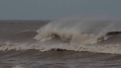 ಚಂಡಮಾರುತದ ಪ್ರಭಾವ- ಬಿರುಸಿನಿಂದ ಅಪ್ಪಳಿಸುತ್ತಿರುವ ಸಮುದ್ರದ ಅಲೆಗಳು.
