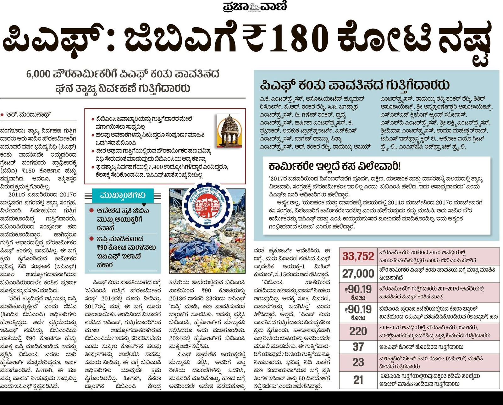 <p><strong>ಬೆಂಗಳೂರು</strong>: ‘ತ್ಯಾಜ್ಯ ನಿರ್ವಹಣೆ ಗುತ್ತಿಗೆದಾರರು ಆರು ಸಾವಿರ ಪೌರಕಾರ್ಮಿಕರ ಐದೂವರೆ ವರ್ಷದ ಭವಿಷ್ಯ ನಿಧಿ (ಪಿಎಫ್) ಪಾವತಿಸದೇ ಇರುವ ಹಿನ್ನೆಲೆಯಲ್ಲಿ ಕ್ರಮ ಕೈಗೊಳ್ಳುವಂತೆ ಸಲ್ಲಿಸಲಾಗಿರುವ ಮನವಿಯನ್ನು 60 ದಿನಗಳ ಒಳಗಾಗಿ ಸಕಾರಾತ್ಮಕವಾಗಿ ಪರಿಶೀಲಿಸಿ ಸೂಕ್ತ ನಿರ್ಧಾರ ಕೈಗೊಳ್ಳಬೇಕು’ ಎಂದು ಹೈಕೋರ್ಟ್ ರಾಜ್ಯ ಸರ್ಕಾರಕ್ಕೆ ಆದೇಶಿಸಿದೆ.</p><p>ಈ ಕುರಿತಂತೆ, ‘ಬೆಂಗಳೂರು ಮಹಾನಗರ ಸ್ವಚ್ಛತಾ ಮತ್ತು ಲಾರಿ ಮಾಲಿಕರ ಹಾಗೂ ಗುತ್ತಿಗೆದಾರರ ಸಂಘ’ದ ಪ್ರಧಾನ ಕಾರ್ಯದರ್ಶಿ ಎಸ್.ಎನ್.ಬಾಲಸುಬ್ರಮಣಿಯಂ ಸಲ್ಲಿಸಿದ್ದ ರಿಟ್ ಅರ್ಜಿ ವಿಚಾರಣೆ ನಡೆಸಿದ ನ್ಯಾಯಮೂರ್ತಿ ಸೂರಜ್ ಗೋವಿಂದರಾಜ್ ಅವರಿದ್ದ ಏಕಸದಸ್ಯ ನ್ಯಾಯಪೀಠ ಮಂಗಳವಾರ ಆದೇಶಿಸಿದೆ.</p><p>ವಿಚಾರಣೆ ವೇಳೆ ಅರ್ಜಿದಾರರ ಪರ ಹೈಕೋರ್ಟ್ ವಕೀಲ ಪಿ.ಪ್ರಸನ್ನ ಕುಮಾರ್ ಮಂಡಿಸಿದ ವಾದವನ್ನು ಮಾಡಿದ ನ್ಯಾಯಪೀಠ, ‘ಅರ್ಜಿದಾರರು ತಮಗೆ 2025ರ ನವೆಂಬರ್ 12ರಂದು ಸಲ್ಲಿಸಿರುವ ಮನವಿಯನ್ನು ಧನಾತ್ಮಕ ದೃಷ್ಟಿಕೋನದಲ್ಲಿ ಪರಾಮರ್ಶಿಸಬೇಕು’ ಎಂದು ನಗರಾಭಿವೃದ್ಧಿ ಇಲಾಖೆ ಕಾರ್ಯದರ್ಶಿಗೆ ಆದೇಶಿಸಿದೆ.</p><p><strong>ಪ್ರಜಾವಾಣಿಯಲ್ಲಿ ವರದಿ:</strong> ‘ಪಿಎಫ್: ಜಿಬಿಎಗೆ ₹180 ಕೋಟಿ ನಷ್ಟ’ ಶೀರ್ಷಿಕೆಯಡಿ ‘ಪ್ರಜಾವಾಣಿ’ಯಲ್ಲಿ ನವೆಂಬರ್ 11ರಂದು ವಿಶೇಷ ವರದಿ ಪ್ರಕಟವಾಗಿತ್ತು. 2011ರ ಜನವರಿಯಿಂದ 2017ರ ಜುಲೈವರೆಗೆ ನಗರದಲ್ಲಿ ತ್ಯಾಜ್ಯ ಸಂಗ್ರಹ, ವಿಲೇವಾರಿ, ನಿರ್ವಹಣೆಯ ಗುತ್ತಿಗೆ ಪಡೆದುಕೊಂಡಿದ್ದ ಗುತ್ತಿಗೆದಾರರು, ಬಿಬಿಎಂಪಿಯಿಂದ ಸಂಪೂರ್ಣ ಹಣ ಪಡೆದುಕೊಂಡಿದ್ದಾರೆ. ಹಾಗಿದ್ದರೂ ಗುತ್ತಿಗೆ ಆಧಾರದಲ್ಲಿದ್ದ ಪೌರಕಾರ್ಮಿಕರ ಪಿಎಫ್ ಕಂತನ್ನು ಪಾವತಿಸಿಲ್ಲ. ಈ ಬಗ್ಗೆ ಕ್ರಮ ಕೈಗೊಂಡಿರುವ ಕಾರ್ಮಿಕರ ಭವಿಷ್ಯ ನಿಧಿ ಸಂಘಟನೆ (ಇಪಿಎಫ್) ಮೂಲ ಉದ್ಯೋಗದಾತನಾಗಿರುವ ಬಿಬಿಎಂಪಿಯಿಂದಲೇ ಕಂತಿನ ಪೂರ್ಣ ಮೊತ್ತವನ್ನು ವಸೂಲಿ ಮಾಡಿದೆ.</p><p>ಬಿಬಿಎಂಪಿಯ ಖಾತೆಯಲ್ಲಿ ₹90 ಕೋಟಿಗೂ ಹೆಚ್ಚು ಮೊತ್ತ ಜಪ್ತಿ ಇಪಿಎಫ್ ಮಾಡಿಕೊಂಡಿದೆ. ₹90 ಕೋಟಿಯನ್ನು ಬಿಬಿಎಂಪಿ ತ್ಯಾಜ್ಯ ಗುತ್ತಿಗೆದಾರರಿಗೆ ಪಾವತಿಸಿತ್ತು. ಹೀಗಾಗಿ, ₹180 ಕೋಟಿ ಬಿಬಿಎಂಪಿಗೆ (ಜಿಬಿಎ) ನಷ್ಟವಾಗಿದೆ ಎಂಬ ಸವಿವರ ವರದಿ ಪ್ರಕಟವಾಗಿತ್ತು.</p>.<p>‘ಪಿಎಫ್ ಪಾವತಿಸದೆ ಕಾನೂನು ಉಲ್ಲಂಘಿಸಿ, ಪೌರ ಕಾರ್ಮಿಕರ ಸಾಮಾಜಿಕ ಭದ್ರತೆಗೆ ಅಡ್ಡಿಯಾಗಿರುವ ‘ಡಿಫಾಲ್ಟ್ ಗುತ್ತಿಗೆದಾರರ’ ಮೇಲೆ ಕ್ರಿಮಿನಲ್ ಪ್ರಕರಣ ದಾಖಲಿಸಬೇಕು ಎಂದು ಕಸ ವಿಲೇವಾರಿ ಗುತ್ತಿಗೆದಾರರನ್ನು ಮಾಫಿಯಾ ಎನ್ನುವ ಉಪ ಮುಖ್ಯಮಂತ್ರಿ ಡಿ.ಕೆ. ಶಿವಕುಮಾರ್ ಹಾಗೂ ಮುಖ್ಯಮಂತ್ರಿ, ಜಿಬಿಎ ಮುಖ್ಯ ಆಯುಕ್ತರು, ಬಿಎಸ್ಡಬ್ಲ್ಯುಎಂಎಲ್ ಸಿಇಒ ಅವರಿಗೆ ಪತ್ರ ಬರೆದಿದ್ದರೂ ಅವರು ಕ್ರಮ ಕೈಗೊಂಡಿಲ್ಲ’ ಎಂದು ಬೆಂಗಳೂರು ನಗರ ಸ್ವಚ್ಛತೆ ಮತ್ತು ಲಾರಿ ಮಾಲೀಕರು–ಗುತ್ತಿಗೆದಾರರ ಸಂಘದ ಪ್ರಧಾನ ಕಾರ್ಯದರ್ಶಿ ಎಸ್.ಎನ್. ಬಾಲಸುಬ್ರಮಣಿಯಂ ಹೇಳಿದ್ದರು.</p><p>ಪಿಎಫ್ ಪಾವತಿಸದೆ ಡಿಫಾಲ್ಟ್ ಆಗಿರುವ ಗುತ್ತಿಗೆದಾರರು 33 ಪ್ಯಾಕೇಜ್ನ ತ್ಯಾಜ್ಯ ವಿಲೇವಾರಿಯ ಟೆಂಡರ್ನಲ್ಲಿರುವುದರಿಂದ ಪ್ರಕ್ರಿಯೆ ಪೂರ್ಣಗೊಳಿಸುವುದನ್ನು ಬಿಎಸ್ಡಬ್ಲ್ಯುಎಂಎಲ್ ವಿಳಂಬಗೊಳಿಸಿದೆ.</p>.<div><p><strong>ಪ್ರಜಾವಾಣಿ ಆ್ಯಪ್ ಇಲ್ಲಿದೆ: <a href="https://play.google.com/store/apps/details?id=com.tpml.pv">ಆಂಡ್ರಾಯ್ಡ್ </a>| <a href="https://apps.apple.com/in/app/prajavani-kannada-news-app/id1535764933">ಐಒಎಸ್</a> | <a href="https://whatsapp.com/channel/0029Va94OfB1dAw2Z4q5mK40">ವಾಟ್ಸ್ಆ್ಯಪ್</a>, <a href="https://www.twitter.c