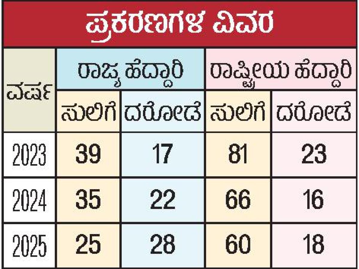 <p><strong>ಬೆಂಗಳೂರು</strong>: ರಾಜ್ಯ, ರಾಷ್ಟ್ರೀಯ ಹೆದ್ದಾರಿಗಳಲ್ಲಿ ಸಕ್ರಿಯವಾಗಿರುವ ದರೋಡೆ ಹಾಗೂ ಸುಲಿಗೆ ತಂಡಗಳು ನೂರಾರು ಪ್ರಯಾಣಿಕರಿಂದ ಹಣ, ಚಿನ್ನಾಭರಣ ದೋಚುತ್ತಿವೆ.</p>.<p>ವೇಗವಾಗಿ ಬರುವ ವಾಹನಗಳನ್ನು ಗುರಿಯಾಗಿಸಿ, ಹೆದ್ದಾರಿ ಮಧ್ಯದಲ್ಲಿಯೇ ಕಲ್ಲುಗಳನ್ನು ಜೋಡಿಸಿಟ್ಟು ಅಪಘಾತಕ್ಕೀಡು ಮಾಡಿ ಬೆಲೆಬಾಳುವ ವಸ್ತುಗಳನ್ನು ದೋಚುವ ಘಟನೆಗಳು ನಡೆಯುತ್ತಿವೆ. ಕಳೆದ ಮೂರು ವರ್ಷಗಳಲ್ಲಿ 430 ದರೋಡೆ, ಸುಲಿಗೆ ಪ್ರಕರಣಗಳು ನಡೆದಿವೆ.</p>.<p>ಸುಲಿಗೆಕೋರರು ವಾಹನಗಳನ್ನು ಅಪಘಾತಕ್ಕೀಡು ಮಾಡುತ್ತಾರೆ. ಇಲ್ಲವೇ ರಾತ್ರಿ ವೇಳೆ ಹೆದ್ದಾರಿಗಳ ಆಯ್ದ ಕಡೆಗಳಲ್ಲಿ ಮೊಳೆಗಳನ್ನು ಎಸೆದು ವಾಹನಗಳ ಚಕ್ರ ಪಂಕ್ಚರ್ ಮಾಡಿಸಿ ಕೃತ್ಯ ಎಸಗುತ್ತಿದ್ದಾರೆ.</p>.<p>ವಾಹನಗಳ ಡ್ಯಾಶ್ ಬೋರ್ಡ್ ಕ್ಯಾಮೆರಾದಲ್ಲಿ ಕೃತ್ಯಗಳು ಸೆರೆಯಾಗುತ್ತಿವೆ. ಈ ದೃಶ್ಯಾವಳಿ ಆಧರಿಸಿ ಪೊಲೀಸರು ತನಿಖೆ ನಡೆಸುತ್ತಿದ್ದರೂ ಕೃತ್ಯ ಎಸಗಿದವರ ಸುಳಿವು ದೊರೆಯುತ್ತಿಲ್ಲ. </p>.<p>‘ಹೆದ್ದಾರಿಗಳಲ್ಲಿ ಕಳೆದ ಮೂರು ವರ್ಷಗಳಲ್ಲಿ ಹೆಚ್ಚು ಪ್ರಕರಣಗಳು ನಡೆದಿವೆ. ಬಹುತೇಕ ಪ್ರಕರಣಗಳಲ್ಲಿ ಆರೋಪಿಗಳ ಬಂಧನ ಸಾಧ್ಯವಾಗಿಲ್ಲ’ ಎಂದು ಪೊಲೀಸ್ ಮೂಲಗಳು ತಿಳಿಸಿವೆ.</p>.<p>ಹೆದ್ದಾರಿ ಬದಿಯಲ್ಲಿಯೇ ಹೊಂಚು: ಬೆಂಗಳೂರು–ಚೆನ್ನೈ ‘ಎಕ್ಸ್ಪ್ರೆಸ್ ವೇ’ನಲ್ಲಿ ದರೋಡೆಕೋರರು ಹೆಚ್ಚು ಸಕ್ರಿಯ ಆಗಿದ್ದಾರೆ ಎಂದು ವಾಹನ ಚಾಲಕರು, ಪ್ರಯಾಣಿಕರು ಆತಂಕ ವ್ಯಕ್ತಪಡಿಸಿದ್ದಾರೆ. ದರೋಡೆಕೋರರನ್ನು ಪತ್ತೆಹಚ್ಚಿ ಅವರ ವಿರುದ್ಧ ಕ್ರಮ ತೆಗೆದುಕೊಳ್ಳುವಂತೆ ವಕೀಲ ಹುಸೇನ್ ಅವರು ರಾಜ್ಯ ಪೊಲೀಸ್ ಮಹಾನಿರ್ದೇಶಕರಿಗೆ ಮನವಿ ಸಲ್ಲಿಸಿದ್ದರು. ಆದರೂ, ಹೆದ್ದಾರಿಗಳಲ್ಲಿ ರಾತ್ರಿ ವೇಳೆ ದುಷ್ಕರ್ಮಿಗಳು ನಿರಾತಂಕವಾಗಿ ಕೃತ್ಯ ಎಸಗುತ್ತಿದ್ದಾರೆ ಎಂಬ ಆರೋಪವಿದೆ.</p>.<p>ಹಾವೇರಿ–ಮೊಳಕಾಲ್ಮುರು, ಬಂಗಾರಪೇಟೆ–ಬಾಗೇಪಲ್ಲಿ, ದೇವಸಗೂರು–ರಾಯಚೂರು–ಕಟಗೋಡು, ತುಮಕೂರು –ಶಿವಮೊಗ್ಗ–ಹೊನ್ನಾವರದ ನಡುವೆ ಹಾದು ಹೋಗಿರುವ ರಾಜ್ಯ ಹೆದ್ದಾರಿಯಲ್ಲಿ ದರೋಡೆಕೋರರ ತಂಡಗಳು ಹೆಚ್ಚಾಗಿ ಕೃತ್ಯ ಎಸಗಿವೆ ಎಂದು ಮೂಲಗಳು ಹೇಳಿವೆ.</p>.<p>ಬೆಂಗಳೂರು–ಪುಣೆ, ಬೆಂಗಳೂರು–ಹಾಸನ –ಮಂಗಳೂರು, ಬೆಂಗಳೂರು–ಮೈಸೂರು ಎಕ್ಸ್ಪ್ರೆಸ್ ವೇ, ಮಂಗಳೂರು– ಉಡುಪಿ–ಕಾರವಾರ, ಕುಣಿಗಲ್–ಮೈಸೂರು, ರಾಮನಗರ–ಕನಕಪುರ ಮಾರ್ಗವಾಗಿ ತಮಿಳುನಾಡಿನ ಕೊಯಮತ್ತೂರು ಸಂಪರ್ಕಿಸುವ ರಾಷ್ಟ್ರೀಯ ಹೆದ್ದಾರಿಗಳಲ್ಲೂ ಚಾಲಕರು ಹಾಗೂ ಪ್ರಯಾಣಿಕರಿಂದ ಹಣ ದೋಚಲಾಗುತ್ತಿದೆ. ಬೇರೆ ಸ್ಥಳಗಳಲ್ಲಿ ನಡೆಯುವ ಶುಭ ಸಮಾರಂಭಗಳಿಗೆ ವಾಹನಗಳಲ್ಲಿ ತೆರಳುತ್ತಿದ್ದವರು ಆಭರಣ ಕಳೆದುಕೊಳ್ಳುತ್ತಿದ್ದಾರೆ. ಹಲ್ಲೆಗೂ ಒಳಗಾಗಿದ್ದಾರೆ. </p>.<p>‘ಬೆಂಗಳೂರು–ಚೆನ್ನೈ ‘ಎಕ್ಸ್ಪ್ರೆಸ್ ವೇ’ನ ಕೆಜಿಎಫ್ ಬಳಿ ಕಲ್ಲು, ಕಬ್ಬಿಣದ ರಾಡುಗಳನ್ನಿಟ್ಟು ದುಷ್ಕರ್ಮಿಗಳು ಅಪಘಾತ ಮಾಡುತ್ತಾರೆ. ಬಳಿಕ, ದರೋಡೆ ನಡೆಸುತ್ತಾರೆ. ಅಪಘಾತದಿಂದ ಚಾಲಕರು ಹಾಗೂ ಪ್ರಯಾಣಿಕರು ಗಂಭೀರವಾಗಿ ಗಾಯಗೊಳ್ಳುತ್ತಿದ್ದಾರೆ. ಹೆದ್ದಾರಿಗಳಲ್ಲಿ ತಕ್ಷಣಕ್ಕೆ ಯಾರೂ ನೆರವಿಗೂ ಬರುವುದಿಲ್ಲ’ ಎಂದು ಹುಸೇನ್ ಆತಂಕ ವ್ಯಕ್ತಪಡಿಸಿದ್ದಾರೆ.</p>.<p>ಹೆದ್ದಾರಿಗಳಲ್ಲಿ ಸಂಶಯಾಸ್ಪದ ವ್ಯಕ್ತಿಗಳು, ವಾಹನಗಳನ್ನು ತಡೆದು ತಪಾಸಣೆ ಮಾಡುವ ವ್ಯವಸ್ಥೆ ಇಲ್ಲ. ವಿದ್ಯುತ್ ದೀಪಗಳನ್ನು ಹೆದ್ದಾರಿ ಪ್ರಾಧಿಕಾರದವರು ಸಮರ್ಪಕವಾಗಿ ನಿರ್ವಹಣೆ ಮಾಡುತ್ತಿಲ್ಲ ಎಂದು ಚಾಲಕ ಮಹೇಶ್ ಆರೋಪಿಸಿದರು.