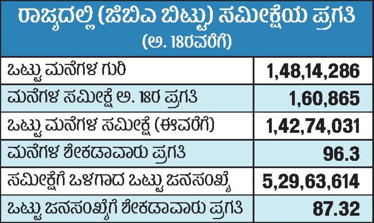 <p><strong>ಬೆಂಗಳೂರು:</strong> ರಾಜ್ಯದಲ್ಲಿ ಹಿಂದುಳಿದ ವರ್ಗಗಳ ಆಯೋಗ ವತಿಯಿಂದ ನಡೆಯುತ್ತಿರುವ ಸಾಮಾಜಿಕ ಮತ್ತು ಶೈಕ್ಷಣಿಕ ಸಮೀಕ್ಷೆಗೆ (ಜಾತಿವಾರು ಸಮೀಕ್ಷೆ) ನಿಯೋಜನೆಗೊಂಡಿರುವ ಶಿಕ್ಷಕರು ಭಾನುವಾರ (ಅ.19) ಸಂಜೆಯವರೆಗೆ ಕಾರ್ಯನಿರ್ವಹಿಸಲಿದ್ದಾರೆ. ಆ ಬಳಿಕ ಅವರು ಸಮೀಕ್ಷಾ ಕಾರ್ಯದಿಂದ ಮುಕ್ತರಾಗಲಿದ್ದಾರೆ.</p>.<p>‘ಸಮೀಕ್ಷೆ ಕಾರ್ಯ ಇದೇ 30ರವರೆಗೆ ಮುಂದುವರಿಯಲಿದೆ. ಮನೆ ಮನೆ ಸಮೀಕ್ಷೆಯಲ್ಲಿ ಭಾಗಿ ಆಗದೇ ಇರುವವರು ಆನ್ಲೈನ್ ಮೂಲಕ ಮಾಹಿತಿ ನೀಡಬಹುದು. ಬಾಕಿ ಇರುವ ಸಮೀಕ್ಷಾ ಕಾರ್ಯದ ಅಂತಿಮ ಚಟುವಟಿಕೆಗಳ ಬಗ್ಗೆ ಗ್ರೇಟರ್ ಬೆಂಗಳೂರು ಪ್ರಾಧಿಕಾರ (ಜಿಬಿಎ) ಮತ್ತು ಜಿಲ್ಲಾಧಿಕಾರಿಗಳ ಹಂತದಲ್ಲಿ ಕ್ರಮ ತೆಗೆದುಕೊಳ್ಳಲಾಗುವುದು’ ಎಂದು ಆಯೋಗದ ಸದಸ್ಯ ಕಾರ್ಯದರ್ಶಿ ಕೆ.ಎ. ದಯಾನಂದ ತಿಳಿಸಿದರು.</p>.<p>‘ರಾಜ್ಯದಲ್ಲಿ (ಜಿಬಿಎ ವ್ಯಾಪ್ತಿ ಹೊರತುಪಡಿಸಿ) ಶನಿವಾರದವರೆಗೆ (ಅ. 18) ಶೇ 96.35ರಷ್ಟು ಮನೆಗಳ ಸಮೀಕ್ಷೆ ಸಂಪೂರ್ಣ ಆಗಿದೆ. ಜಿಬಿಎ ವ್ಯಾಪ್ತಿಯಲ್ಲಿ ಶೇ 39.76ರಷ್ಟು ಸಮೀಕ್ಷೆ ಆಗಿದೆ’ ಎಂದೂ ಅವರು ಮಾಹಿತಿ ನೀಡಿದರು.</p>.<p>ಜಿಬಿಎ ವ್ಯಾಪ್ತಿ ಬಿಟ್ಟು ರಾಜ್ಯದಾದ್ಯಂತ ಸೆ. 22ರಂದು ಈ ಸಮೀಕ್ಷೆ ಆರಂಭಗೊಂಡಿತ್ತು. ಅ.7ಕ್ಕೇ ಮುಗಿಯಬೇಕಿತ್ತು. ಆದರೆ, ನಿರೀಕ್ಷಿಸಿದ್ದ ಪ್ರಮಾಣದಲ್ಲಿ ಸಮೀಕ್ಷೆ ನಡೆದಿರಲಿಲ್ಲ. ಸಮೀಕ್ಷೆಯ ಒಟ್ಟು ಸ್ಥಿತಿಗತಿ ಕುರಿತಂತೆ ಅಧಿಕಾರಿಗಳ ಜೊತೆ ಮುಖ್ಯಮಂತ್ರಿ ಸಿದ್ದರಾಮಯ್ಯ ಮತ್ತು ಉಪ ಮುಖ್ಯಮಂತ್ರಿ ಡಿ.ಕೆ. ಶಿವಕುಮಾರ್ ಅವರು ಅ. 7ರಂದು ಸಭೆ ನಡೆಸಿದ್ದರು. ಸಮೀಕ್ಷಕರಾಗಿರುವ ಶಿಕ್ಷಕರಿಗೆ ಅನುಕೂಲ ಕಲ್ಪಿಸುವ ಉದ್ದೇಶದಿಂದ ಸರ್ಕಾರಿ ಮತ್ತು ಅನುದಾನಿತ ಶಾಲೆಗಳಿಗೆ ನೀಡಲಾಗಿದ್ದ ದಸರಾ ರಜೆಯನ್ನು ಅ. 18ರವರೆಗೆ ವಿಸ್ತರಿಸಲಾಗಿತ್ತು. </p>.<p>ಜಿಬಿಎ ವ್ಯಾಪ್ತಿಯಲ್ಲಿ ಚುನಾವಣಾ ಆಯೋಗದ ಕೆಲಸ ಹಾಗೂ ಇತರೆ ತರಬೇತಿಗಳ ಕಾರಣದಿಂದ ಅ. 4ರಂದು ಸಮೀಕ್ಷೆ ಆರಂಭವಾಗಿದೆ. ಈ ವ್ಯಾಪ್ತಿಯಲ್ಲಿ ನರಕ ಚತುರ್ದಶಿ ಒಳಗೆ ಸಮೀಕ್ಷೆ ಮುಗಿಸಲು ಸೂಚಿಸಲಾಗಿದೆ.</p>.<p><strong>‘ಸರ್ಕಾರದ ಪ್ರಾಯೋಜಿತ ಕೃತ್ಯ’</strong></p><p>ಸಾಮಾಜಿಕ ಮತ್ತು ಶೈಕ್ಷಣಿಕ ಸಮೀಕ್ಷೆಯಲ್ಲಿ ಭಾಗವಹಿಸಲು ಇನ್ಫೊಸಿಸ್ ಸಹ ಸಂಸ್ಥಾಪಕ ನಾರಾಯಣ ಮೂರ್ತಿ ಮತ್ತು ರಾಜ್ಯಸಭಾ ಸದಸ್ಯೆ ಸುಧಾ ಮೂರ್ತಿ ಅವರು ನಿರಾಕರಿಸಿ ನೀಡಿರುವ ಸ್ವಯಂ ಘೋಷಣಾ ಪತ್ರ ಬಹಿರಂಗಗೊಂಡಿರುವುದು ‘ಗೌರವಾನ್ವಿತ ವ್ಯಕ್ತಿಗಳ ತೇಜೋವಧೆ ಮಾಡುವ ಸರ್ಕಾರದ ಪ್ರಾಯೋಜಿತ ಕೃತ್ಯ' ಎಂದು ಜೆಡಿಎಸ್ ಆರೋಪಿಸಿದೆ.</p><p>ಈ ಕುರಿತು ‘ಎಕ್ಸ್'ನಲ್ಲಿ ಕಿಡಿಕಾರಿರುವ ಜೆಡಿಎಸ್, ‘ಸಮೀಕ್ಷೆಯಲ್ಲಿ ಭಾಗವಹಿಸುವುದಿಲ್ಲ ಎಂದು ಮೂರ್ತಿ ದಂಪತಿ ನೀಡಿದ್ದ ಸ್ವಯಂ ದೃಢೀಕರಣ ಪತ್ರವನ್ನು ಸಾರ್ವಜನಿಕಗೊಳಿಸಿರುವುದು ಮಾಹಿತಿ ಸೋರಿಕೆಗೆ ಸ್ಪಷ್ಟ ನಿದರ್ಶನ’ ಎಂದು ದೂರಿದೆ.</p>.<div><p><strong>ಪ್ರಜಾವಾಣಿ ಆ್ಯಪ್ ಇಲ್ಲಿದೆ: <a href="https://play.google.com/store/apps/details?id=com.tpml.pv">ಆಂಡ್ರಾಯ್ಡ್ </a>| <a href="https://apps.apple.com/in/app/prajavani-kannada-news-app/id1535764933">ಐಒಎಸ್</a> | <a href="https://whatsapp.com/channel/0029Va94OfB1dAw2Z4q5mK40">ವಾಟ್ಸ್ಆ್ಯಪ್</a>, <a href="https://www.twitter.com/prajavani">ಎಕ್ಸ್</a>, <a href="https://www.fb.com/prajavani.net">ಫೇಸ್ಬುಕ್</a> ಮತ್ತು <a href="https://www.instagram.com/prajavani">ಇನ್ಸ್ಟಾಗ್ರಾಂ</a>ನಲ್ಲಿ ಪ್ರಜಾವಾಣಿ ಫಾಲೋ ಮಾಡಿ.</strong></p></div>