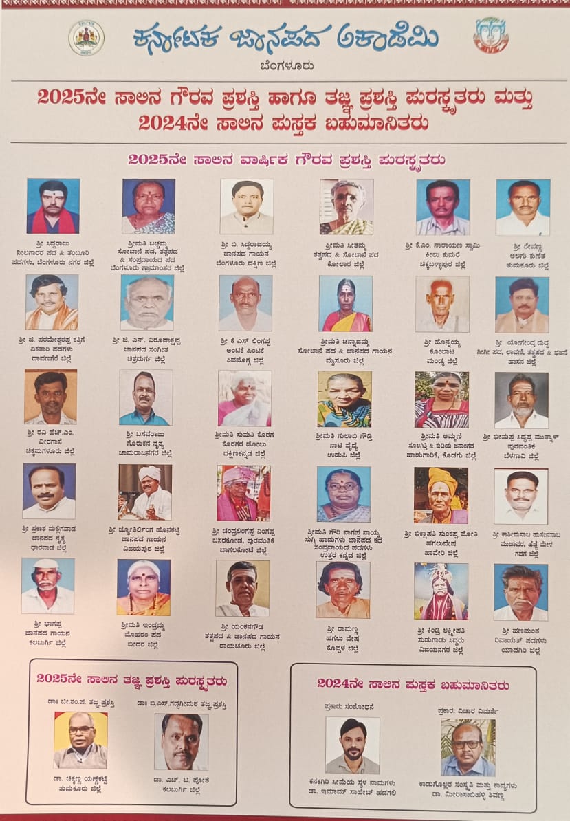ಕರ್ನಾಟಕ ಜಾನಪದ ಅಕಾಡೆಮಿ ವಿವಿಧ ಪ್ರಶಸ್ತಿಗಳು ಪ್ರಕಟ: ಪಟ್ಟಿ ಇಲ್ಲಿದೆ