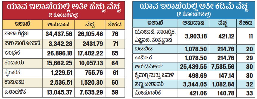 <p><strong>ಬೆಂಗಳೂರು:</strong> ಪ್ರಸಕ್ತ ಸಾಲಿನ ಆಯವ್ಯಯದಲ್ಲಿ ರಾಜ್ಯ ಸರ್ಕಾರ ಒದಗಿಸಿದ ಒಟ್ಟು ಅನುದಾನದಲ್ಲಿ, ವಿವಿಧ ಇಲಾಖೆಗಳು ಏಪ್ರಿಲ್ನಿಂದ ನವೆಂಬರ್ ಅಂತ್ಯದವರೆಗಿನ ಎಂಟು ತಿಂಗಳ ಅವಧಿಯಲ್ಲಿ ಶೇ 50ರಷ್ಟನ್ನು ವೆಚ್ಚ ಮಾಡಿವೆ.</p>.<p>ಬಜೆಟ್ನಲ್ಲಿ 47 ಇಲಾಖೆಗಳಿಗೆ ₹ 4,09,549.24 ಕೋಟಿ ಹಂಚಿಕೆ ಮಾಡಲಾಗಿದೆ. ಸರ್ಕಾರದ ಖಜಾನೆಯ ಲೆಕ್ಕದ ಪ್ರಕಾರ ನ. 30ರವರೆಗೆ ₹ 2,05,831.71 ಕೋಟಿ ಬಳಕೆ ಆಗಿದೆ. </p>.<p>ಈ ಪೈಕಿ, ಶಾಲಾ ಶಿಕ್ಷಣ ಮತ್ತು ಸಾಕ್ಷರತಾ ಇಲಾಖೆ, ಪಶು ಸಂಗೋಪನೆ, ಇಂಧನ, ಕಂದಾಯ, ಕೈಗಾರಿಕೆ, ಕಾನೂನು, ನ್ಯಾಯ ಮತ್ತು ಮಾನವ ಹಕ್ಕುಗಳ ಇಲಾಖೆಯು ತಮ್ಮ ಪಾಲಿನ ಅನುದಾನದಲ್ಲಿ ಶೇ 60ಕ್ಕೂ ಹೆಚ್ಚು ಮೊತ್ತವನ್ನು ಬಳಕೆ ಮಾಡಿವೆ.</p>.<p>ಯೋಜನೆ, ಸಾಂಖ್ಯಿಕ, ವಿಜ್ಞಾನ, ತಂತ್ರಜ್ಞಾನ, ಮಾಹಿತಿ ತಂತ್ರಜ್ಞಾನ ಮತ್ತು ಜೈವಿಕ ತಂತ್ರಜ್ಞಾನ, ಕಾರ್ಮಿಕ, ಗ್ರಾಮೀಣಾಭಿವೃದ್ಧಿ ಮತ್ತು ಪಂಚಾಯತ್ರಾಜ್, ಕೈಮಗ್ಗ ಮತ್ತು ಜವಳಿ, ಸಣ್ಣ ನೀರಾವರಿ, ಮೀನುಗಾರಿಕೆ ಇಲಾಖೆಗಳಿಗೆ ಒದಗಿಸಿದ ಅನುದಾನದಲ್ಲಿ ಶೇ 30ಕ್ಕೂ ಕಡಿಮೆ ಮೊತ್ತವನ್ನು ವೆಚ್ಚ ಮಾಡಿವೆ.</p>.<p>ಆರ್ಥಿಕ ವರ್ಷ ಅಂತ್ಯವಾಗಲು ಇನ್ನೂ ನಾಲ್ಕು ತಿಂಗಳು (ಡಿಸೆಂಬರ್ನಿಂದ ಮಾರ್ಚ್ವರೆಗೆ) ಬಾಕಿ ಉಳಿದಿದೆ. ಉಳಿದಿರುವ ಶೇ 50 ರಷ್ಟು ಅನುದಾನವನ್ನು ಆಡಳಿತ ಇಲಾಖೆಗಳು ಮುಂದಿನ ಅವಧಿಯಲ್ಲಿ ಬಳಸಿಕೊಳ್ಳಲು ಕ್ರಮ ತೆಗೆದುಕೊಳ್ಳಲಿದೆ ಎಂದು ಆರ್ಥಿಕ ಇಲಾಖೆಯನ್ನೂ ನಿಭಾಯಿಸುತ್ತಿರುವ ಮುಖ್ಯಮಂತ್ರಿ ಸಿದ್ದರಾಮಯ್ಯ ತಿಳಿಸಿದ್ದಾರೆ.</p>.<p>2025–26 ನೇ ಸಾಲಿನಲ್ಲಿ ವಿವಿಧ ಇಲಾಖೆಗಳಿಗೆ ನಿಗದಿಪಡಿಸಿದ ಅನುದಾನದಲ್ಲಿ ನ. 30 ರ ಅಂತ್ಯಕ್ಕೆ ಸರಾಸರಿ ಅರ್ಧದಷ್ಟು ವೆಚ್ಚವಾಗಿದೆ. ಆಯವ್ಯಯದಲ್ಲಿ ವಿವಿಧ ಯೋಜನೆಗಳಿಗೆ ಹಂಚಿಕೆ ಮಾಡಿರುವ ಅನುದಾನವನ್ನು ಪ್ರಸಕ್ತ ಸಾಲಿನಲ್ಲಿಯೇ ಬಳಕೆ ಮಾಡುವಂತೆ ಸೂಚನೆ ನೀಡಲಾಗಿದೆ ಎಂದೂ ಅವರು ಹೇಳಿದ್ದಾರೆ.</p>. <p><strong>‘ಗ್ಯಾರಂಟಿ’ಗಳಿಗೆ ₹ 26,334 ಕೋಟಿ ವೆಚ್ಚ</strong></p><p>ರಾಜ್ಯ ತನ್ನ ಮಹತ್ವಾಕಾಂಕ್ಷಿ‘ಪಂಚ ಗ್ಯಾರಂಟಿ ’ಯೋಜನೆಗಳಿಗೆ ಪ್ರಸಕ್ತ ಸಾಲಿನ ಬಜೆಟ್ನಲ್ಲಿ ₹ 51,034 ಕೋಟಿ ಒದಗಿಸಿದೆ. ಅಲ್ಲದೆ, ಕಳೆದ ಆರ್ಥಿಕ ವರ್ಷದಲ್ಲಿ (2024–25) ಗ್ಯಾರಂಟಿ ಯೋಜನೆಗಳಿಗೆ ಹಂಚಿಕೆ ಮಾಡಿದ್ದ ಅನುದಾನದಲ್ಲಿ ವೆಚ್ಚವಾಗದೆ ಉಳಿಕೆಯಾಗಿದ್ದ ₹ 5,521 ಕೋಟಿಯನ್ನು 2025–26ನೇ ಸಾಲಿನಲ್ಲಿ ಪಾವತಿಸಲು ಆರ್ಥಿಕ ಇಲಾಖೆಗೆ ವರ್ಗಾಯಿಸಲಾಗಿದೆ. ಈ ಮೊತ್ತವೂ ಸೇರಿ ಗ್ಯಾರಂಟಿ ಯೋಜನೆಗಳಿಗೆ ಲಭ್ಯವಿದ್ದ ಅನುದಾನದಲ್ಲಿ ಖಜಾನೆಯ ಲೆಕ್ಕದ ಪ್ರಕಾರ ನ. 30ರವರೆಗೆ ₹ 26,334 ಕೋಟಿ ವೆಚ್ಚ ಆಗಿದೆ. ಫಲಾನುಭವಿಗಳ ಸಂಖ್ಯೆಗೆ ಅನುಗುಣವಾಗಿ ಅನುದಾನ ಬಿಡುಗಡೆ ಮಾಡಲಾಗುತ್ತದೆ ಎಂದು ಆರ್ಥಿಕ ಇಲಾಖೆಯ ಮೂಲಗಳು ತಿಳಿಸಿವೆ.</p>.<div><p><strong>ಪ್ರಜಾವಾಣಿ ಆ್ಯಪ್ ಇಲ್ಲಿದೆ: <a href="https://play.google.com/store/apps/details?id=com.tpml.pv">ಆಂಡ್ರಾಯ್ಡ್ </a>| <a href="https://apps.apple.com/in/app/prajavani-kannada-news-app/id1535764933">ಐಒಎಸ್</a> | <a href="https://whatsapp.com/channel/0029Va94OfB1dAw2Z4q5mK40">ವಾಟ್ಸ್ಆ್ಯಪ್</a>, <a href="https://www.twitter.com/prajavani">ಎಕ್ಸ್</a>, <a href="https://www.fb.com/prajavani.net">ಫೇಸ್ಬುಕ್</a> ಮತ್ತು <a href="https://www.instagram.com/prajavani">ಇನ್ಸ್ಟಾಗ್ರಾಂ</a>ನಲ್ಲಿ ಪ್ರಜಾವಾಣಿ ಫಾಲೋ ಮಾಡಿ.</strong></p></div>