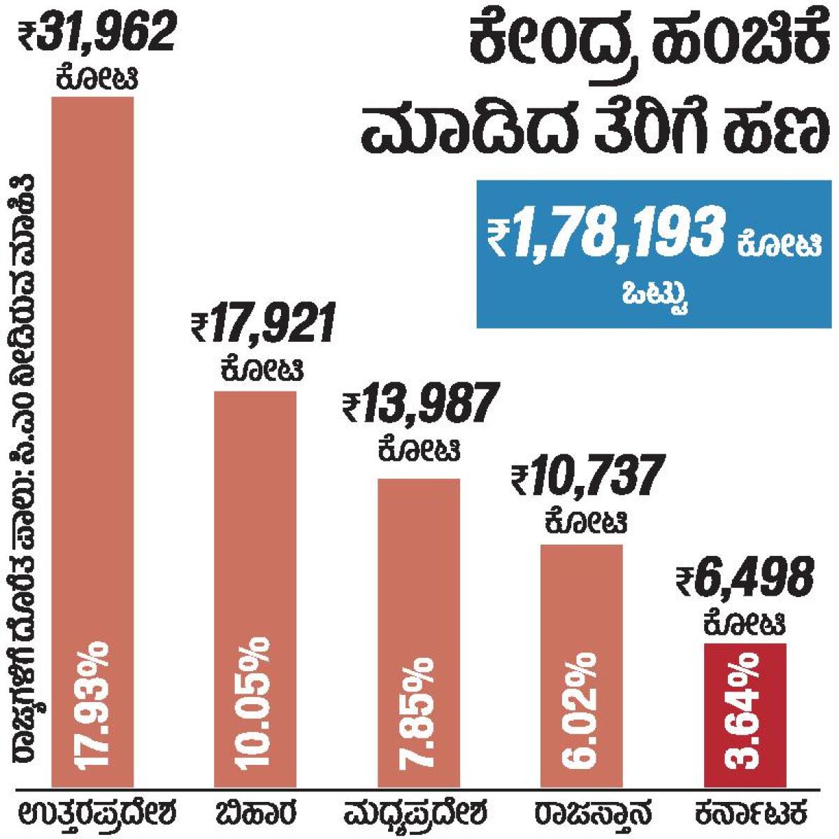 ಕೇಂದ್ರದ @BJP4India ಸರ್ಕಾರ ಕರ್ನಾಟಕ ರಾಜ್ಯಕ್ಕೆ ತೆರಿಗೆ ಹಂಚಿಕೆಯಲ್ಲಿ ಮಾಡುತ್ತಾ ಬಂದಿರುವ ಅನ್ಯಾಯಕ್ಕೆ ಇತ್ತೀಚಿನ ತೆರಿಗೆ ಪಾಲಿನ ಹಂಚಿಕೆಯ ವಿವರಗಳೇ ಸಾಕ್ಷಿ. 28 ರಾಜ್ಯಗಳಿಗೆ ಒಟ್ಟು 1,78,193 ಕೋಟಿ ರೂಪಾಯಿ… pic.twitter.com/kNC8yCByl3
