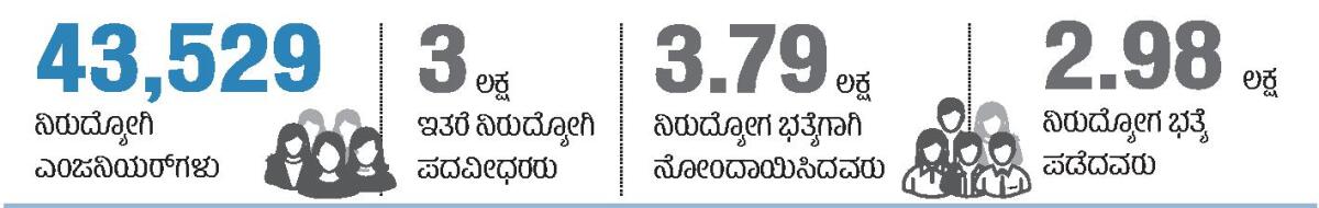 <p><strong>ಬೆಂಗಳೂರು</strong>: ನಿರುದ್ಯೋಗಿ ಎಂಜಿನಿಯರ್ಗಳ ಸಂಖ್ಯೆಯಲ್ಲಿ ಭಾರಿ ಏರಿಕೆಯಾಗಿದ್ದು, 43 ಸಾವಿರ ತಾಂತ್ರಿಕ ಪದವೀಧರರಿಗೆ ಖಾಸಗಿ ಕಂಪನಿ, ಸರ್ಕಾರದ ಇಲಾಖೆಗಳಲ್ಲಿ ಕೆಲಸ ಸಿಕ್ಕಿಲ್ಲ.</p>.<p>ಪದವಿ, ಡಿಪ್ಲೊಮಾ ಪೂರೈಸಿದರೂ ಕೆಲಸ ಸಿಗದ 3.79 ಲಕ್ಷ ಮಂದಿ ರಾಜ್ಯ ಸರ್ಕಾರದ ಗ್ಯಾರಂಟಿ ಯೋಜನೆಗಳಲ್ಲಿ ಒಂದಾದ ಯುವನಿಧಿ ನೆರವಿಗೆ ಅರ್ಜಿ ಸಲ್ಲಿಸಿದ್ದಾರೆ. ಅವರಲ್ಲಿ 43,529 ಎಂಜಿನಿಯರಿಂಗ್, 4,250 ಡಿಪ್ಲೊಮಾ ಪೂರೈಸಿದವರು. ಅಂದರೆ, ಪದವಿ ಪೂರೈಸಿದ ನಿರುದ್ಯೋಗಿಗಳಲ್ಲಿ ಶೇ 13ರಷ್ಟು ಎಂಜಿನಿಯರ್ಗಳು ಇದ್ದಾರೆ. </p>.<p>ಯುವನಿಧಿ ಯೋಜನೆ ಅಡಿ ಅರ್ಜಿ ಸಲ್ಲಿಸಿದವರಿಗೆ 2025–26ನೇ ಸಾಲಿನಲ್ಲಿ ₹2.98 ಕೋಟಿ ಆರ್ಥಿಕ ನೆರವು ಸಿಕ್ಕಿದೆ. ಎಂಜಿನಿಯರಿಂಗ್ ಹೊರತುಪಡಿಸಿ ಇತರೆ ವಿಷಯಗಳಲ್ಲಿ ಸ್ನಾತಕೋತ್ತರ ಪದವಿ ಪಡೆದ 27,843, ಎಂಜಿನಿಯರಿಂಗ್ನಲ್ಲಿ ಸ್ನಾತಕೋತ್ತರ ಪದವಿ ಪಡೆದ 374 ಅಭ್ಯರ್ಥಿಗಳು ಯುವನಿಧಿಯ ನೆರವು ಪಡೆದಿದ್ದಾರೆ. </p>.<p>‘ಪ್ರತಿ ವರ್ಷ ಕನಿಷ್ಠ 1 ಲಕ್ಷ ಎಂಜಿನಿಯರಿಂಗ್ ಪದವೀಧರರು ಹೊರಬರುತ್ತಿದ್ದಾರೆ. ಕ್ಯಾಂಪಸ್ ಆಯ್ಕೆ, ವೈಯಕ್ತಿಕ ಪ್ರತಿಭೆ ಆಧಾರದ ಮೇಲೆ ಒಂದಷ್ಟು ಅಭ್ಯರ್ಥಿಗಳು ವಿವಿಧ ಕಂಪನಿಗಳಲ್ಲಿ ಕೆಲಸ ಪಡೆಯುತ್ತಿ<br>ದ್ದಾರೆ. ಹಲವರಿಗೆ ಉದ್ಯೋಗ ಸಿಗುತ್ತಿಲ್ಲ. ಕೌಶಲದ ಕೊರತೆಯ ಕಾರಣ ಹೆಚ್ಚಿನವರು ನಿರುದ್ಯೋಗದ ಸಮಸ್ಯೆ ಎದುರಿಸುತ್ತಿದ್ದಾರೆ’ ಎಂದು ವೈದ್ಯಕೀಯ ಮತ್ತು ಕೌಶಲಾಭಿವೃದ್ಧಿ ಸಚಿವ ಡಾ.ಶರಣಪ್ರಕಾಶ ಪಾಟೀಲ ವಿವರಿಸಿದರು.</p>.<p>‘ಕಂಪನಿಗಳು ಎಂಜಿನಿಯರಿಂಗ್ ಕಾಲೇಜುಗಳಲ್ಲೇ ತರಬೇತಿ ಕೇಂದ್ರಗಳನ್ನು ಸ್ಥಾಪಿಸಲು ಕೋರಲಾಗಿದೆ. ತರಬೇತಿಗೆ ತಗಲುವ ವೆಚ್ಚವನ್ನು ಸರ್ಕಾರ ಭರಿಸಲಿದೆ’ ಎಂದರು.</p>.<p><strong>ಯುವನಿಧಿ ಪ್ಲಸ್: ಶೇ 90 ಗೈರು</strong></p><p>‘ಉದ್ಯೋಗ ಸಿಗದೆ ಇರುವುದಕ್ಕೆ ಆಯಾ ವಿಷಯಗಳಲ್ಲಿ ಕೌಶಲದ ಕೊರತೆ ಕಾರಣ ಎಂಬುದನ್ನು ಮನಗಂಡು ಯುವನಿಧಿ ಪ್ಲಸ್ ಯೋಜನೆ ರೂಪಿಸಲಾಗಿದೆ. ಉಚಿತ ಕೌಶಲ ತರಬೇತಿ ನೀಡಿ ಅವರು ಉದ್ಯೋಗ ಪಡೆಯುವಂತೆ ಮಾಡುವುದು ಯೋಜನೆಯ ಉದ್ದೇಶ. ಆದರೆ ತರಬೇತಿಗೆ ಶೇ 90ರಷ್ಟು ಅಭ್ಯರ್ಥಿಗಳು ಬರುತ್ತಿಲ್ಲ’ ಎಂದು ಸಚಿವ ಶರಣ ಪ್ರಕಾಶ ಪಾಟೀಲ ಹೇಳಿದರು. ‘ಪದವೀಧರರಿಗೆ ಪ್ರಾಯೋಗಿಕ ತರಬೇತಿಯನ್ನು ಬಲಪಡಿಸುವ ಅಗತ್ಯವಿದೆ. ಯುವನಿಧಿಗೆ 3.79 ಲಕ್ಷ ಅರ್ಜಿ ಸಲ್ಲಿಕೆಯಾಗಿದ್ದರೂ ತರಬೇತಿಗೆ 27843 ಮಂದಿ ನೋಂದಾಯಿಸಿಕೊಂಡಿದ್ದಾರೆ. ತರಬೇತಿಗೆ ಮೀಸಲಿಟ್ಟ ₹27 ಕೋಟಿ ಅನುದಾನವೂ ಬಳಕೆಯಾಗಿಲ್ಲ’ ಎಂದರು.</p>.<div><p><strong>ಪ್ರಜಾವಾಣಿ ಆ್ಯಪ್ ಇಲ್ಲಿದೆ: <a href="https://play.google.com/store/apps/details?id=com.tpml.pv">ಆಂಡ್ರಾಯ್ಡ್ </a>| <a href="https://apps.apple.com/in/app/prajavani-kannada-news-app/id1535764933">ಐಒಎಸ್</a> | <a href="https://whatsapp.com/channel/0029Va94OfB1dAw2Z4q5mK40">ವಾಟ್ಸ್ಆ್ಯಪ್</a>, <a href="https://www.twitter.com/prajavani">ಎಕ್ಸ್</a>, <a href="https://www.fb.com/prajavani.net">ಫೇಸ್ಬುಕ್</a> ಮತ್ತು <a href="https://www.instagram.com/prajavani">ಇನ್ಸ್ಟಾಗ್ರಾಂ</a>ನಲ್ಲಿ ಪ್ರಜಾವಾಣಿ ಫಾಲೋ ಮಾಡಿ.</strong></p></div>