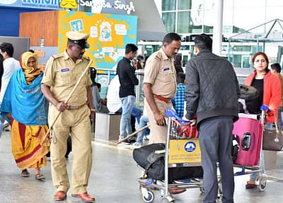 PHOTOS: ಕೆಂಪೇಗೌಡ ಅಂತರರಾಷ್ಟ್ರೀಯ ವಿಮಾನ ನಿಲ್ದಾಣದಲ್ಲಿ ಕಟ್ಟೆಚ್ಚರ