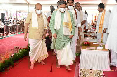 ಮೈಸೂರು:ಮಂಜು ಮುಸುಕಿದ ಚಾಮುಂಡಿಬೆಟ್ಟದಲ್ಲಿ ಗುರುವಾರ ದಸರೆಯ ಬೆಳಗಿನ ಕಿರಣಗಳು ಹೊಳೆದವು. ಕೋವಿಡ್ ಮೂರನೇ ಅಲೆಯ ಆತಂಕದ ನಡುವೆಯೂ ನವರಾತ್ರಿಯ ಸರಳ, ಸಾಂಪ್ರದಾಯಿಕ ಆಚರಣೆಯ ಆರಂಭದ ಕ್ಷಣಗಳಿಗೆ ಬೆಟ್ಟದಲ್ಲಿ ನೆರೆದಿದ್ದ ನೂರಾರು ಗಣ್ಯರು, ಗ್ರಾಮಸ್ಥರು ಸಾಕ್ಷಿಯಾದರು. ದೇವಸ್ಥಾನದ ಪ್ರಾಂಗಣದಲ್ಲಿ ಬೃಹತ್ ಪೆಂಡಾಲಿನ ಕೆಳಗೆ ರಚಿಸಿದ್ದ ವೇದಿಕೆಯ ಎಡಭಾಗದ ಮಂಟಪದಲ್ಲಿ ಇರಿಸಲಾಗಿದ್ದ ಬೆಳ್ಳಿ ಮಂಟಪದಲ್ಲಿದ್ದ ಚಾಮುಂಡೇಶ್ವರಿ ಮೂರ್ತಿಗೆ ಬಿಜೆಪಿ ನಾಯಕ ಎಸ್.ಎಂ.ಕೃಷ್ಣ ಬೆಳಿಗ್ಗೆ 8.25ಕ್ಕೆ ಪುಷ್ಪ ನಮನ ಸಲ್ಲಿಸಿ ಉತ್ಸವಕ್ಕೆ ಚಾಲನೆ ನೀಡಿದರು.