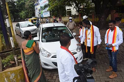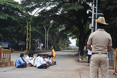 Photos: ವಾಹನಗಳಲ್ಲಿ ಬಂದವರಿಗೆ ನಮಸ್ಕರಿಸಿ ಬೆಂಬಲ ಕೋರಿದ ರೈತ ಮುಖಂಡರು