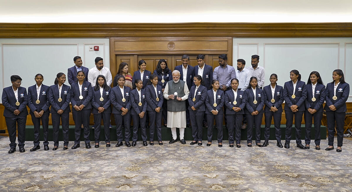 <p><strong>ನವದೆಹಲಿ</strong>: ಕೊಲಂಬೊದಲ್ಲಿ ನಡೆದ ಫೈನಲ್ನಲ್ಲಿ ನೇಪಾಳವನ್ನು ಏಳು ವಿಕೆಟ್ಗಳಿಂದ ಸೋಲಿಸಿ, ಚೊಚ್ಚಲ ಅಂಧರ ಟಿ20 ವಿಶ್ವಕಪ್ ಗೆದ್ದ ಭಾರತದ ಅಂಧ ಮಹಿಳೆಯರ ಕ್ರಿಕೆಟ್ ತಂಡವನ್ನು ಪ್ರಧಾನಿ ನರೇಂದ್ರ ಮೋದಿ ಗುರುವಾರ ಭೇಟಿಯಾದರು.</p><p>ತಂಡದ ಸದಸ್ಯರು ಪ್ರಧಾನಿ ಮೋದಿ ಅವರಿಗೆ ಹಸ್ತಾಕ್ಷರವಿರುವ ಬ್ಯಾಟ್ ಅನ್ನು ನೀಡಿದರು. ಪ್ರಧಾನಿ ಮೋದಿ ಸಹ ಚೆಂಡಿನ ಮೇಲೆ ಹಸ್ತಾಕ್ಷರ ಹಾಕಿಕೊಟ್ಟರು.</p>. <p>ವಿಜಯಶಾಲಿ ಭಾರತ ತಂಡವನ್ನು ಅವರ ಐತಿಹಾಸಿಕ ಸಾಧನೆಗಾಗಿ ಪ್ರಧಾನಿ ಮೋದಿ ಶ್ಲಾಘಿಸಿದರು.</p><p>‘ಚೊಚ್ಚಲ ಅಂಧ ಮಹಿಳಾ ಟಿ20 ವಿಶ್ವಕಪ್ ಗೆಲ್ಲುವ ಮೂಲಕ ಇತಿಹಾಸ ಸೃಷ್ಟಿಸಿದ ಭಾರತೀಯ ಅಂಧ ಮಹಿಳಾ ಕ್ರಿಕೆಟ್ ತಂಡಕ್ಕೆ ಅಭಿನಂದನೆಗಳು! ಸರಣಿಯಲ್ಲಿ ಅವರು ಅಜೇಯರಾಗಿ ಉಳಿದಿರುವುದು ಶ್ಲಾಘನೀಯ’ ಎಂದು ಪ್ರಧಾನಿ ಮೋದಿ ಎಕ್ಸ್ನಲ್ಲಿ ಬರೆದಿದ್ದಾರೆ.</p><p>‘ಇದು ನಿಜಕ್ಕೂ ಐತಿಹಾಸಿಕ ಕ್ರೀಡಾ ಸಾಧನೆ, ಕಠಿಣ ಪರಿಶ್ರಮ, ತಂಡದ ಕೆಲಸ ಮತ್ತು ದೃಢಸಂಕಲ್ಪದ ಉಜ್ವಲ ಉದಾಹರಣೆ. ಪ್ರತಿಯೊಬ್ಬ ಆಟಗಾರ್ತಿಯೂ ಚಾಂಪಿಯನ್! ತಂಡದ ಭವಿಷ್ಯದ ಪ್ರಯತ್ನಗಳಿಗೆ ನನ್ನ ಶುಭಾಶಯಗಳು. ಈ ಸಾಧನೆಯು ಮುಂದಿನ ಪೀಳಿಗೆಗೆ ಸ್ಫೂರ್ತಿ ನೀಡುತ್ತದೆ’ಎಂದು ಅವರು ಹೇಳಿದರು.</p> .<div><p><strong>ಪ್ರಜಾವಾಣಿ ಆ್ಯಪ್ ಇಲ್ಲಿದೆ: <a href="https://play.google.com/store/apps/details?id=com.tpml.pv">ಆಂಡ್ರಾಯ್ಡ್ </a>| <a href="https://apps.apple.com/in/app/prajavani-kannada-news-app/id1535764933">ಐಒಎಸ್</a> | <a href="https://whatsapp.com/channel/0029Va94OfB1dAw2Z4q5mK40">ವಾಟ್ಸ್ಆ್ಯಪ್</a>, <a href="https://www.twitter.com/prajavani">ಎಕ್ಸ್</a>, <a href="https://www.fb.com/prajavani.net">ಫೇಸ್ಬುಕ್</a> ಮತ್ತು <a href="https://www.instagram.com/prajavani">ಇನ್ಸ್ಟಾಗ್ರಾಂ</a>ನಲ್ಲಿ ಪ್ರಜಾವಾಣಿ ಫಾಲೋ ಮಾಡಿ.</strong></p></div>