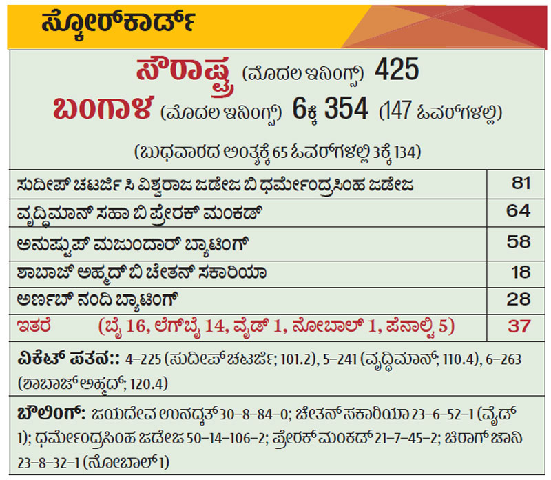 <figcaption>""</figcaption>.<p><strong>ರಾಜಕೋಟ್:</strong> ಬಂಗಾಳ ತಂಡದ ನಂಬಿಗಸ್ಥ ಆಟಗಾರ ಅನು ಷ್ಟುಪ್ ಮಜುಂದಾರ್ ಮತ್ತೊಮ್ಮೆ ಆಪತ್ಬಾಂಧವನಾದರು. ಹೀಗಾಗಿ ಸೌರಾಷ್ಟ್ರ ವಿರುದ್ಧ ರಣಜಿ ಟ್ರೋಫಿ ಫೈನಲ್ ಪಂದ್ಯದ ನಾಲ್ಕನೇ ದಿನವಾದ ಗುರುವಾರ ಮೊದಲ ಇನಿಂಗ್ಸ್ ಮುನ್ನಡೆ ಪಡೆಯಲು ಹೋರಾಟ ಜೋರಾಗಿಯೇ ಸಾಗಿ, ಕುತೂಹಲ ಅಂತಿಮ ದಿನಕ್ಕೂ ಮುಂದುವರಿಯಿತು.</p>.<p>ಮೊದಲ ಇನಿಂಗ್ಸ್ ಮುನ್ನಡೆ ನಿರ್ಣಾಯಕವಾಗುವ ಕಾರಣ ಬಂಗಾಳ ಎಚ್ಚರಿಕೆಯ ಆಟಕ್ಕೆ ಮೊರೆಹೋಯಿತು. ಸೌರಾಷ್ಟ್ರದ 425 ರನ್ಗಳಿಗೆ ಉತ್ತರ ವಾಗಿ ನಾಲ್ಕನೇ ದಿನದಾಟ ಮುಗಿದಾಗ 6 ವಿಕೆಟ್ಗೆ 354 ರನ್ ಗಳಿಸಿತು. ನಾಕೌಟ್ ಪಂದ್ಯಗಳಲ್ಲಿ ಶತಕಗಳನ್ನು ಬಾರಿಸಿದ್ದ ಅನುಷ್ಟುಪ್ ಅಜೇಯ 58 ರನ್ (134 3, 8 ಬೌಂ) ಗಳಿಸಿದ್ದಾರೆ. ಅರ್ಣವ್ ನಂದಿ (ಬ್ಯಾಟಿಂಗ್ 28, 82 ಎ) ಜೊತೆ ಮುರಿಯದ ಏಳನೇ ವಿಕೆಟ್ಗೆ 91 ರನ್ ಸೇರಿಸಿ ಬಂಗಾಳದ ಮುನ್ನಡೆ ಆಸೆಯನ್ನು ಜೀವಂತವಾಗಿ ಉಳಿಸಿಕೊಂಡಿದ್ದಾರೆ. ಜಯದೇವ ಉನದ್ಕತ್ ಬೌಲಿಂಗ್ನಲ್ಲಿ ಬೆರಳಿಗೆ ಏಟು ತಿಂದರೂ ಅರ್ಣವ್ ಕೆಚ್ಚಿನಿಂದಲೇ ಆಟ ಮುಂದುವರಿಸಿದರು.</p>.<p>ಬಂಗಾಳಕ್ಕೆ ಮುನ್ನಡೆ ಪಡೆದು ಟ್ರೋಫಿ ಎತ್ತಲು 72 ರನ್ ಬೇಕು. ಇನ್ನೊಂದೆಡೆ ಬಂಗಾಳದ ನಾಲ್ಕು ವಿಕೆಟ್ಗಳನ್ನು ಬೇಗನೇ ಪಡೆದರೆ ಸೌರಾಷ್ಟ್ರ ಆಸೆ ಈಡೇರಲಿದೆ.</p>.<p>ಆತಿಥೇಯರ ಕ್ಷೇತ್ರ ರಕ್ಷಣೆ ಬಿಗುವಾಗಿರಲಿಲ್ಲ. ಟೀ ನಂತರ ಬಂಗಾಳ ಆಟಗಾರರು 90 ರನ್ ಕಲೆಹಾಕಿದರು. ಹರ್ವಿಕ್ ದೇಸಾಯಿಮೊದಲ ಸ್ಲಿಪ್ನಲ್ಲಿ ಬಿಟ್ಟ ಕ್ಯಾಚ್ನಿಂದ ಮಜುಂದಾರ್ ಬಚಾ ವಾದರು. ಆಗ ಅವರು 10 ರನ್ ಅಷ್ಟೇ ಗಳಿಸಿದ್ದರು.</p>.<p>3 ವಿಕೆಟ್ಗೆ 134 ರನ್ಗಳೊಡನೆ ಗುರುವಾರ ಆಟ ಮುಂದುವರಿಸಿದ ಬಂಗಾಳದ ಹೋರಾಟವನ್ನು ಸುದೀಪ್ ಚಟರ್ಜಿ (81, 241 ಎ) ಮತ್ತು ಅನುಭವಿ ವೃದ್ಧಿಮಾನ್ ಸಹಾ (64, 184ಎ) ಮುಂದುವರಿಸಿದರು. ಇವರಿಬ್ಬರು 101 ರನ್ ಜೊತೆಯಾಟವಾಡಿದರು. ಅದಕ್ಕೆ ತೆಗೆದುಕೊಂಡಿದ್ದು 49 ಓವರುಗಳನ್ನು!</p>.<p><strong>ಆತಂಕದ ಕ್ಷಣ:</strong> ಕೆಲವೊಮ್ಮೆ ಕೆಳಮಟ್ಟದಲ್ಲಿ ಚೆಂಡು ಹೊರಳುತಿದ್ದ ಪಿಚ್ನಲ್ಲಿ ಸೌರಾಷ್ಟ್ರ ಬೌಲರ್ಗಳು ಬಿಗುವಾಗಿಯೇ ಬೌಲ್ ಮಾಡಿದರು. ಚಟರ್ಜಿ ಬಂಡೆಗಲ್ಲಿನಂತೆ ಬೇರೂರಿದರೆ, ಟೆಸ್ಟ್ ವಿಕೆಟ್ ಕೀಪರ್ ಸಹಾ ಆತಂಕದಲ್ಲೇ ಕಳೆದರು. ಅವರ ವಿರುದ್ಧ ಎರಡು ಬಾರಿ ಎಲ್ಬಿಡಬ್ಲ್ಯು (ಉನದ್ಕತ್ ಬೌಲಿಂಗ್) ಮನವಿಗಳು ತಿರಸ್ಕೃತವಾದವು. ಅವರು 46 ರಲ್ಲಿದ್ದಾಗ ‘ಗಲ್ಲಿ’ಯಲ್ಲಿದ್ದ ಆಟಗಾರ ಕ್ಯಾಚ್ ಬಿಟ್ಟ ಪರಿಣಾಮ ಚೆಂಡು ಬೌಂಡರಿಗೆ ಹೋಗಿ ಅರ್ಧ ಶತಕ ದಾಟಿದರು. ಮತ್ತೊಮ್ಮೆ ರನ್ಔಟ್ ಅಪಾಯದಿಂದ ಪಾರಾದರು.</p>.<p>ಲಂಚ್ ನಂತರ ಎಂಟನೇ ಓವರ್ ನಲ್ಲಿ ಸೌರಾಷ್ಟ್ರ ಕೊನೆಗೂ ಯಶಸ್ಸು ಪಡೆಯಿತು. ಜಡೇಜಾ ಬೌಲಿಂಗ್ನಲ್ಲಿ ಚಟರ್ಜಿ ಷಾರ್ಟ್ಲೆಗ್ನಲ್ಲಿ ಕ್ಯಾಚಿತ್ತರು. ಒತ್ತಡ ಹೇರಿದ ಸೌರಾಷ್ಟ್ರ, ಕೆಲವೇ ಹೊತ್ತಿನ ನಂತರ ವೃದ್ಧಿಮಾನ್ ವಿಕೆಟ್ ಸಹ ಪಡೆಯಿತು. ಪ್ರೇರಕ್ ಮಂಕಡ್ ಅವರನ್ನು ಬೌಲ್ಡ್ ಮಾಡಿದರು. ಟೀ ಸಮೀಪಿಸುತ್ತಿದ್ದಂತೆ ಶಾಬಾಜ್ ಅಹ್ಮದ್ (18) ನಿರ್ಗಮಿಸಿದ್ದರು.</p>.<div><p><strong>ಪ್ರಜಾವಾಣಿ ಆ್ಯಪ್ ಇಲ್ಲಿದೆ: <a href="https://play.google.com/store/apps/details?id=com.tpml.pv">ಆಂಡ್ರಾಯ್ಡ್ </a>| <a href="https://apps.apple.com/in/app/prajavani-kannada-news-app/id1535764933">ಐಒಎಸ್</a> | <a href="https://whatsapp.com/channel/0029Va94OfB1dAw2Z4q5mK40">ವಾಟ್ಸ್ಆ್ಯಪ್</a>, <a href="https://www.twitter.com/prajavani">ಎಕ್ಸ್</a>, <a href="https://www.fb.com/prajavani.net">ಫೇಸ್ಬುಕ್</a> ಮತ್ತು <a href="https://www.instagram.com/prajavani">ಇನ್ಸ್ಟಾಗ್ರಾಂ</a>ನಲ್ಲಿ ಪ್ರಜಾವಾಣಿ ಫಾಲೋ ಮಾಡಿ.</strong></p></div>