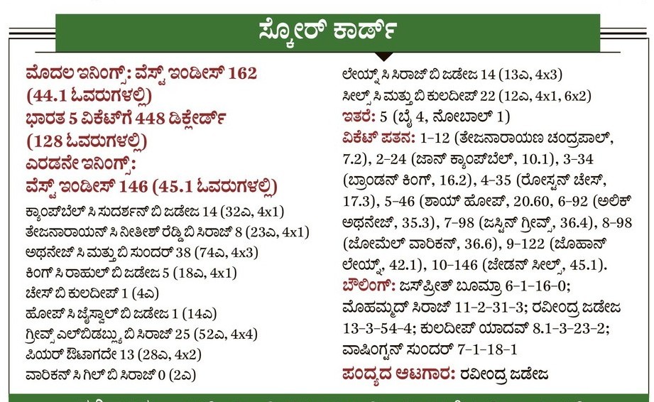 <p><strong>ಅಹಮದಾಬಾದ್:</strong> ಶನಿವಾರ ಬೆಳಿಗ್ಗೆ ಭಾರತ ತಂಡದ ಆಟಗಾರರು ನರೇಂದ್ರ ಮೋದಿ ಕ್ರೀಡಾಂಗಣವನ್ನು ಪ್ರವೇಶಿಸಿದಾಗ ಉಳಿದಿದ್ದ ಕುತೂಹಲ ಒಂದೇ ಒಂದು. ಆತಿಥೇಯ ತಂಡವು ಎಷ್ಟು ಗಂಟೆಗಳಲ್ಲಿ ಗೆಲುವು ಸಾಧಿಸಲಿದೆ ಎಂಬುದೇ ಆ ಕೌತುಕವಾಗಿತ್ತು!</p>.<p>ಅದಕ್ಕೆ ಉತ್ತರವೂ ಸುಲಭವಾಗಿ ದಕ್ಕಿತು. ಭೋಜನ ವಿರಾಮದ ನಂತರದ ಒಂದೂವರೆ ಗಂಟೆ ಕಳೆಯುವಷ್ಟರಲ್ಲಿ ಭಾರತ ತಂಡವು ಇನಿಂಗ್ಸ್ ಮತ್ತು 140 ರನ್ಗಳ ಜಯ ದಾಖಲಿಸಿತು. ಎರಡು ಪಂದ್ಯಗಳ ಸರಣಿಯಲ್ಲಿ 1–0 ಮುನ್ನಡೆ ಸಾಧಿಸಿತು.</p>.<p>ವೆಸ್ಟ್ ಇಂಡೀಸ್ ಎದುರಿನ ಮೊದಲ ಟೆಸ್ಟ್ ಪಂದ್ಯದ ಎರಡನೇ ದಿನದಾಟದಲ್ಲಿ 286 ರನ್ಗಳ ಮುನ್ನಡೆಯನ್ನು ಗಳಿಸಿದ್ದ ಭಾರತ, ಮೂರನೇ ದಿನ ಬ್ಯಾಟಿಂಗ್ ಮಾಡುವ ಗೋಜಿಗೆ ಹೋಗಲಿಲ್ಲ. ಮೊದಲ ಇನಿಂಗ್ಸ್ (5ಕ್ಕೆ448) ಡಿಕ್ಲೇರ್ ಮಾಡಿಕೊಂಡಿತು. ಶುಕ್ರವಾರ ಬೆಳಿಗ್ಗೆ ಎಡಗೈ ಸ್ಪಿನ್ನರ್ ರವೀಂದ್ರ ಜಡೇಜ (54ಕ್ಕೆ4), ವೇಗಿ ಮೊಹಮ್ಮದ್ ಸಿರಾಜ್ (31ಕ್ಕೆ3), ಸ್ಪಿನ್ನರ್ ಕುಲದೀಪ್ ಯಾದವ್ (23ಕ್ಕೆ2) ಮತ್ತು ಆಫ್ಸ್ಪಿನ್ನರ್ ವಾಷಿಂಗ್ಟನ್ ಸುಂದರ್ (18ಕ್ಕೆ1) ಆತಿಥೇಯ ಬಳಗದ ಗೆಲುವನ್ನು ಸುಲಭಗೊಳಿಸಿದರು. ವಿಂಡೀಸ್ ತಂಡವು 45.1 ಓವರ್ಗಳಲ್ಲಿ 146 ರನ್ ಗಳಿಸಿ ಎಲ್ಲ ವಿಕೆಟ್ ಕಳೆದುಕೊಂಡಿತು. </p>.<p>ಭಾರತ ತಂಡವು ಮೊದಲ ಇನಿಂಗ್ಸ್ನಲ್ಲಿ 162 ರನ್ಗಳಿಗೆ ವಿಂಡೀಸ್ ತಂಡವನ್ನು ಕಟ್ಟಿಹಾಕಿತ್ತು. ಅದರಿಂದಾಗಿ ತಂಡವು ಗಳಿಸಿರುವ ಮುನ್ನಡೆಯ ಮೊತ್ತವು ವಿಂಡೀಸ್ ಕಟ್ಟಿಹಾಕಲು ಸಾಕು ಎಂಬ ಭಾವ ಆತಿಥೇಯ ತಂಡಕ್ಕೆ ಮೂಡಿರಬಹುದು. ಗಿಲ್ ಮತ್ತು ಮುಖ್ಯ ಕೋಚ್ ಗೌತಮ್ ಗಂಭೀರ್ ಅವರ ಯೋಜನೆಯಂತೆ ಇನಿಂಗ್ಸ್ ಡಿಕ್ಲೇರ್ ಮಾಡಾಯಿತು. </p>.<p>ವಿಂಡೀಸ್ ಬ್ಯಾಟರ್ಗಳು ಭಾರತದ ಉತ್ತಮ ದರ್ಜೆಯ ಬೌಲಿಂಗ್ ಮುಂದೆ ಇನಿಂಗ್ಸ್ ಕಟ್ಟುವಲ್ಲಿ ಸಫಲರಾಗಲಿಲ್ಲ. ಆರಂಭಿಕ ಬ್ಯಾಟರ್ಗಳು ಮೊದಲ ಏಳು ಓವರ್ ತಾಳ್ಮೆಯಿಂದ ಆಡಿದರು. ಆದರೆ ಎಂಟನೇ ಓವರ್ನಲ್ಲಿ ಸಿರಾಜ್ ಎಸೆತದಲ್ಲಿ ತೇಜ್ನಾರಾಯಣ್ ಚಂದ್ರಪಾಲ್ ಅವರ ಕ್ಯಾಚ್ ಅನ್ನು ಡೈವ್ ಮಾಡಿ ಪಡೆದ ನಿತೀಶ್ ಕುಮಾರ್ ರೆಡ್ಡಿ ಮಿಂಚಿದರು. ಅಲ್ಲಿಂದ ಬ್ಯಾಟರ್ಗಳ ಪರೇಡ್ ಆರಂಭವಾಯಿತು. ಸ್ಪಿನ್ನರ್ಗಳ ಕೈಚಳಕ ರಂಗೇರಿತು. ತಂಡವು 46 ರನ್ಗಳಿಗೆ 5 ವಿಕೆಟ್ ಕಳೆದುಕೊಂಡಿತು. </p>.<p>ಆದರೆ ಅಲಿಕ್ ಅಥಾಂಜೆ (38 ರನ್) ಮತ್ತು ಜಸ್ಟಿನ್ ಗ್ರೀವ್ಸ್ ಅವರು ಆರನೇ ವಿಕೆಟ್ ಜೊತೆಯಾಟದಲ್ಲಿ 46 ರನ್ ಸೇರಿಸುವ ಮೂಲಕ ತಮ್ಮ ತಂಡದ ಸೋಲಿನ ಅಂತರವನ್ನು ಕಡಿಮೆ ಮಾಡಿದರು. ಊಟದ ನಂತರದ ಎಂಟನೇ ಓವರ್ನಲ್ಲಿ ವಾಷಿಂಗ್ಟನ್ ತಮ್ಮದೇ ಎಸೆತದಲ್ಲಿ ಪಡೆದ ಕ್ಯಾಚ್ಗೆ ಅಲಿಕ್ ನಿರ್ಗಮಿಸಿದರು. ಜೊತೆಯಾಟ ಮುರಿಯಿತು. ಕೆಳಕ್ರಮಾಂಕದ ಬ್ಯಾಟರ್ಗಳು ಸುಖಾಸುಮ್ಮನೇ ಬ್ಯಾಟ್ ಬೀಸಿ ವಿಕೆಟ್ ಒಪ್ಪಿಸುವ ಶಾಸ್ತ್ರ ನಿಭಾಯಿಸಿದರು. ಮಧ್ಯಾಹ್ನ 1.40ಕ್ಕೆ ವಿಂಡೀಸ್ ಇನಿಂಗ್ಸ್ಗೆ ತೆರೆಬಿತ್ತು. ಶತಕ ಗಳಿಸಿ, ನಾಲ್ಕು ವಿಕೆಟ್ ಪಡೆದ ರವೀಂದ್ರ ಜಡೇಜ ಪಂದ್ಯಶ್ರೇಷ್ಠ ಗೌರವಕ್ಕೆ ಪಾತ್ರರಾದರು.</p>.<p>ಸರಣಿಯ ಕೊನೆಯ ಮತ್ತು ಎರಡನೇ ಪಂದ್ಯವು ನವದೆಹಲಿಯಲ್ಲಿ ನಡೆಯಲಿದೆ. ಸರಣಿಯಲ್ಲಿ ಕ್ಲೀನ್ ಸ್ವೀಪ್ ಜಯ ಸಾಧಿಸುವ ಅವಕಾಶ ಭಾರತಕ್ಕೆ ಇದೆ. 1994–95ರ ನಂತರ ಭಾರತದ ನೆಲದಲ್ಲಿ ವಿಂಡೀಸ್ ಟೆಸ್ಟ್ ಸರಣಿ ಜಯಿಸಿಲ್ಲ. </p>.<p>ಎರಡೂವರೆ ದಿನದಲ್ಲಿ ಮುಗಿದ ಟೆಸ್ಟ್ ಪಂದ್ಯ ಮೊಹಮ್ಮದ್ ಸಿರಾಜ್ಗೆ ಮತ್ತೆ ಮೂರು ವಿಕೆಟ್ ಶುಭಮನ್ ಗಿಲ್ ನಾಯಕತ್ವದಲ್ಲಿ ಭಾರತ ತಂಡವು ತವರಿನಲ್ಲಿ ಆಡಿದ ಮೊದಲ ಟೆಸ್ಟ್</p>.<div><p><strong>ಪ್ರಜಾವಾಣಿ ಆ್ಯಪ್ ಇಲ್ಲಿದೆ: <a hr