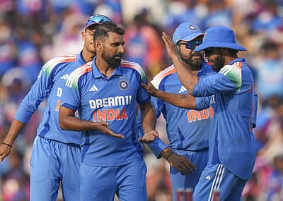 ವಿಕೆಟ್ ಪಡೆದ ಅನುಭವಿ ಮೊಹಮ್ಮದ್ ಶಮಿಗೆ ಸಹ ಆಟಗಾರರ ಅಭಿನಂದನೆ