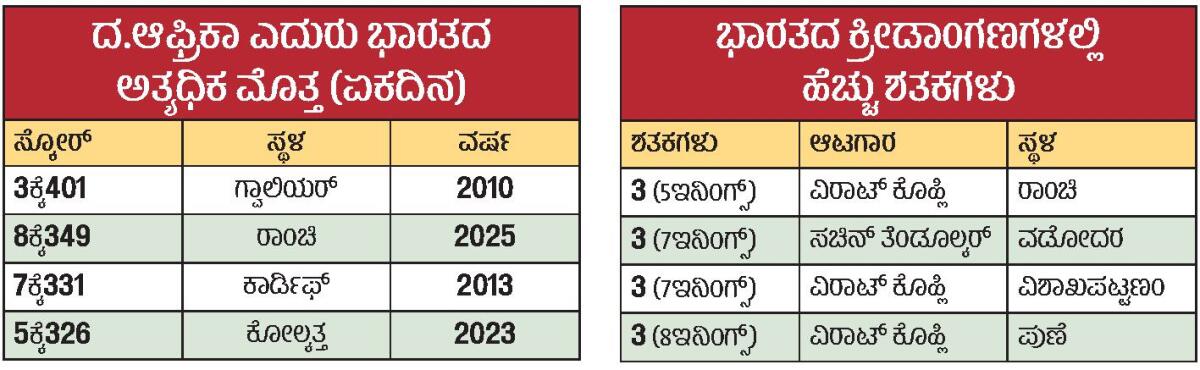 <p><strong>ರಾಂಚಿ</strong>: ಏಕದಿನ ಕ್ರಿಕೆಟ್ ಮಾದರಿಯ ‘ದಿಗ್ಗಜ ಜೋಡಿ’ ವಿರಾಟ್ ಕೊಹ್ಲಿ ಮತ್ತು ರೋಹಿತ್ ಶರ್ಮಾ ಅವರ ಅಬ್ಬರದ ಆಟಕ್ಕೆ ಜಯ ಒಲಿಯಿತು. </p>.<p>ಜಾರ್ಖಂಡ್ ರಾಜ್ಯ ಕ್ರಿಕೆಟ್ ಸಂಸ್ಥೆ (ಜೆಎಸ್ಸಿಎ) ಕ್ರೀಡಾಂಗಣದಲ್ಲಿ ಭಾನುವಾರ ದಕ್ಷಿಣ ಆಫ್ರಿಕಾ ಎದುರು ನಡೆದ ಮೊದಲ ಏಕದಿನ ಪಂದ್ಯದಲ್ಲಿ ಭಾರತ ತಂಡವು 17 ರನ್ಗಳಿಂದ ಜಯಿಸಿತು. ಮೂರು ಪಂದ್ಯಗಳ ಸರಣಿಯಲ್ಲಿ 1–0 ಮುನ್ನಡೆ ಸಾಧಿಸಿತು. </p>.<p>ಇದಕ್ಕೆ ಪ್ರಮುಖವಾಗಿ ಕಾರಣವಾಗಿದ್ದು ವಿರಾಟ್ ಮತ್ತು ರೋಹಿತ್ ಅವರ ಅಮೋಘ ಬ್ಯಾಟಿಂಗ್. ಏಕದಿನ ಕ್ರಿಕೆಟ್ನಲ್ಲಿ 52ನೇ ಶತಕ ದಾಖಲಿಸಿದರು. ರೋಹಿತ್ 60ನೇ ಅರ್ಧಶತಕ ಹೊಡೆದರು. ಇಬ್ಬರೂ ಎರಡನೇ ವಿಕೆಟ್ ಜೊತೆಯಾಟದಲ್ಲಿ 136 ರನ್ಗಳನ್ನೂ ಸೇರಿಸಿದರು. ಇದರಿಂದಾಗಿ ತಂಡವು 50 ಓವರ್ಗಳಲ್ಲಿ 8 ವಿಕೆಟ್ಗಳಿಗೆ 349 ರನ್ ಗಳಿಸಿತು. </p>.<p>ಆದರೆ ಪ್ರವಾಸಿ ತಂಡದ ಕೆಳಕ್ರಮಾಂಕದ ಬ್ಯಾಟರ್ಗಳಾದ ಮಾರ್ಕೊ ಯಾನ್ಸೆನ್ (70; 39ಎ) ಮತ್ತು ಕಾರ್ಬಿನ್ ಬಾಷ್ (67; 51ಎ) ದಿಟ್ಟ ಹೋರಾಟದ ಮೂಲಕ ಭಾರತ ತಂಡದಿಂದ ಗೆಲುವು ಕಸಿದುಕೊಳ್ಳುವ ಬೆದರಿಕೆ ಒಡ್ಡಿದ್ದರು. ಜಸ್ಪ್ರೀತ್ ಬೂಮ್ರಾ ಮತ್ತು ಮೊಹಮ್ಮದ್ ಸಿರಾಜ್ ಅವರಂತಹ ಅನುಭವಿ ಬೌಲರ್ಗಳ ಗೈರು ಈ ಹಂತದಲ್ಲಿ ಕಾಡಿತ್ತು. ಆದರೆ ಕುಲದೀಪ್ ಯಾದವ್ (68ಕ್ಕೆ4) ಮತ್ತು ಹರ್ಷಿತ್ ರಾಣಾ (65ಕ್ಕೆ3) ತುಸು ದುಬಾರಿಯಾದರೂ ವಿಕೆಟ್ ಉರುಳಿಸಿದರು. ಇದರಿಂದಾಗಿ ದಕ್ಷಿಣ ಆಫ್ರಿಕಾ ತಂಡವು 332 ರನ್ಗಳಿಗೆ ಆಲೌಟ್ ಆಯಿತು. </p>.<p>ಗುರಿ ಬೆನ್ನಟ್ಟಿದ ದಕ್ಷಿಣ ಆಫ್ರಿಕಾ ತಂಡಕ್ಕೆ ಆರಂಭದಲ್ಲಿಯೇ ಆಘಾತವಾಯಿತು. ಹರ್ಷಿತ್ ರಾಣಾ ಅವರು ಇನಿಂಗ್ಸ್ನ ಎರಡನೇ ಓವರ್ನಲ್ಲಿಯೇ ರಿಯಾನ್ ರಿಕೆಲ್ಟನ್ ಮತ್ತು ಕ್ವಿಂಟನ್ ಡಿ ಕಾಕ್ ಅವರ ವಿಕೆಟ್ ಕಬಳಿಸಿದರು. ಇಬ್ಬರೂ ಬ್ಯಾಟರ್ಗಳು ಖಾತೆ ತೆರೆಯದೇ ನಿರ್ಗಮಿಸಿದರು. ಇನ್ನೊಂದೆಡೆ ಎಡಗೈ ವೇಗಿ ಆರ್ಷದೀಪ್ ಸಿಂಗ್ ಅವರು ಏಡನ್ ಮರ್ಕರಂ ವಿಕೆಟ್ ಗಳಿಸಿದರು. ಇದರಿಂದಾಗಿ ತಂಡವು 11 ರನ್ಗಳಿಗೆ ಮೂರು ವಿಕೆಟ್ ಕಳೆದುಕೊಂಡಿತು. ಭಾರತ ತಂಡದ ಹಂಗಾಮಿ ನಾಯಕ ಮತ್ತು ವಿಕೆಟ್ಕೀಪರ್ ಕೆ.ಎಲ್. ರಾಹುಲ್ ಅವರು ಮರ್ಕರಂ ಮತ್ತು ಕ್ವಿಂಟನ್ ಅವರ ಕ್ಯಾಚ್ಗಳನ್ನು ಪಡೆಯುವಲ್ಲಿ ಯಶಸ್ವಿಯಾದರು. ರಾಹುಲ್ (60; 56ಎ, 4X2, 6X3) ಅರ್ಧಶತಕ ಹೊಡೆದು ತಂಡದ ಮೊತ್ತ ಹೆಚ್ಚಲು ಕಾರಣರಾದರು. ರವೀಂದ್ರ ಜಡೇಜ 20 ಎಸೆತಗಳಲ್ಲಿ 32 ರನ್ ಹೊಡೆದು ಉಪಯುಕ್ತ ಕಾಣಿಕೆ ನೀಡಿದರು. </p>.<p>ಆದರೆ ಮ್ಯಾಥ್ಯೂ ಬ್ರೀಜ್ಕೆ (72; 80ಎ) ಅವರು ತುಸು ಚೇತರಿಕೆ ನೀಡಿದರು. ಅವರಿಗೆ ಟೋನಿ ಡಿ ಝಾರ್ಜಿ (39; 35ಎ) ಮತ್ತು ಡೆವಾಲ್ಡ್ ಬ್ರೆವಿಸ್ (37 ರನ್) ಜೊತೆ ನೀಡಿದರು. ಅವರನ್ನೂ ಕಟ್ಟಿಹಾಕುವಲ್ಲಿ ಕುಲದೀಪ್ ಯಾದವ್ ಮತ್ತು ಹರ್ಷಿತ್ ಯಶಸ್ವಿಯಾದರು. </p>.<p>ಆದರೆ ಮಾರ್ಕೊ ಅವರ ಅಬ್ಬರಕ್ಕೆ ಬೌಲರ್ಗಳು ಬಸವಳಿದರು. 39 ಎಸೆತಗಳಲ್ಲಿ 70 ರನ್ ಗಳಿಸಿದ ಯಾನ್ಸೆನ್ 8 ಬೌಂಡರಿ ಮತ್ತು 3 ಸಿಕ್ಸರ್ ಬಾರಿಸಿದರು. ಕಾರ್ಬಿನ್ ಬಾಷ್ ಕೊನೆಯವರಾಗಿ ಔಟಾಗುವವರೆಗೂ ತಂಡದ ಗೆಲುವಿನ ಆಸೆ ಜೀವಂತವಾಗಿತ್ತು. ಅವರ ವಿಕೆಟ್ ಪಡೆಯುವಲ್ಲಿ ಕನ್ನಡಿಗ ಪ್ರಸಿದ್ಧಕೃಷ್ಣ ಕೊನೆಯ ಓವರ್ನಲ್ಲಿ ಸಫಲರಾದರು. </p>.<p><strong>ಭಾರತ: 8ಕ್ಕೆ 349 (50 ಓವರ್ಗಳಲ್ಲಿ)</strong></p><p>ಜೈಸ್ವಾಲ್ ಸಿ ಕ್ವಿಂಟನ್ ಬಿ ಬರ್ಗರ್ 18 (16ಎ, 4x2, 6x1)</p><p>ರೋಹಿತ್ ಎಲ್ಬಿಡಬ್ಲ್ಯು ಬಿ ಯಾನ್ಸನ್ 57 (51ಎ, 4x5, 6x3)</p><p>ಕೊಹ್ಲಿ ಸಿ ರಿಕೆಲ್ಟನ್ ಬಿ ಬರ್ಗರ್ 135 (120ಎ, 4x11, 6x7)</p><p>ಗಾಯಕವಾಡ ಸಿ ಬ್ರೆವಿಸ್ ಬಿ ಬಾರ್ಟ್ಮನ್ 8 (14ಎ)</p><p>ವಾಷಿಂಗ್ಟನ್ ಸಿ ಕಾರ್ಬಿನ್ ಬಿ ಬಾರ್ಟ್ಮನ್ 13 (19ಎ, 6x1)</p>