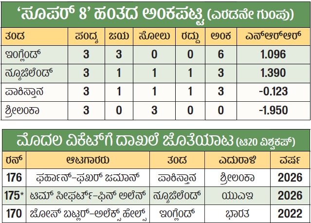 <p><strong>ಪಲ್ಲೆಕೆಲೆ:</strong> ಆರಂಭ ಆಟಗಾರರಾದ ಸಾಹಿಬ್ಝಾದಾ ಫರ್ಹಾನ್ (100) ಮತ್ತು ಫಖರ್ ಜಮಾನ್ (84) ಅವರ ದಾಖಲೆಯ ಜೊತೆಯಾಟದ ನೆರವಿನಿಂದ ಪಾಕಿಸ್ತಾನ ತಂಡವು ಶನಿವಾರ ಟಿ20 ವಿಶ್ವಕಪ್ನ ಸೂಪರ್ ಎಂಟರ ತನ್ನ ಕೊನೆಯ ಪಂದ್ಯದಲ್ಲಿ 5 ರನ್ಗಳಿಂದ ಶ್ರೀಲಂಕಾ ತಂಡವನ್ನು ಮಣಿಸಿತು. ಆದರೆ, ಈ ರೋಚಕ ಪಂದ್ಯದಲ್ಲಿ ಗೆದ್ದರೂ ಪಾಕ್ನ ನಾಕೌಟ್ ಕನಸು ಸಾಕಾರಗೊಳ್ಳಲಿಲ್ಲ. </p>.<p>ಪಾಕಿಸ್ತಾನ ತಂಡವು ಸೆಮಿಫೈನಲ್ಗೆ ಅರ್ಹತೆ ಪಡೆಯಲು ಆತಿಥೇಯ ತಂಡವನ್ನು 147 ರನ್ಗಳ ಒಳಗೆ ನಿಯಂತ್ರಿಸಬೇಕಿತ್ತು. ಆದರೆ, 213 ರನ್ಗಳ ಗುರಿ ಎದುರಿಸಿದ ಲಂಕಾ ತಂಡವು ಕೊನೆಯಲ್ಲಿ ತೀವ್ರ ಹೋರಾಟ ನಡೆಸಿದರೂ 20 ಓವರ್ಗಳಲ್ಲಿ 6 ವಿಕೆಟ್ಗೆ 207 ರನ್ ಗಳಿಸಲಷ್ಟೇ ಶಕ್ತವಾಯಿತು.</p>.<p>ಆತಿಥೇಯರ ಗೆಲುವಿಗೆ ಕೊನೆಯ ಓವರ್ನಲ್ಲಿ 28 ರನ್ ಬೇಕಿತ್ತು. ವೇಗಿ ಶಾಹೀನ್ ಶಾ ಅಫ್ರಿದಿ ಹಾಕಿದ ಓವರ್ನ ಮೊದಲ ನಾಲ್ಕು ಎಸೆತಗಳಲ್ಲಿ ನಾಯಕ ದಸೂನ್ ಶನಕ (ಔಟಾಗದೇ 76;31ಎ) ಅವರು ಹ್ಯಾಟ್ರಿಕ್ ಸಿಕ್ಸರ್ ಸೇರಿ 22 ರನ್ ಬಾಚಿದರು. ಆದರೆ, ನಂತರದ ಎರಡು ಎಸೆತಗಳಲ್ಲಿ ರನ್ ಬರಲಿಲ್ಲ. ಹೀಗಾಗಿ ಲಂಕಾ ನಿರಾಸೆಯೊಂದಿಗೆ ಅಭಿಯಾನ ಮುಗಿಸಿತು. </p>.<p>ಎರಡನೇ ಗುಂಪಿನಲ್ಲಿ ನ್ಯೂಜಿಲೆಂಡ್ ತಂಡವು ನೆಟ್ ರನ್ರೇಟ್ ಆಧಾರದಲ್ಲಿ ಎರಡನೇ ಸ್ಥಾನ ಪಡೆದು ಸೆಮಿಫೈನಲ್ಗೆ ಮುನ್ನಡೆಯಿತು. ಇದೇ ಗುಂಪಿನಿಂದ ಇಂಗ್ಲೆಂಡ್ ತಂಡವು ಹ್ಯಾಟ್ರಿಕ್ ಗೆಲುವಿನೊಂದಿಗೆ ಈ ಮೊದಲೇ ನಾಕೌಟ್ ಪ್ರವೇಶಿಸಿದೆ. </p>.<p>ಲಂಕಾ ತಂಡವು ಎರಡನೇ ಓವರ್ನಲ್ಲೇ ಆರಂಭಿಕ ಆಟಗಾರ ಪಥುಮ್ ನಿಸಾಂಕ (3) ಅವರನ್ನು ಕಳೆದುಕೊಂಡಿತು. ನಂತರದಲ್ಲೂ ಅಬ್ರಾರ್ ಅಹ್ಮದ್ (23ಕ್ಕೆ 3) ದಾಳಿಗೆ ನಿಯಮಿತವಾಗಿ ವಿಕೆಟ್ಗಳು ಉರುಳಿದವು. ಆದರೆ, ಮಧ್ಯಮ ಕ್ರಮಾಂಕದಲ್ಲಿ ಪವನ್ ರಥನಾಯಕೆ (58;37ಎ, 4x4, 6x3) ಮತ್ತು ಕೆಳ ಕ್ರಮಾಂಕದಲ್ಲಿ ಶನಕ ದಿಟ್ಟ ಪ್ರತಿರೋಧ ತೋರಿದರು. ಎರಡು ಬೌಂಡರಿ ಮತ್ತು ಎಂಟು ಭರ್ಜರಿ ಸಿಕ್ಸರ್ ಬಾರಿಸಿದ ಶನಕ ಕೊನೆಯ 12 ಎಸೆತಗಳಲ್ಲಿ 40 ರನ್ ಸೂರೆಗೈದು, ಗೆಲುವಿನ ಆಸೆ ಚಿಗುರಿಸಿದ್ದರು. ಆದರೆ, ಅಲ್ಪ ಅಂತರದಿಂದ ಸೋತಿತು. </p>.<p>ಇದಕ್ಕೂ ಮೊದಲು ಟಾಸ್ ಸೋತು ಬ್ಯಾಟಿಂಗ್ಗೆ ಇಳಿಸಲ್ಪಟ್ಟ ಪಾಕ್ ತಂಡವು ಭರ್ಜರಿ ಆರಂಭ ಪಡೆಯಿತು. ಉತ್ತಮ ಮೊತ್ತ ಗಳಿಸಲು ಆರಂಭದಿಂದಲೇ ಬೀಸಾಟಕ್ಕಿಳಿದ ಫರ್ಹಾನ್ ಮತ್ತು ಜಮಾನ್ ಮೊದಲ ವಿಕೆಟ್ಗೆ ದಾಖಲೆಯ 176 ರನ್ ಸೇರಿಸಿದರು. ಅದರಿಂದಾಗಿ 8 ವಿಕೆಟ್ಗೆ 212 ರನ್ ಗಳಿಸಿತು.</p>.<p>ಎಡಗೈ ಬ್ಯಾಟರ್ ಜಮಾನ್ 16ನೇ ಓವರಿನಲ್ಲಿ ಆಫ್ಸ್ಟಂಪ್ನಾಚೆ ಇದ್ದ ಚೆಂಡನ್ನು ಹೊಡೆಯಲು ಹೋಗಿ ಸ್ಟಂಪ್ಸ್ಗೆ ಎಳೆದುಕೊಂಡರು. ಅವರಿಗೆ ಎರಡು ಜೀವದಾನಗಳೂ ದೊರಕಿದ್ದವು. ಈ ಅವಕಾಶಗಳನ್ನು ಜಮಾನ್ ಚೆನ್ನಾಗಿಯೇ ಬಳಸಿಕೊಂಡು 42 ಎಸೆತಗಳಲ್ಲಿ 84 ರನ್ (4x9, 6x4) ಸಿಡಿಸಿದರು.</p>.<p>ಇನ್ನೊಂದು ಕಡೆ ಫರ್ಹಾನ್ ಉತ್ತಮವಾಗಿಯೇ ಆಡಿದರು. ಓವರಿಗೆ ಹತ್ತು ರನ್ಗಳ ವೇಗವನ್ನು ಪಾಕ್ ಕೊನೆಯವರೆಗೂ ಕಾಪಾಡಿಕೊಂಡು ಬಂದಿತು. ಫರ್ಹಾನ್ ಅವರ 60 ಎಸೆತಗಳ ಇನಿಂಗ್ಸ್ನಲ್ಲಿ 9 ಬೌಂಡರಿಗಳ ಜೊತೆ ಐದು ಸಿಕ್ಸರ್ಗಳಿದ್ದವು. ಇದು ಅವರಿಗೆ ಈ ವಿಶ್ವಕಪ್ನಲ್ಲಿ ಎರಡನೇ ಶತಕ. ಅವರು (323) ಒಂದೇ ಅವೃತ್ತಿಯಲ್ಲಿ ಅತಿ ಹೆಚ್ಚು ರನ್ ಗಳಿಸಿದ ಭಾರತದ ತಾರೆ ವಿರಾಟ್ ಕೊಹ್ಲಿ (319 ರನ್) ದಾಖಲೆ ಮುರಿದರು.</p>.<p>ಜಮಾನ್ ನಿರ್ಗಮನದ ನಂತರ ವಿಕೆಟ್ಗಳು ಉದುರಿದವು. ಎಂಟು ವಿಕೆಟ್ಗಳು 36 ರನ್ ಅಂತರದಲ್ಲಿ ಉರುಳಿದವು. ಜಮಾನ್– ಫರ್ಹಾನ್ ಬಿಟ್ಟರೆ ಉಳಿದ ಯಾರೂ ಎರಡಂಕಿ ಮೊತ್ತ ಗಳಿಸಲಿಲ್ಲ. ಲಂಕಾ ಕಡೆ ಮಧುಶಂಕಾ 33 ರನ್ನಿಗೆ 3 