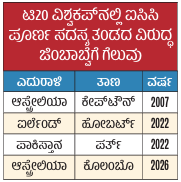 <p><strong>ಕೊಲಂಬೊ:</strong> ಸಾಂಘಿಕ ಆಟದ ಪ್ರದರ್ಶನ ನೀಡಿದ ಜಿಂಬಾಬ್ವೆ ತಂಡ ಟಿ20 ವಿಶ್ವಕಪ್ ಟೂರ್ನಿ ಪಂದ್ಯದಲ್ಲಿ ಶುಕ್ರವಾರ ಆಸ್ಟ್ರೇಲಿಯಾ ತಂಡಕ್ಕೆ 23 ರನ್ಗಳಿಂದ ಆಘಾತ ನೀಡಿತು. ಇದು ಈ ವಿಶ್ವಕಪ್ನ ಮೊದಲ ಅಚ್ಚರಿಯ ಫಲಿತಾಂಶವಾಯಿತು.</p><p>ಆಫ್ರಿಕಾದ ರಾಷ್ಟ್ರ, ಕ್ರಿಕೆಟ್ನ ಸಾಂಪ್ರದಾಯಿಕ ‘ಹೆವಿವೇಟ್’ ತಂಡವನ್ನು ಸೋಲಿಸಿದ್ದು ಇದು ಎರಡನೇ ಬಾರಿ. 2007ರ ಮೊದಲ ಟಿ20 ವಿಶ್ವಕಪ್ನಲ್ಲಿ ಜಿಂಬಾಬ್ವೆ, ಆಸ್ಟ್ರೇಲಿಯಾ ತಂಡವನ್ನು ಕೇಪ್ಟೌನ್ನಲ್ಲಿ 5 ವಿಕೆಟ್ಗಳಿಂದ ಮಣಿಸಿತ್ತು.</p><p>ಆರ್.ಪ್ರೇಮದಾಸ ಕ್ರೀಡಾಂಗಣದಲ್ಲಿ ನಡೆದ ಬಿ ಗುಂಪಿನ ಪಂದ್ಯದಲ್ಲಿ ಬ್ಯಾಟಿಂಗ್ಗೆ ಇಳಿಸಲ್ಪಟ್ಟ ಜಿಂಬಾಬ್ವೆ ತಂಡವು, ಆರಂಭ ಆಟಗಾರ ಬ್ರಯಾನ್ ಬೆನೆಟ್ ಅವರ ಅಜೇಯ 64 ಮತ್ತು ಇತರ ಆಟಗಾರರ ಉಪಯುಕ್ತ ಕೊಡುಗೆಗಳ ನೆರವಿನಿಂದ 2 ವಿಕೆಟ್ಗೆ 169 ರನ್ಗಳ ಉತ್ತಮ ಮೊತ್ತ ಗಳಿಸಿತು. ಮುಂಚೂಣಿ ಬೌಲರ್ಗಳ ಅನುಪಸ್ಥಿತಿ ಎದುರಿಸುತ್ತಿರುವ ಆಸ್ಟ್ರೇಲಿಯಾ ತಂಡವು ನಂತರ 19.3 ಓವರುಗಳಲ್ಲಿ 146 ರನ್ಗಳಿಗೆ ಕುಸಿಯಿತು.</p><p>11ನೇ ಕ್ರಮಾಂಕದ ಜಿಂಬಾಬ್ವೆ ತಂಡವು, ಎರಡನೇ ಕ್ರಮಾಂಕದ ಆಸ್ಟ್ರೇಲಿಯಾ ವಿರುದ್ಧ ಪಂದ್ಯದ ಬಹುಭಾಗ ನಿಯಂತ್ರಣ ಸಾಧಿಸಿತ್ತು. ವೇಗದ ಬೌಲರ್ಗಳಾದ ಬ್ಲೆಸಿಂಗ್ ಮುಝರಾಬಾನಿ (4–0–17–4) ಮತ್ತು ಬ್ರಾಡ್ ಇವಾನ್ಸ್ (3.3–0–23–3) ಅವರು ಆಸ್ಟ್ರೇಲಿಯಾದ ಅಗ್ರಸರದಿಯನ್ನು ಧ್ವಂಸಗೊಳಿಸಿದರು. ಟಿ20 ಅಂತರರಾಷ್ಟ್ರೀಯ ಕ್ರಿಕೆಟ್ನಲ್ಲಿ ಮುಝರಾಬಾನಿ 100 ವಿಕೆಟ್ ಮೈಲಿಗಲ್ಲು ತಲುಪಿದರು.</p><p>170 ರನ್ ಗುರಿ ಬೆಂಬತ್ತಿದ ಆಸ್ಟ್ರೇಲಿಯಾ ಆರಂಭದಲ್ಲೇ ಕುಸಿತ ಅನುಭವಿಸಿತು. ಜೋಶ್ ಇಂಗ್ಲಿಸ್ (8), ಟ್ರಾವಿಸ್ ಹೆಡ್ (17), ಕ್ಯಾಮರಾನ್ ಗ್ರೀನ್ (0) ಮತ್ತು ಟಿಮ್ ಡೇವಿಡ್ (0) ಅವರು ಬಲುಬೇಗ ನಿರ್ಗಮಿಸಿದರು. ತಂಡದ ಮೊತ್ತ ಆಗ 4 ವಿಕೆಟ್ಗೆ 29. ಪವರ್ಪ್ಲೇ ಮುಗಿದಾಗ 4 ವಿಕೆಟ್ಗೆ 38.</p><p>ಮ್ಯಾಟ್ ರೆನ್ಶಾ ಏಕಾಂಗಿಯಾಗಿ ಪ್ರತಿರೋಧ ತೋರಿ 44 ಎಸೆತಗಳಲ್ಲಿ 65 ರನ್ ಗಳಿಸಿದರು. ಅವರು ಅನುಭವಿ ಬ್ಯಾಟರ್ ಗ್ಲೆನ್ ಮ್ಯಾಕ್ಸ್ವೆಲ್ (31 ರನ್, 32 ಎಸೆತ) ಜೊತೆ ಐದನೇ ವಿಕೆಟ್ಗೆ 9.5 ಓವರುಗಳಲ್ಲಿ 77 ರನ್ ಸೇರಿಸಿದಾಗ ಆಸ್ಟ್ರೇಲಿಯಾಕ್ಕೆ ಗೆಲುವಿನ ಆಸೆ ಚಿಗುರಿತ್ತು. ಆದರೆ ಲೆಗ್ ಸ್ಪಿನ್ನರ್ ರಿಯಾನ್ ಬರ್ಲ್ ಈ ಜೊತೆಯಾಟ ಮುರಿದರು. ವೈಡ್ ಆಗಿದ್ದ ಎಸೆತವನ್ನು ಆಡಲು ಹೋದ ಮ್ಯಾಕ್ಸ್ವೆಲ್ ಚೆಂಡನ್ನು ಸ್ಟಂಪ್ಸ್ಗೆ ಎಳೆದುಕೊಂಡರು.</p><p>ಕೊನೆಯ ಐದು ಓವರುಗಳಲ್ಲಿ ಆಸ್ಟ್ರೇಲಿಯಾ ಗೆಲುವಿಗೆ 56 ರನ್ಗಳು ಬೇಕಿದ್ದವು. ಬೆಳಿಗ್ಗೆ ಗಾಯಾಳಾಗಿ ಮೈದಾನ ತೊರೆದಿದ್ದ ಸ್ಟೊಯಿನಿಸ್ (6) ಬೇಗ ನಿರ್ಗಮಿಸಿದರು.</p><p>ಆಸ್ಟ್ರೇಲಿಯಾದ ಗಾಯಾಳುಗಳ ಪಟ್ಟಿಗೆ ಅವರೂ ಸೇರುವಂತೆ ಕಾಣುತ್ತಿದೆ. 16ನೇ ಓವರಿನ ಐದನೇ ಎಸೆತವನ್ನು ಅವರು ಫುಲ್ಟಾಸ್ ಆಗಿ ಎಸೆದಿದ್ದರು. ಚೆಂಡನ್ನು ಬರ್ಲ್ ಬಲವಾಗಿ ಹೊಡೆದಾಗ ಕ್ಯಾಚ್ ಪಡೆಯಲು ಹೋದ ಸ್ಟೊಯಿನಿಸ್ ಹೆಬ್ಬೆರಳಿಗೆ ಏಟಾಯಿತು. ನೋವಿನಿಂದ ನರಳಿದ ಅವರು ಪೆವಿಲಿಯನ್ಗೆ ಮರಳಿದ್ದರು.</p><p>ಬೆನ್ ದ್ವಾರ್ಷಿಯಸ್ (7) ಅವರು ಬೌಂಡರಿ ಗೆರೆಯ ಬಳಿ ಬೆನೆಟ್ ಹಿಡಿದ ಅಮೋಘ ಕ್ಯಾಚಿಗೆ ಮರಳಿದರು. ಇದು ಇವಾನ್ಸ್ಗೆ ಮೂರನೇ ವಿಕೆಟ್. ಜಿಂಬಾಬ್ವೆ ಗೆಲುವು ಖಚಿತವಾಯಿತು.</p><p>ಇದಕ್ಕೆ ಮೊದಲು ಜಿಂಬಾಬ್ವೆ ಅಗ್ರ ಆಟಗಾರರು ಸಂಘಟಿತ ಪ್ರದರ್ಶನ ನೀಡಿದರು. ಬೆನೆಟ್ ಏಳು ಬೌಂಡರಿಗಳಿದ್ದ ಅಜೇಯ 64 ರನ್ ಬಾರಿಸಿ ತಂಡಕ್ಕೆ ಭದ್ರ ಬುನಾದಿ ಒದಗಿಸಿದರು. ಮೊದಲ ವಿಕೆಟ್ಗೆ 7.3 ಓವರುಗಳಲ್ಲಿ 61 ರನ್ಗಳು ಸೇರಿದವು. ವಿಕೆಟ್ ಕೀ