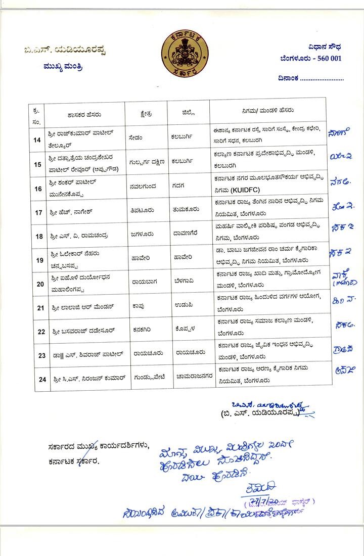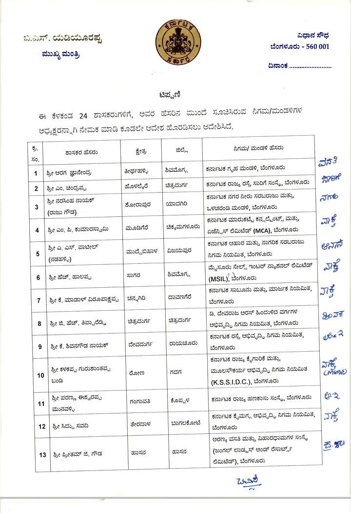 <figcaption>""</figcaption>.<figcaption>""</figcaption>.<figcaption>""</figcaption>.<p><strong>ಬೆಂಗಳೂರು:</strong> ರಾಜ್ಯದ ವಿವಿಧ ನಿಗಮ ಮಂಡಳಿಗಳಿಗೆ 24 ಶಾಸಕರುಗಳನ್ನು ನೇಮಕ ಮಾಡಿ ರಾಜ್ಯ ಸರ್ಕಾರ ಸೋಮವಾರ ಆದೇಶ ಹೊರಡಿಸಿದೆ.</p>.<p><strong>ಹೊಸದಾಗಿ ನೇಮಕ ಮಾಡಲಾಗಿರುವ ನಿಗಮ ಮಂಡಳಿ ಅಧ್ಯಕ್ಷರ ಮಾಹಿತಿಇಲ್ಲಿದೆ.</strong></p>.<div><p><strong>ಪ್ರಜಾವಾಣಿ ಆ್ಯಪ್ ಇಲ್ಲಿದೆ: <a href="https://play.google.com/store/apps/details?id=com.tpml.pv">ಆಂಡ್ರಾಯ್ಡ್ </a>| <a href="https://apps.apple.com/in/app/prajavani-kannada-news-app/id1535764933">ಐಒಎಸ್</a> | <a href="https://whatsapp.com/channel/0029Va94OfB1dAw2Z4q5mK40">ವಾಟ್ಸ್ಆ್ಯಪ್</a>, <a href="https://www.twitter.com/prajavani">ಎಕ್ಸ್</a>, <a href="https://www.fb.com/prajavani.net">ಫೇಸ್ಬುಕ್</a> ಮತ್ತು <a href="https://www.instagram.com/prajavani">ಇನ್ಸ್ಟಾಗ್ರಾಂ</a>ನಲ್ಲಿ ಪ್ರಜಾವಾಣಿ ಫಾಲೋ ಮಾಡಿ.</strong></p></div>