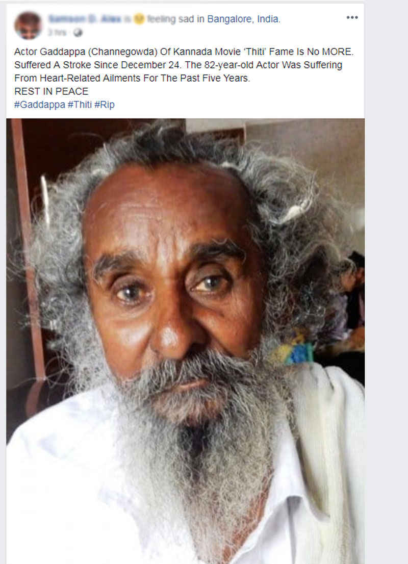 <p><strong>ಮಂಡ್ಯ:</strong> ಪಾರ್ಶ್ವವಾಯುವಿಗೆ ತುತ್ತಾಗಿರುವ ನಟ ಗಡ್ಡಪ್ಪ (ಚನ್ನೇಗೌಡ) ಪಾಂಡವಪುರ ತಾಲ್ಲೂಕಿನ ನೊದೆಕೊಪ್ಪಲು ಗ್ರಾಮದ ತಮ್ಮ ನಿವಾಸದಲ್ಲಿ ವಿಶ್ರಾಂತಿ ಪಡೆಯುತ್ತಿದ್ದಾರೆ. ಆದರೆ, ಕಿಡಿಗೇಡಿಗಳು ಅವರು ಮೃತಪಟ್ಟಿದ್ದಾರೆ ಎಂದು ಸುಳ್ಳು ಸುದ್ದಿ ಹಬ್ಬಿಸುತ್ತಿರುವುದು ಕುಟುಂಬದ ಬೇಸರಕ್ಕೆ ಕಾರಣವಾಗಿದೆ.</p>.<p>ಬಾಯಿಗೆ ಪಾರ್ಶ್ವವಾಯು ಉಂಟಾಗಿರುವ ಕಾರಣ ಅವರಿಗೆ ಮಾತನಾಡಲು ಸಾಧ್ಯವಾಗುತ್ತಿಲ್ಲ. ಮೈಸೂರಿನ ಆಸ್ಪತ್ರೆಯಲ್ಲಿ ಚಿಕಿತ್ಸೆ ಕೊಡಿಸಲಾಗಿದ್ದು ಔಷಧ ಸೇವಿಸುತ್ತಿದ್ದಾರೆ.</p>.<p>ಗಡ್ಡಪ್ಪ ಮೃತಪಟ್ಟಿದ್ದಾರೆ ಎಂದು ವೆಬ್ನ್ಯೂಸ್ ತಾಣವೊಂದು ಸುಳ್ಳು ಸುದ್ದಿ ಪ್ರಕಟಿಸಿದೆ. ನೂರಾರು ಜನರು ಅದನ್ನು ಹಂಚಿಕೊಂಡಿದ್ದಾರೆ.</p>.<p>‘ನಮ್ಮ ತಂದೆ ಮನೆಯ ಸಮೀಪ ಓಡಾಡುತ್ತಿದ್ದು ಊಟ, ತಿಂಡಿ ಮಾಡುತ್ತಿದ್ದಾರೆ. ನರದ ಸಮಸ್ಯೆ ಇದ್ದು ಶೀಘ್ರ ಮಾತು ಬರುವುದಾಗಿ ವೈದ್ಯರು ಭರವಸೆ ಕೊಟ್ಟಿದ್ದಾರೆ. ಆದರೆ, ಕೆಲವರು ಕರೆ ಮಾಡಿ ಮೃತಪಟ್ಟಿರುವ ಬಗ್ಗೆ ವಿಚಾರಿಸುತ್ತಿರುವುದು ನೋವಾಗಿದೆ’ ಎಂದು ಅವರ ಪುತ್ರಿ ಯಶೋದಾ ‘ಪ್ರಜಾವಾಣಿ’ಗೆ ತಿಳಿಸಿದರು.</p>.<div><p><strong>ಪ್ರಜಾವಾಣಿ ಆ್ಯಪ್ ಇಲ್ಲಿದೆ: <a href="https://play.google.com/store/apps/details?id=com.tpml.pv">ಆಂಡ್ರಾಯ್ಡ್ </a>| <a href="https://apps.apple.com/in/app/prajavani-kannada-news-app/id1535764933">ಐಒಎಸ್</a> | <a href="https://whatsapp.com/channel/0029Va94OfB1dAw2Z4q5mK40">ವಾಟ್ಸ್ಆ್ಯಪ್</a>, <a href="https://www.twitter.com/prajavani">ಎಕ್ಸ್</a>, <a href="https://www.fb.com/prajavani.net">ಫೇಸ್ಬುಕ್</a> ಮತ್ತು <a href="https://www.instagram.com/prajavani">ಇನ್ಸ್ಟಾಗ್ರಾಂ</a>ನಲ್ಲಿ ಪ್ರಜಾವಾಣಿ ಫಾಲೋ ಮಾಡಿ.</strong></p></div>